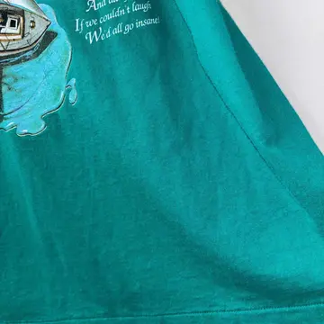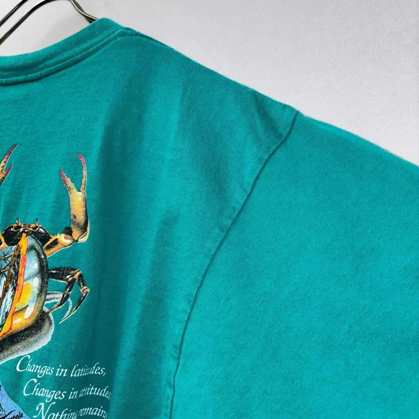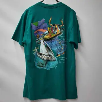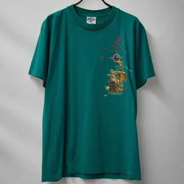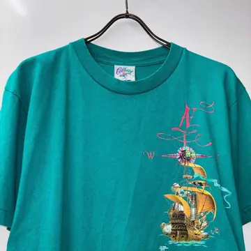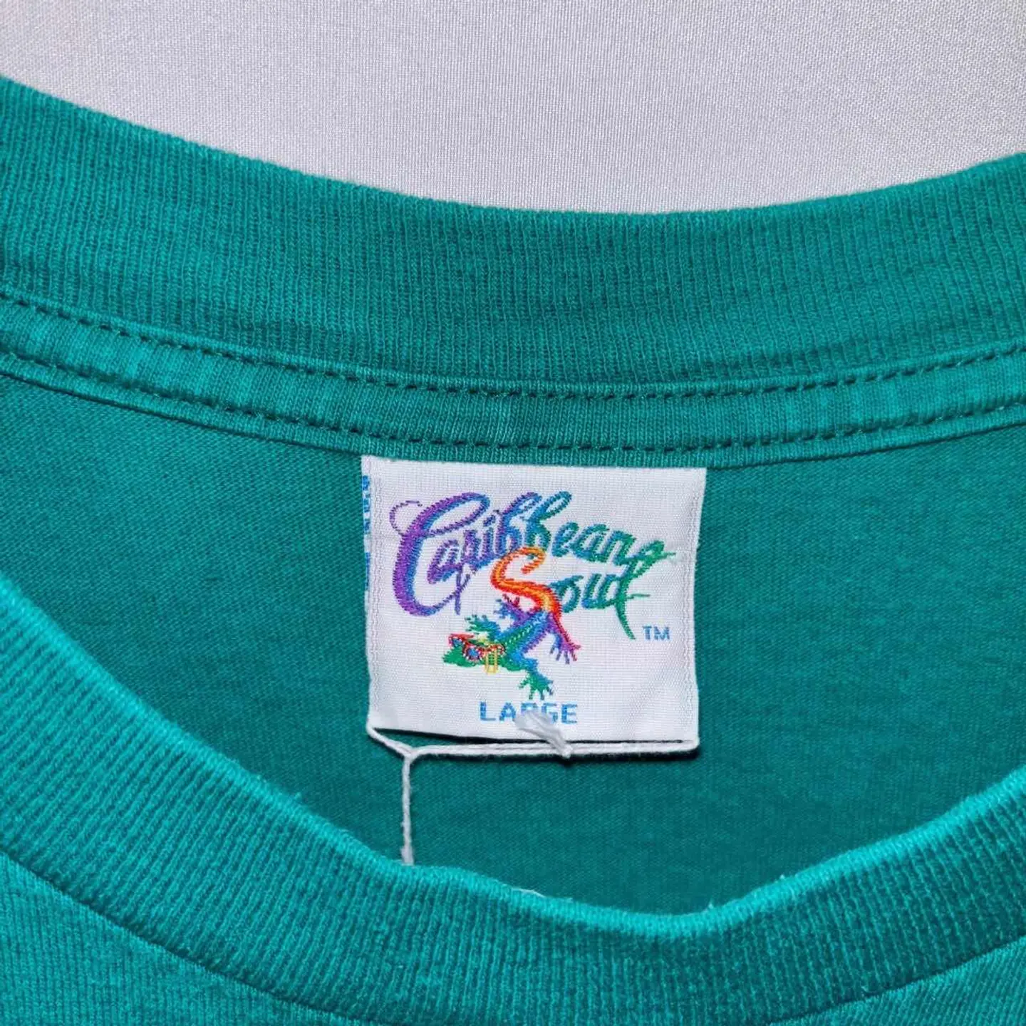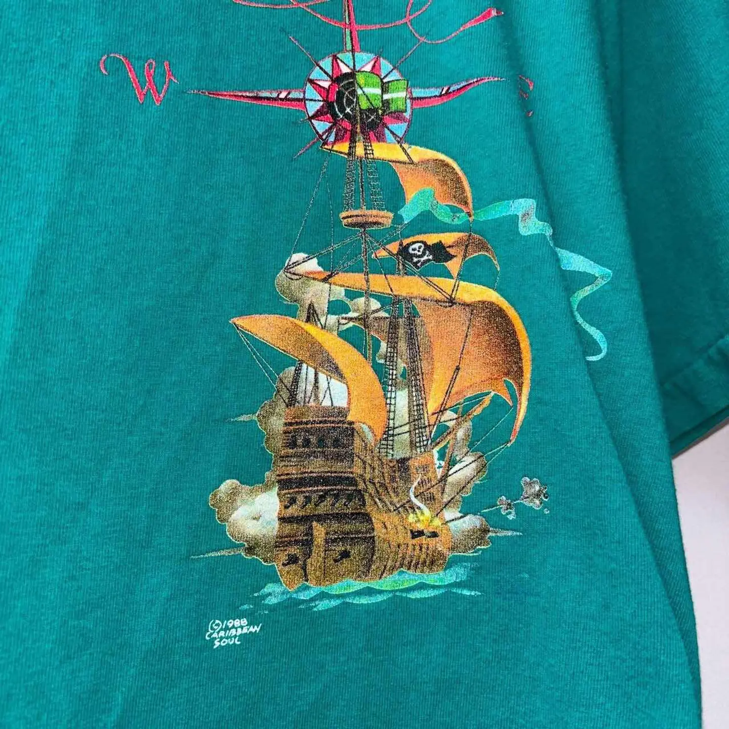 アメリカ・カリブ文化の陽気さと遊び心を凝縮した、Caribbean Soul製のアートTシャツ。 フロントには羅針盤とともに帆を広げた海賊船が描かれ、1988年のコピーライト入り。 バックにはカリブ海の地図とラム酒ボトルを掴んだカニ、帆船が配置され、RumやKey West、Puerto Ricoなどの地名が随所にプリント。 色褪せないリゾートスピリットとヴィンテージならではのノスタルジーを感じさせる、唯一無二の1着です。 サイズ(表記:L) 肩幅:48cm 袖丈:21cm 身幅:51cm 着丈:70cm ▶︎ 目安:170〜180cm前後の方におすすめ。 ゆったり着たい160cm台の方にも◎ 【素材・カラー・生産国】 素材:コットン100% カラー:エメラルドグリーン 生産国:USA製 ブランド:Caribbean Soul(1988) コンディション【B】 【コンディションランク】 S:新品・デッドストック A:使用感少なめでキレイ B:使用感あり(軽微な汚れ・シミあり) C:ややダメージあり D:大きなダメージあり スタイリング提案 ・カーゴショーツ+ビーサンでリゾート感を全開に ・デニムやチノにタックインしてアートTとして主役に ご注意 ・古着商品のため、細かなキズや汚れがある場合があります ・一点物となりますので、気になる方はお早めにご購入ください ・ご利用のモニター環境により、色味が異なる場合があります #vintage #古着 #90s #used #古着男子 #80s #古着女子 #アメリカ古着