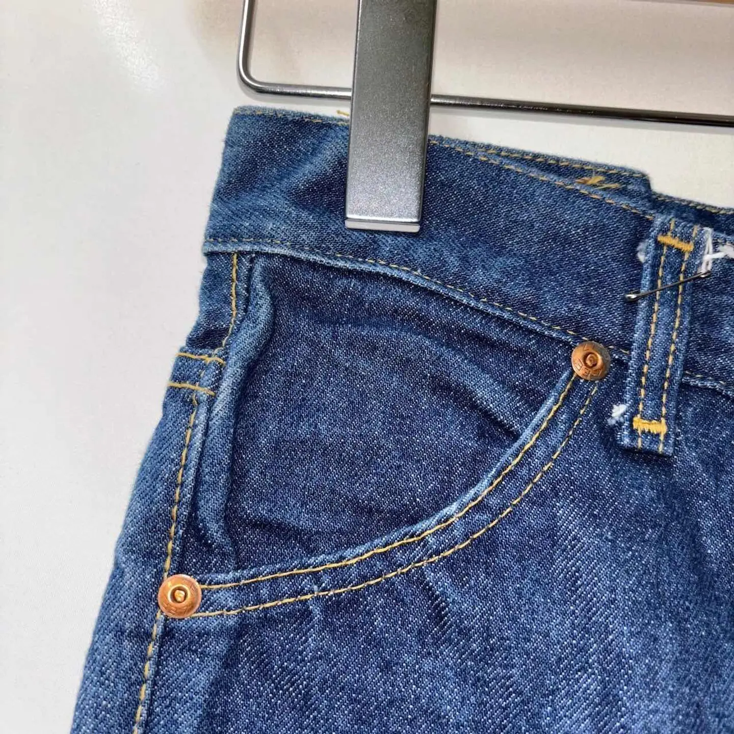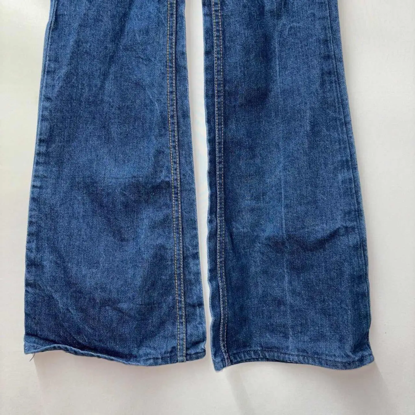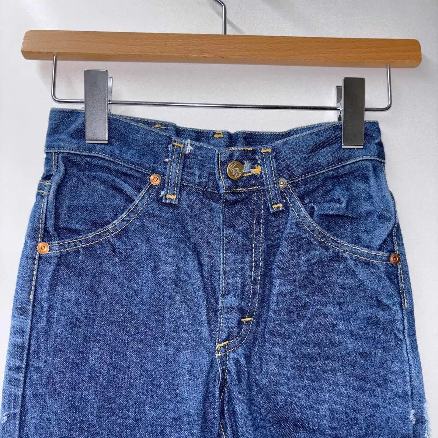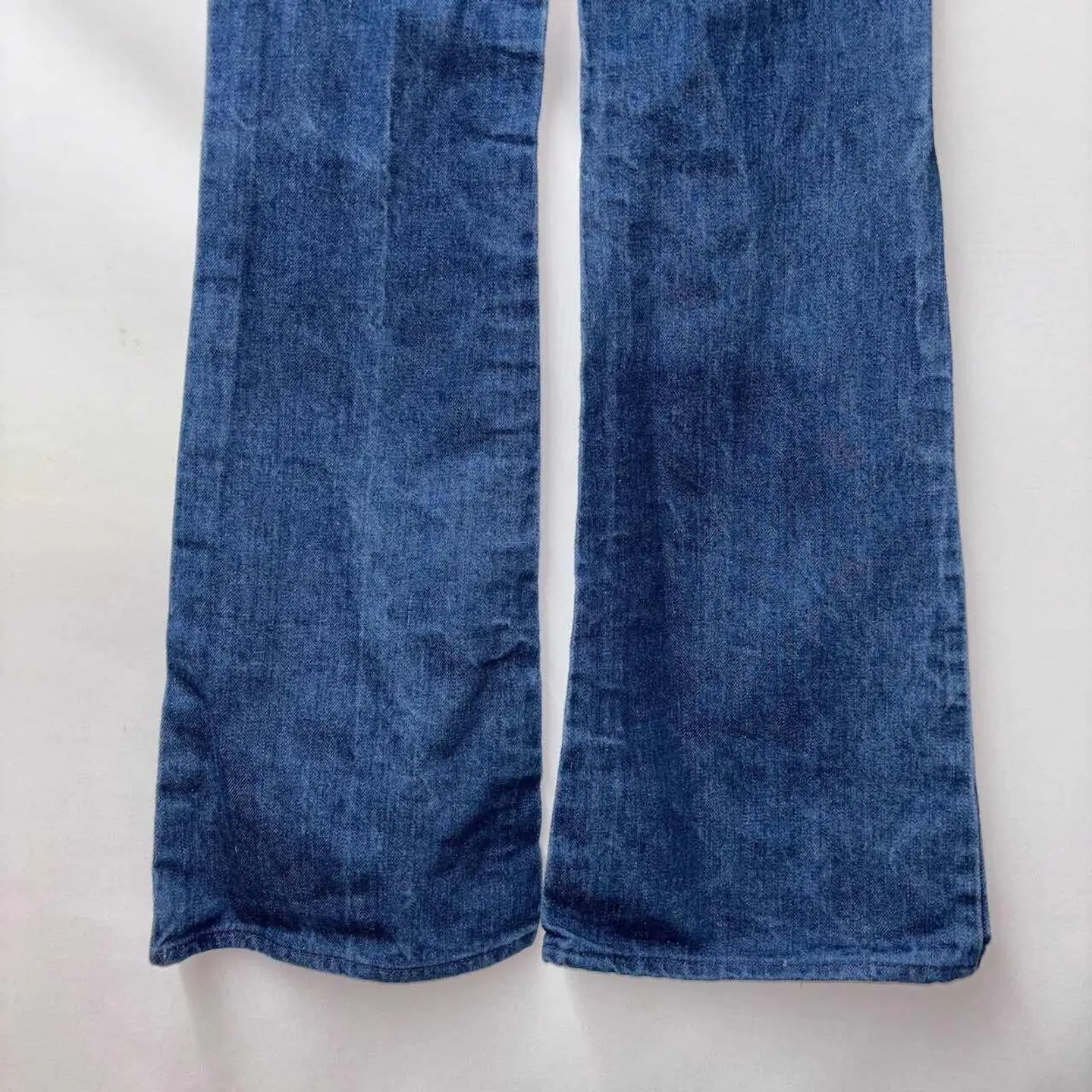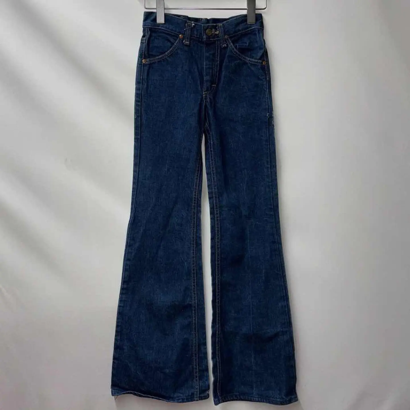 ウエスト60cm(表記10)のレディースフレアデニム。 太ももまではすっきりとフィットし、膝下から緩やかに広がるフレアシルエットが美脚効果を演出。ヒールや厚底との相性も良く、スタイルアップを叶える1本です。ハイウエストで腰位置が高く見えるため、脚長効果も◎。 生地は程よく厚みのあるインディゴデニム。履き込むごとに風合いが増していく、USA製ならではの味わいが魅力です。 【サイズ(表記:10)】 ウエスト(平置):30cm 総丈:96cm 股上:24cm 股下:71cm 裾幅:25cm ワタリ:19cm ▶︎ 目安:ウエスト60cm前後の細身体型の方におすすめ。 レディースSサイズ相当、フレアシルエットで脚長見え◎ 【素材・カラー・生産国】 素材:記載なし(恐らくコットン) カラー:インディゴ 生産国:USA製 ブランド:Lee コンディション【B(ダメージ有)】 【コンディションランク】 S:新品・デッドストック A:使用感少なめでキレイ B:使用感あり(軽微な汚れ・シミあり) C:ややダメージあり D:大きなダメージあり スタイリング提案 ・タックインしたトップス×ヒールで70sライクに ・スニーカーと合わせてカジュアルミックスも◎ ご注意 ・古着商品のため、細かなキズや汚れがある場合があります ・一点物となりますので、気になる方はお早めにご購入ください ・ご利用のモニター環境により、色味が異なる場合があります #vintage #古着 #90s #used #古着男子 #80s #古着女子 #アメリカ古着