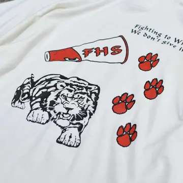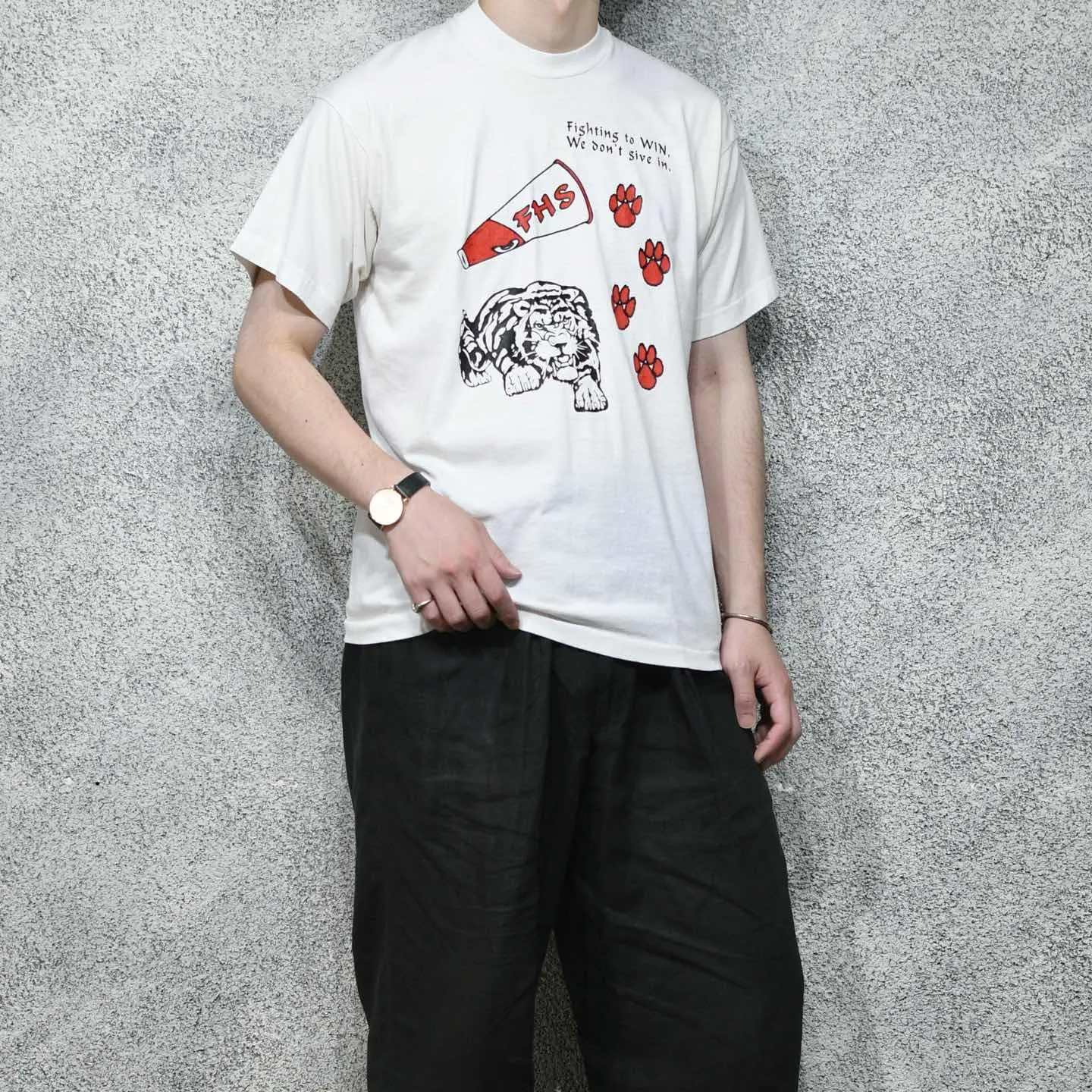 着丈68cm 肩幅54cm 身幅57cm 袖丈19cm(シングルステッチ) fabric/cotton・poly made in USA 着用画像 177cm/64kg アメリカの高校で、スポーツチームの Tシャツとして着られていたであろう1着。 クールに振り切れてない、可愛さを感じる マスコットのトラが推しです。 TARA氏が着ていた"TORA"tee。 ※目立たない汚れあり。 ※撮影状況により、実物と多少色が異なる場合が ございます。 ※古着を取り扱っているため、気づかない汚れや ほつれ等がある場合がございます。 予めご了承ください。 ※サイズは着用感で選んでおり、表記サイズではございません。 古着 オーバーサイズ old vintage ヴィンテージ used 80's 90's アメリカ古着 ユーロ古着 メンズ レディース POLO RALPH LAUREN Eddie Bauer OLD GAP Eddie Bauer LANDS' END ランズエンド LLBean エルエルビーン オールドギャップ エディーバウアー ラルフローレン ブルックスブラザーズ Brooks Brothers ホワイト 白 アニマルTシャツ Tシャツ プリントTシャツ ナンバリング 半袖Tシャツ バックプリント 白Tシャツ などがお好きな方 #vintage #オーバーサイズ #old #used #90s #80s #古着 #ヴィンテージ #アメリカ古着 #ユーロ古着 #古着男子 #古着女子 #LLBean #エルエルビーン #EddieBauer #エディーバウアー #oldgap #オールドギャップ #LANDSEND #ランズエンド #NAUTICA #ノーティカ #ラルフローレン #POLORALPHLAUREN #ブルックスブラザーズ #BrooksBrothers #Tシャツ #カレッジTシャツ #プリントTシャツ #白Tシャツ #半袖Tシャツ #アニマルプリント #アニマルTシャツ #ナンバリングTシャツ #バックプリント #シングルステッチ