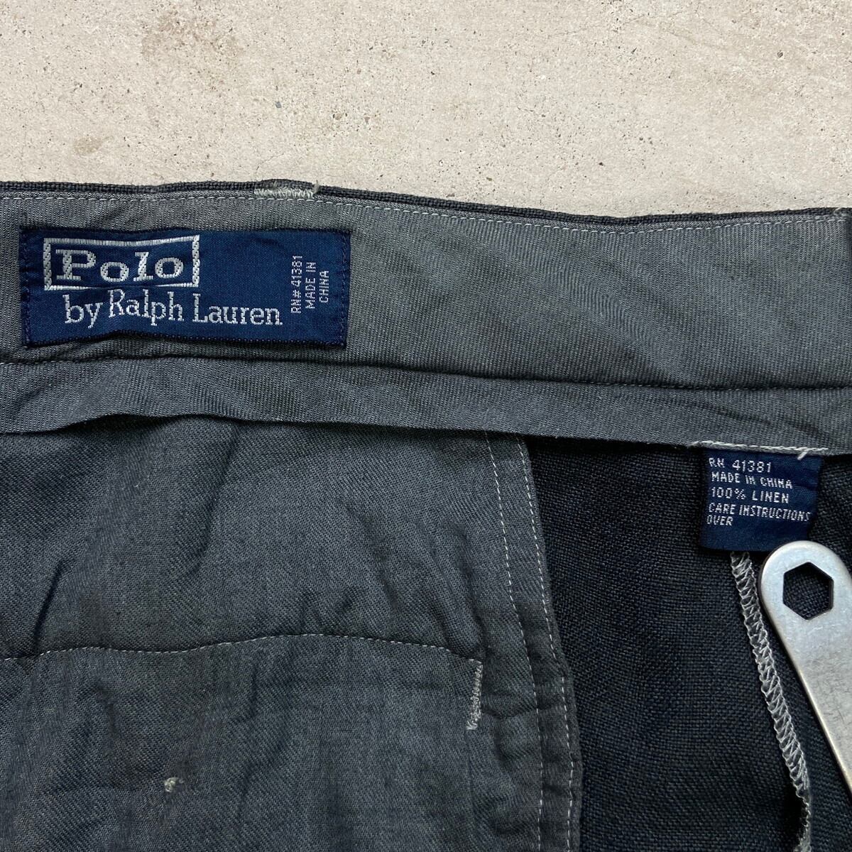 ■90年代 Polo by Ralph Lauren ポロバイラルフローレン リネンパンツ 後染め メンズW38 古着 90s VINTAGE ヴィンテージ ビッグサイズ 大きいサイズ チャコールブラック【スラックス,スタプレ】/ブラック 【ブランド】Polo by Ralph Lauren ポロバイラルフローレン 【サイズ】表記 38/32 ※計測値をご確認ください。 ウエスト(平置き×2)…96 ワタリ幅…37 股上…29.5 股下…80 裾幅…23 【生産国】中国製 【素材】リネン100% 【状態】若干のシミ汚れが数か所ございます。 ダメージはありません。 画像にてご確認ください。 【c250725133】 ※古着は洗濯、検品などのケアを行っております。(新品・デッドストックは洗濯していません。) ※モニターの発色により実物と異なる場合がございます。予めご了承ください。 ※ 海外直輸入USED品になります。