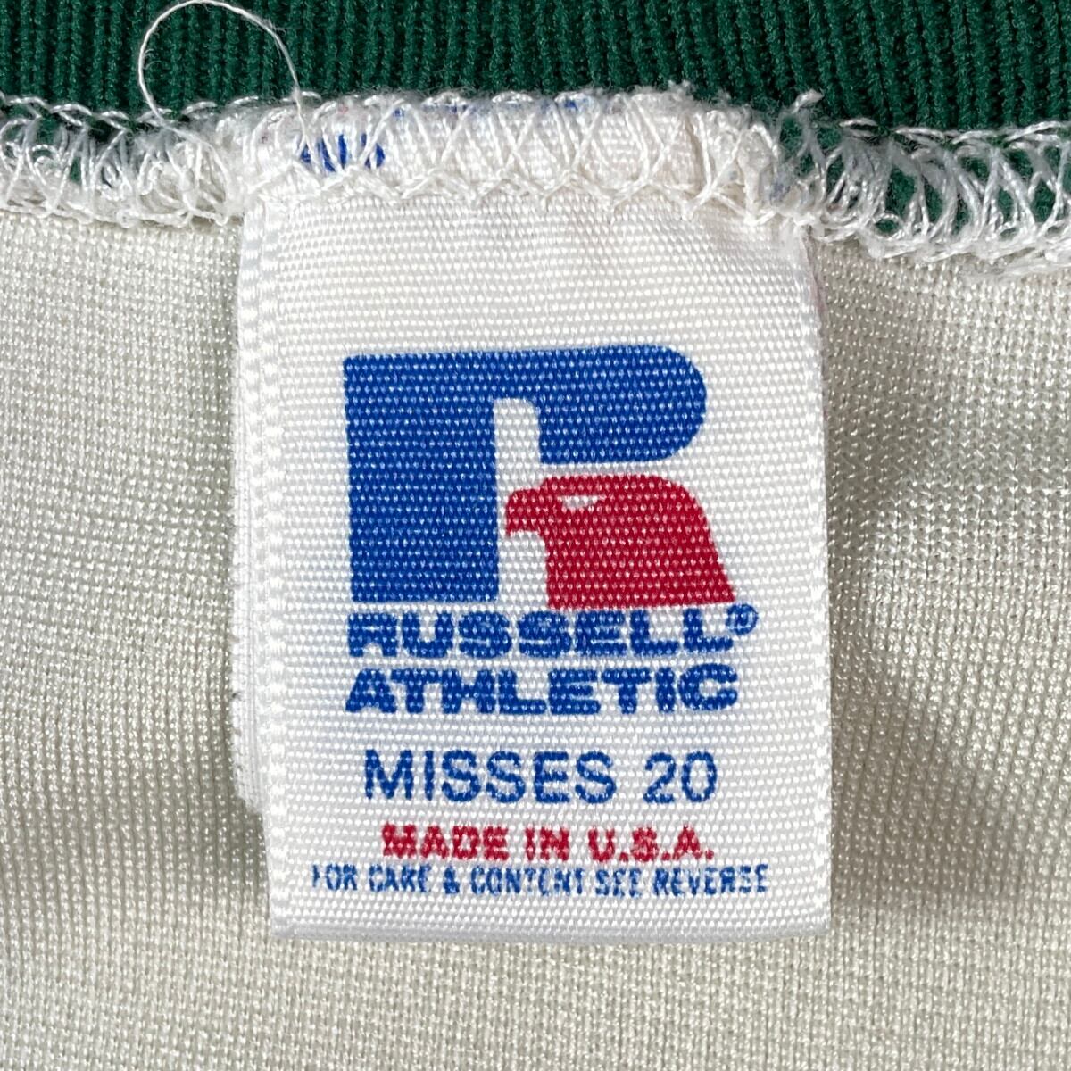 ■90年代 USA製 RUSSEL ATHLETIC BETHEL 42 バスケ タンクトップ レディース3XL相当 古着 90s VINTAGE ヴィンテージ バスケットボール ユニフォーム ゲームシャツ ビッグサイズ 大きいサイズ 生成り色 グリーン【ゲームシャツ】/ホワイト 【ブランド】RUSSELL ATHLETIC ラッセルアスレチック 【サイズ】表記 MISSES 20(メンズ2XL相当) ※計測値をご確認ください。 着丈…80 身幅…63 肩幅…41 【生産国】USA製 【素材】ナイロン100% 【状態】使用感による色褪せや薄汚れがございます。 ダメージはありません。 画像にてご確認ください。 【c250723119】 ※古着は洗濯、検品などのケアを行っております。(新品・デッドストックは洗濯していません。) ※モニターの発色により実物と異なる場合がございます。予めご了承ください。 ※ 海外直輸入USED品になります。