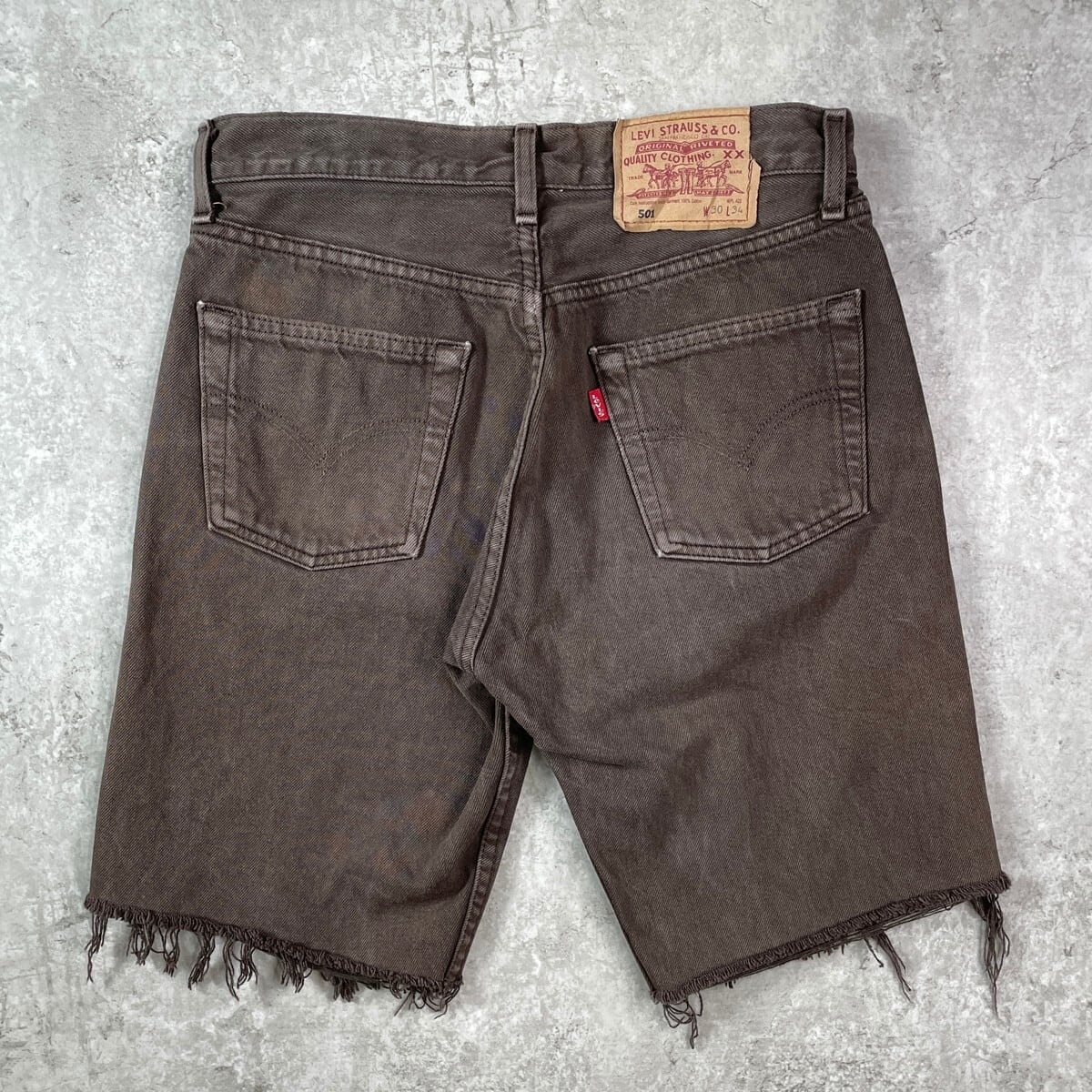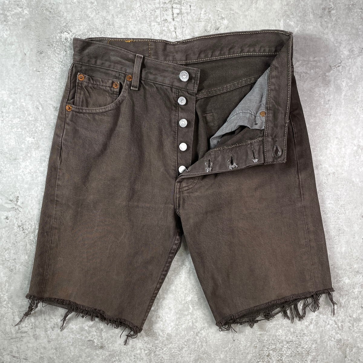 ■90年代 フランス製 Levi's ユーロリーバイス 501 ハーフパンツ ショーツ デニムパンツ ジーンズ メンズW30 レディース 古着 90s VINTAGE ヴィンテージ アメカジ カラーデニム ダークブラウン【デニムパンツ】/ブラウン 【ブランド】Levi's リーバイス 【サイズ】表記 W30 ※計測値をご確認ください。 総丈...45(サイド計測) ウエスト(平置き×2)…75 ワタリ幅…31 股上…27 股下…23.5 裾幅…23.5 【生産国】フランス製 【素材】コットン100% 【状態】 多少の使用感ございますが、目立った汚れやダメージなくまだまだ愛用していただけます。 画像にてご確認ください。 【c250723101】 ※古着は洗濯、検品などのケアを行っております。(新品・デッドストックは洗濯していません。) ※モニターの発色により実物と異なる場合がございます。予めご了承ください。 ※ 海外直輸入USED品になります。