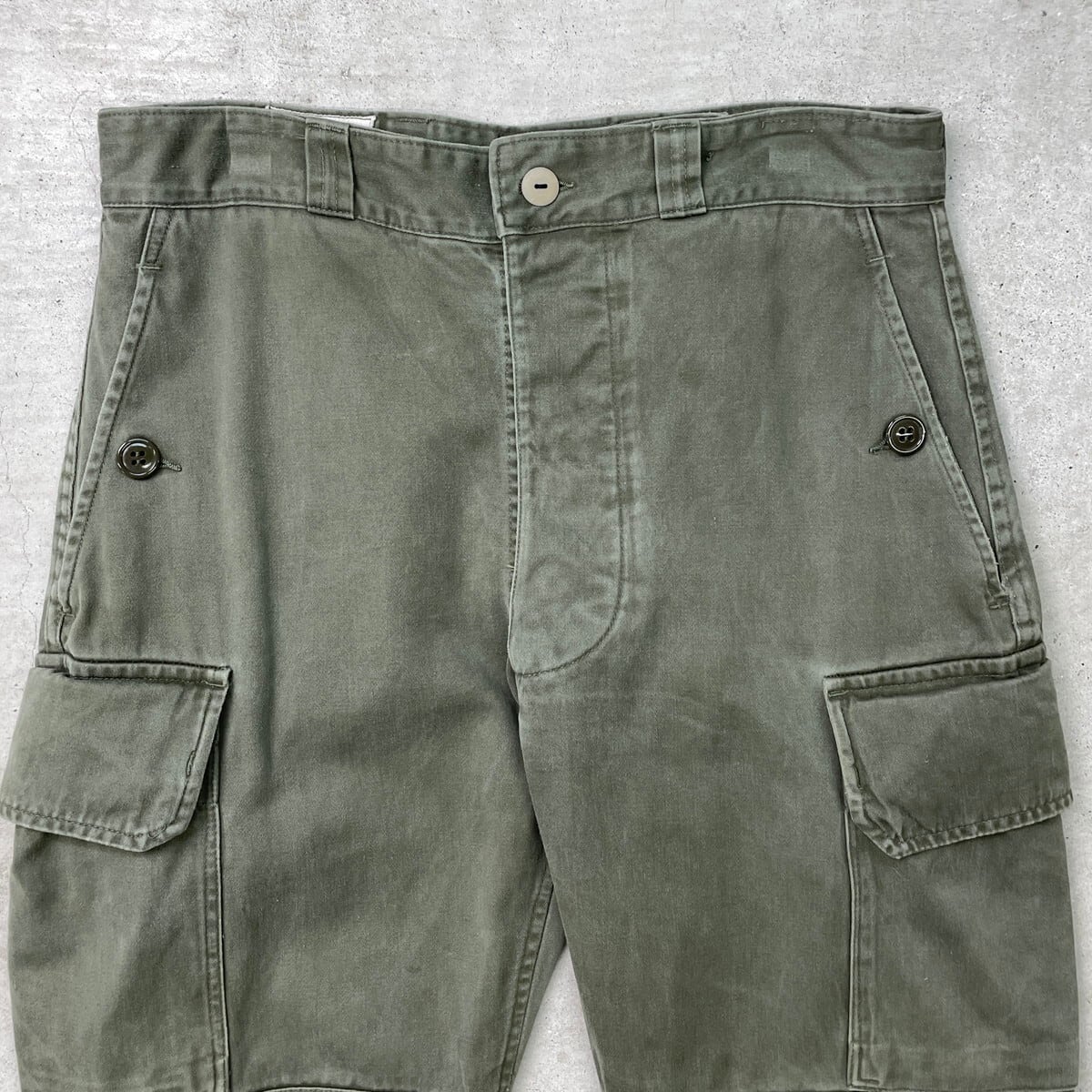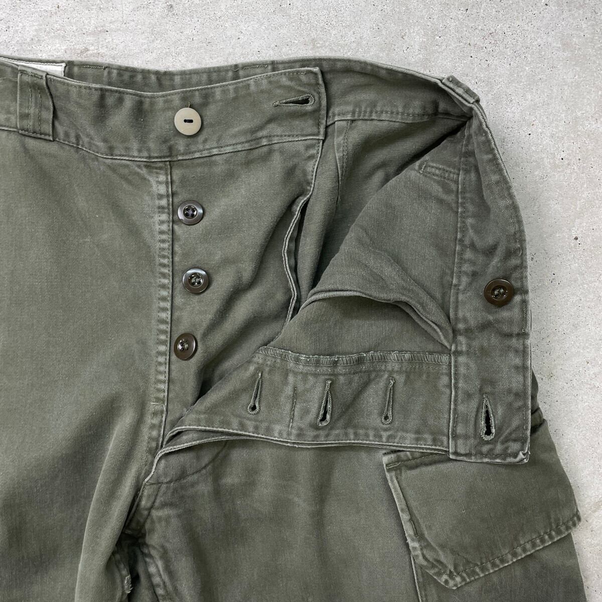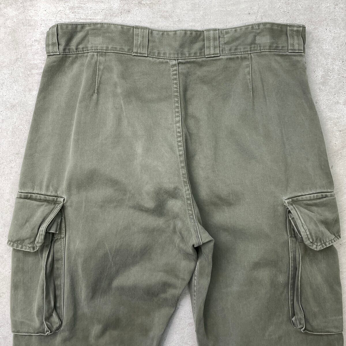 ■70年代 フランス軍 M-64 カーゴパンツ ミリタリーパンツ メンズW30相当 古着 70s ファティーグパンツ ヴィンテージ VINTAGE PAUL BOYE ユーロミリタリーパンツ セージグリーン【ミリタリーパンツ】/カーキグリーン 【サイズ】表記 76 xc ※計測値をご確認ください。 ウエスト(平置き×2)…78 ワタリ幅…31.5 股上…30 股下...64 裾幅…15.5 【生産国】不明 【素材】不明 (おそらくコットン) 【状態】全体的に色あせや擦れがございます。 裾付近にダメージがあります。 画像にてご確認ください。 【c250725111】 ※古着は洗濯、検品などのケアを行っております。(新品・デッドストックは洗濯していません。) ※モニターの発色により実物と異なる場合がございます。予めご了承ください。 ※ 海外直輸入USED品になります。