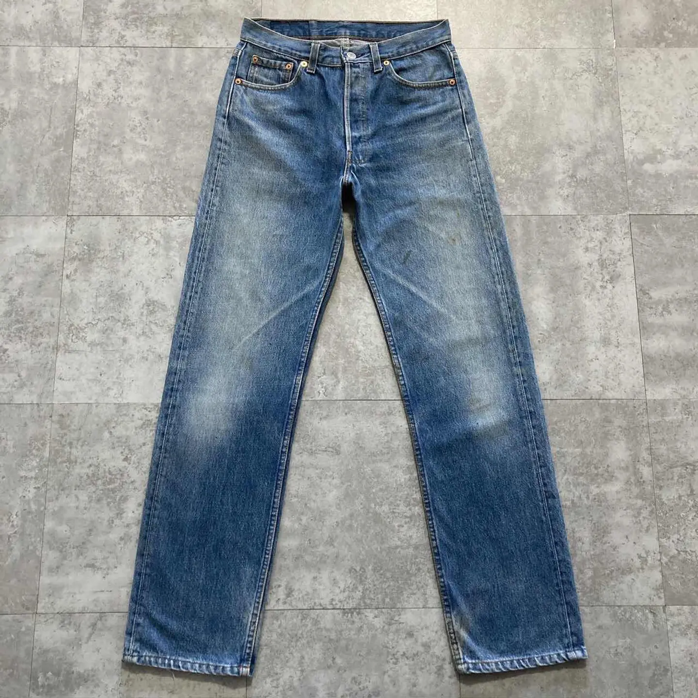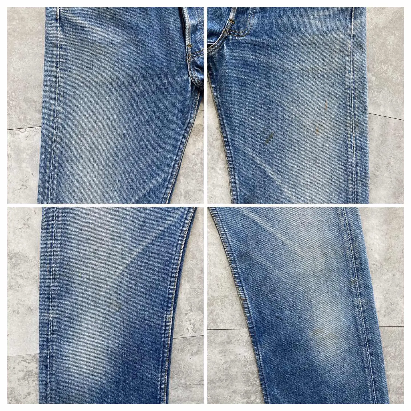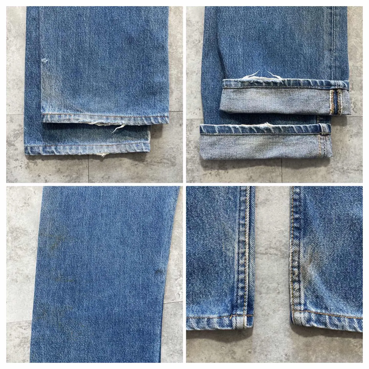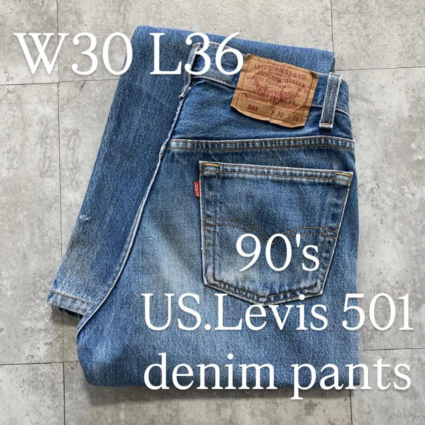 □Size□ 表記→W30 L36 実寸↓ 股上 : 29 股下 : 76.5 ワタリ幅 : 29.5 裾幅 : 19 ウエスト : 37.5×2 (cm) □Colour□ ・デニム紺 □Material□ ・100%コットン □Condition□ ・前後太もも.膝.裾に汚れあり ・裾.裾付近に擦れた傷あり □Caution□ ・当店で取り扱っているアイテムは全て「古着」となっております。そのため、多少の擦れやほつれ、色あせや汚れ等が見られる場合がございます。新品同様の完璧なお品物をお求めの方は当店をご利用されないよう宜しくお願いします。 ・購入された商品につきましては、購入日から起算して「72時間以内の発送」とさせて頂きます。お急ぎの場合はオンラインストアの問い合わせフォームよりご連絡ください。可能な限り対応させて頂きます。 ・購入されら商品は基本的に「お客様都合での返品&キャンセル不可」となっております。決済が確定した時点で注文の取り消し等は不可のとなりますので、よくお考えの上購入検討の方をお願い致します。 【A-5719】