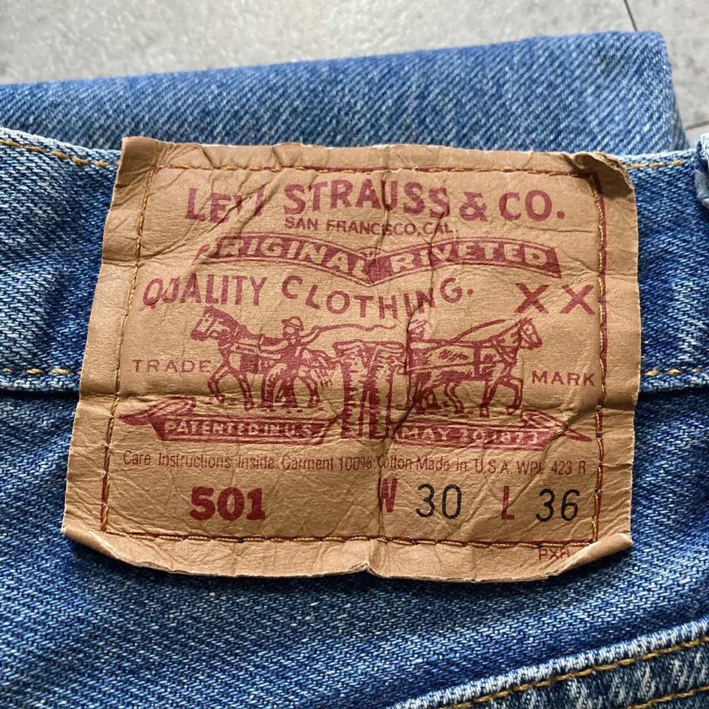 【W30 L34】Levis 501 PREMIUM レザーパッチ ボタンフライ 濃紺 デニムパンツ