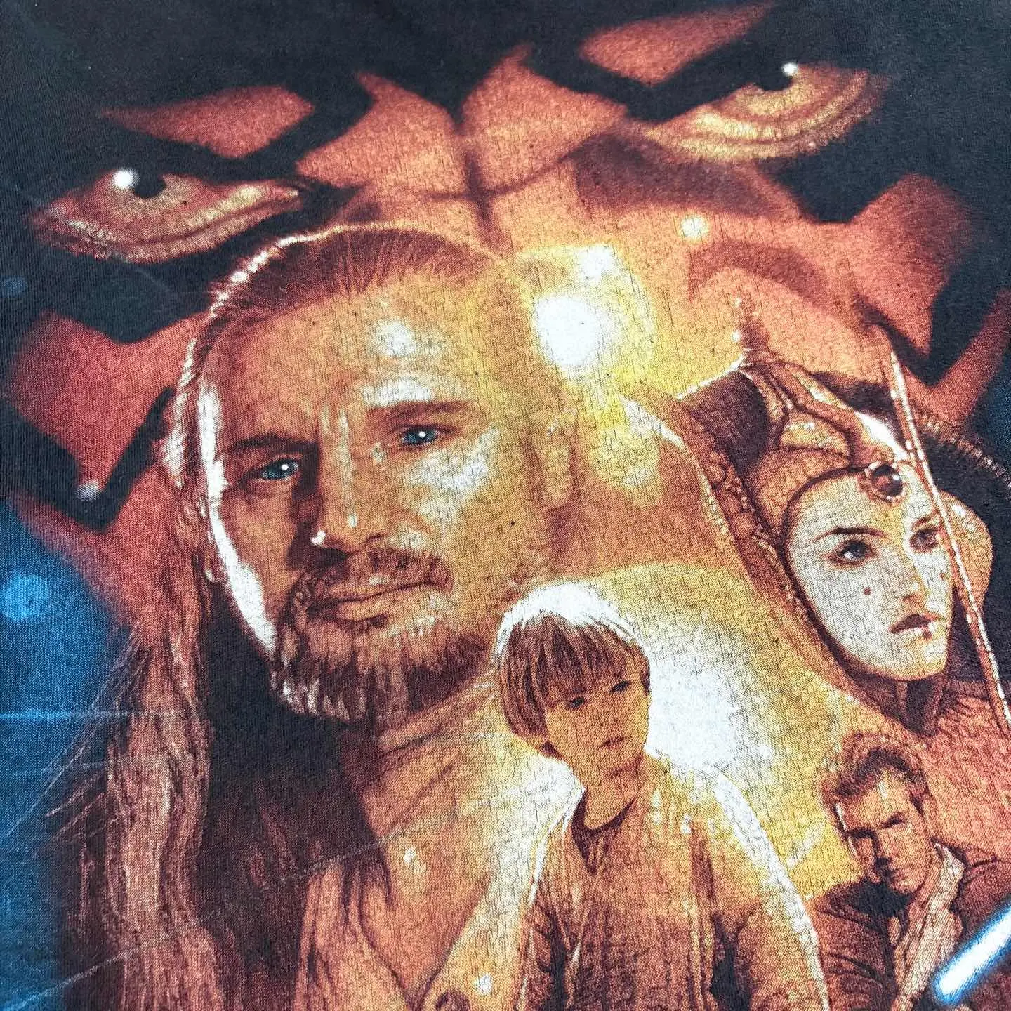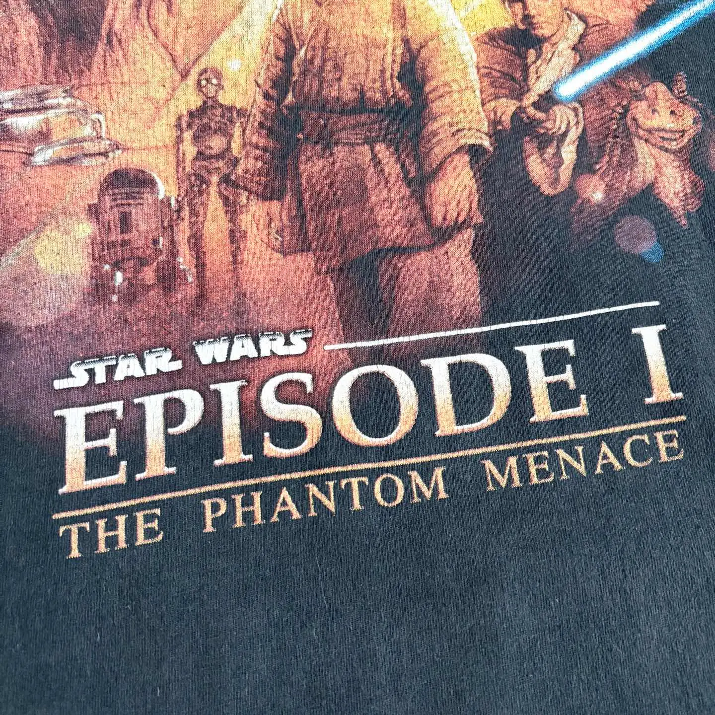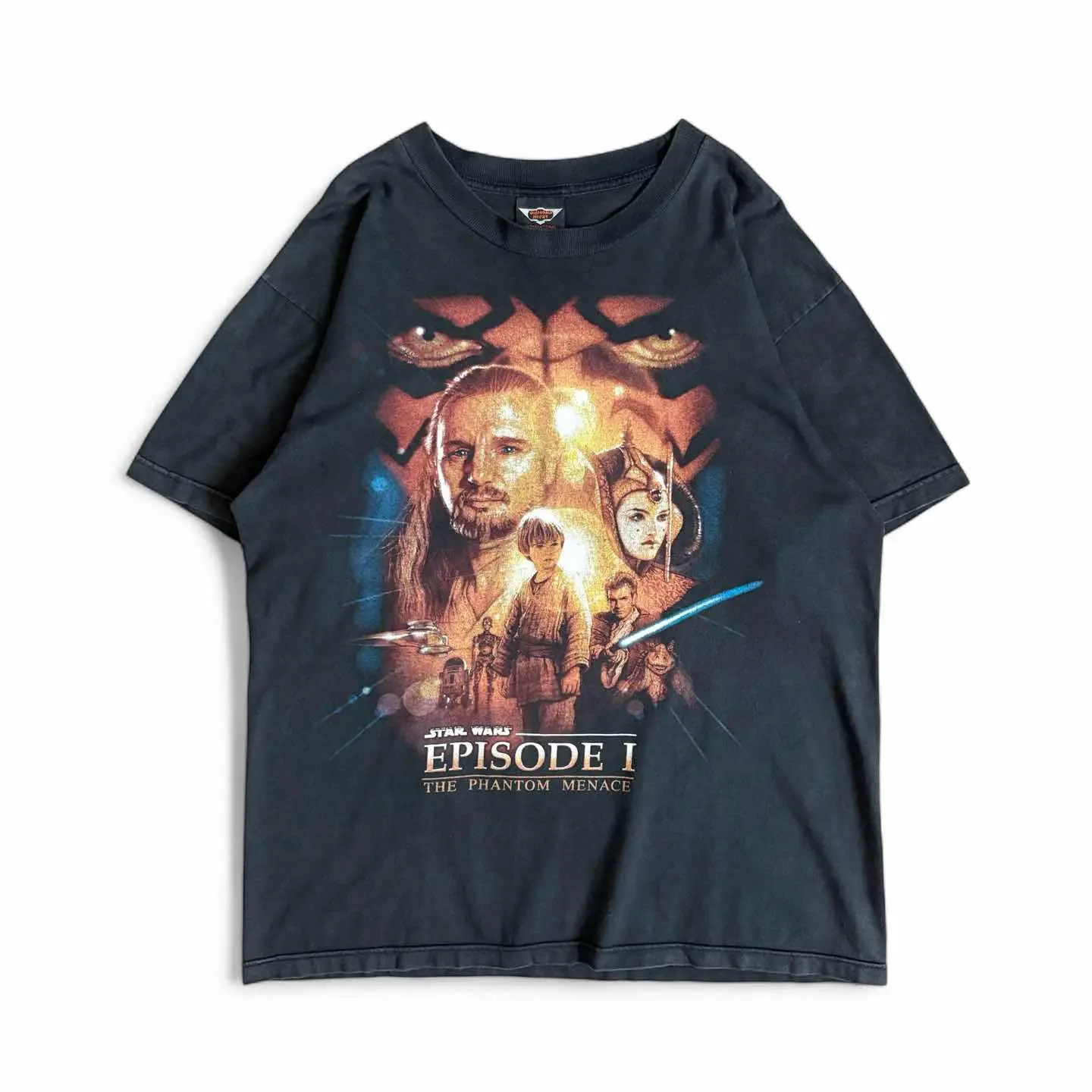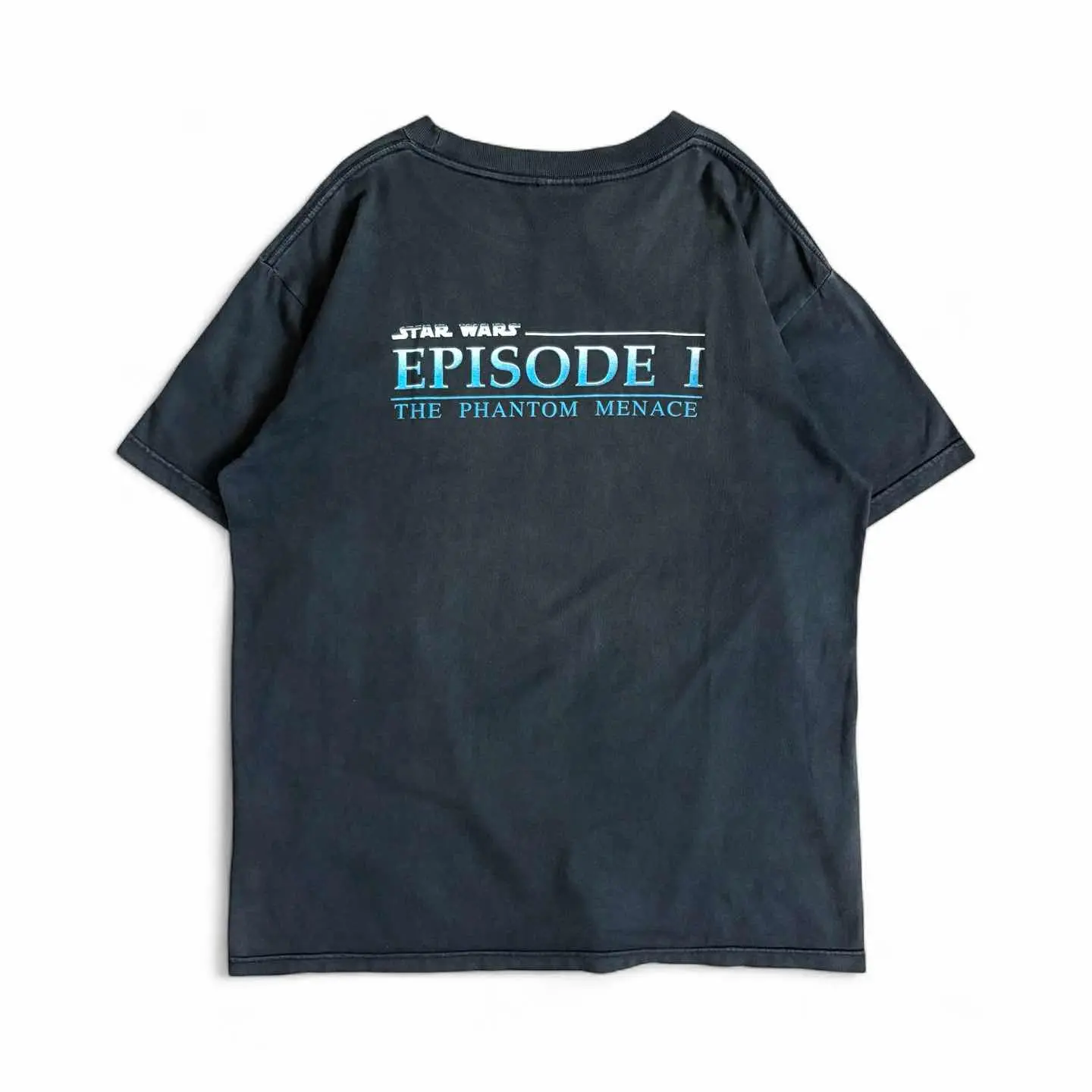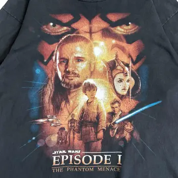 90s STARWARS 1999年公開の映画 スター・ウォーズ エピソード1/ファントム・メナス 中央には若きアナキン・スカイウォーカーが立ち その後ろには師匠のクワイ=ガン・ジンと 女王パドメ・アミダラが描かれています。 背景には、シリーズの印象的なヴィランである ダース・モールの顔が大きく浮かび上がり、 威圧感を放っています。 ブラックのフェード感も抜群です。 着丈も長くなく、ボックスシルエットになります。 お探しの方は是非。 ○サイズ 表記 L 平置き ・肩幅52.5cm ・身幅54cm ・袖丈20cm ・着丈67cm ○商品の状態 B A:使用感がほとんどなく、汚れやシミもなし B:多少使用感はあるが、汚れやシミも少ない C:使用感があり、汚れやシミがある D:使用感があり、大きな汚れや破れあり ○色 ブラック #90s#starwars#スターウォーズ#episode1#ファントム・メナス#Tシャツ