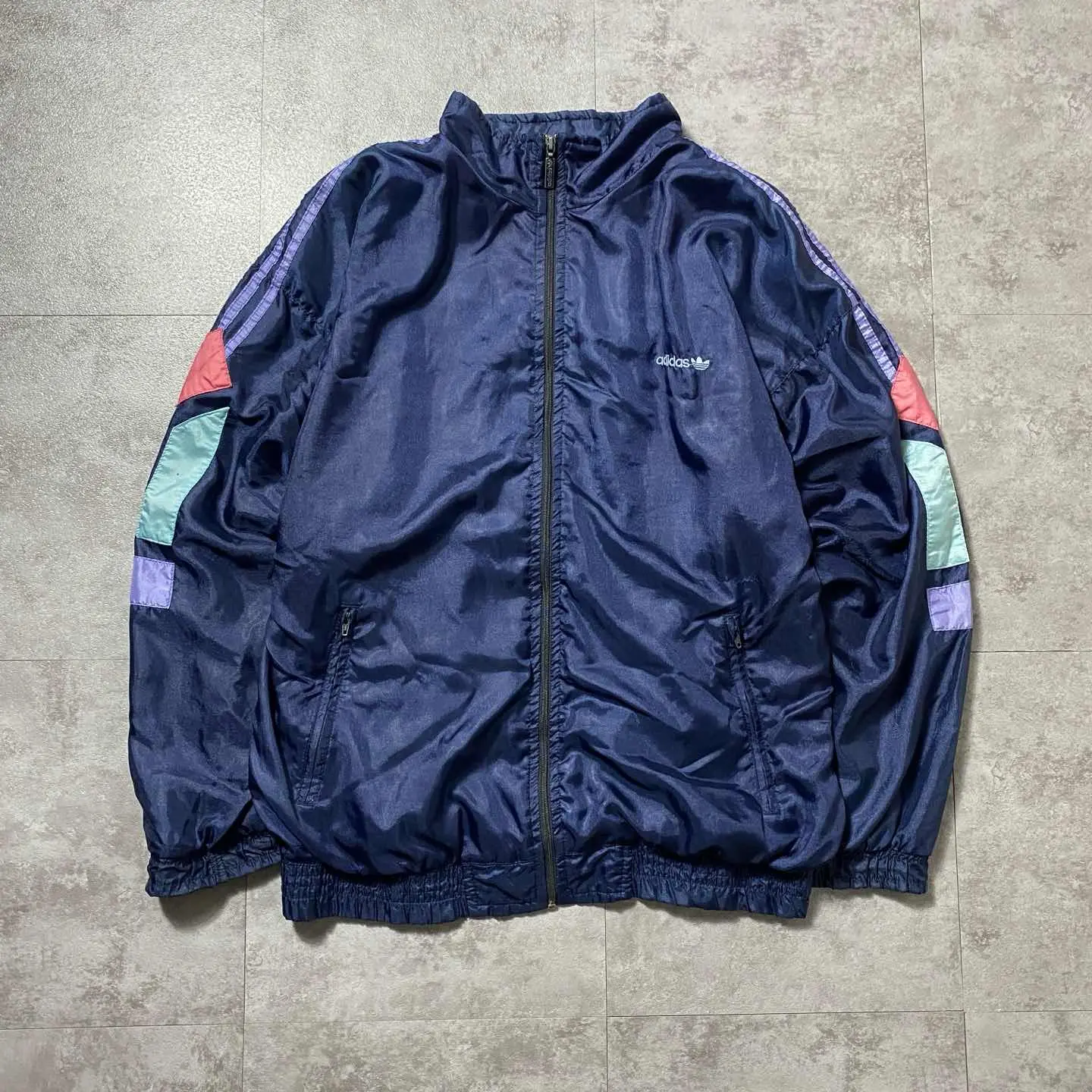 ○Size○ 表記→不明(着用感Lサイズ相当) ・着丈70 ・身幅59 ・肩幅62 ・袖丈55 (cm) ○Color○ ・ネイビー ○Material○ ・ナイロン ○Condition○ ・右袖一部小さなピンホールあり ・左袖一部ほつれ箇所あり ○Caution○ 当店で取り扱っている商材は全て『古着』となっております。 そのため、多少の状態難(ほつれ、傷、汚れ、リブの伸び、使用感、擦れ、色あせ、etc)がある場合がございます。 新品同様の完璧なお品物をお求めの方は当店でのお買い物を控えて頂きますよう宜しくお願いします。 また、購入された商品に関しましては、購入日時から起算して『72時間以内に』発送手続きの方を取らせて頂きます。 お急ぎの場合は購入前に当店オンラインストアの方にお問い合わせ頂きますよう宜しくお願いします。 25/1146