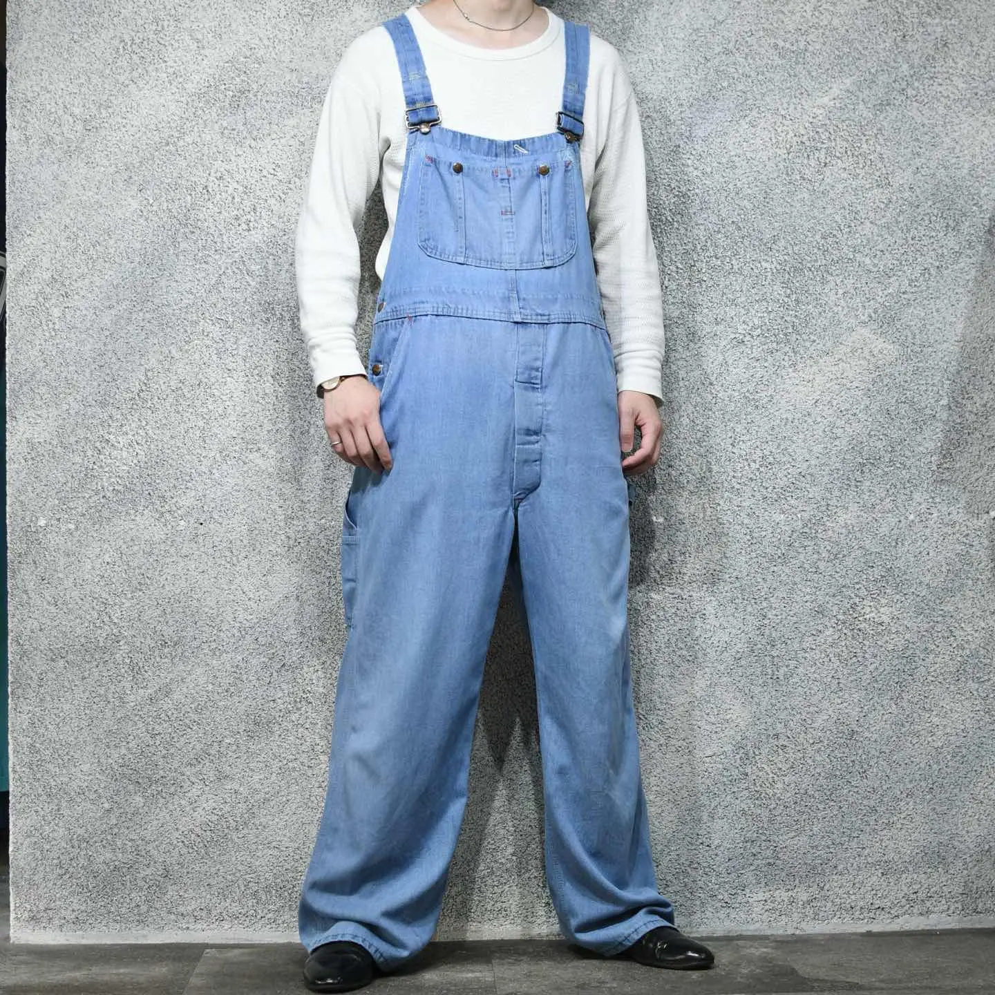 ウエスト104cm 総丈140cm~162cm 股下72cm わたり39cm 裾幅29cm fabric/cotton・poly made in USA 着用画像 177cm/64kg アメリカの大手百貨店”JC Penny”の プライベートブランドとして、 1922年に始まったブランド”BIG MAC” 主にワークウェアを展開するブランドですが、 こちらもその中の一つ。 しっかり仕事をしていたであろう、 前の持ち主によって使い込まれたデニム生地は 柔らかく、アタリやタタキ痕など ワークウェアらしい状態。 オーバーオールの中でも着心地の良い個体で、 さらにウエストに余裕があり、Tシャツから ニットまで様々なトップスと合わせても ごわつかないのが良いポイント。 前の持ち主同様、裾を引きずっても ロールアップしても◎ 寒い季節になれば、この上からジャケットを 着るのがおすすめです。 ※裾上げ等のレングス直しにつきましては、 別途料金が発生する場合がございます。 購入前に、必ずご連絡お願い致します。 ※撮影状況により、実物と多少色が異なる 場合がございます。 ※古着を取り扱っているため、気づかない汚れや ほつれがある場合がございます。 ※サイズは着用感で選んでおり、表記サイズではございません。 オーバーサイズ old vintage ヴィンテージ used 80's 90's アメリカ古着 ユーロ古着 メンズ レディース POLO RALPH LAUREN Eddie Bauer OLD GAP Eddie Bauer LANDS' END ランズエンド LLBean エルエルビーン オールドギャップ エディーバウアー ラルフローレン ブルックスブラザーズ Brooks Brothers #vintage #オーバーサイズ #old #used #90s #80s #古着 #ヴィンテージ #アメリカ古着 #ユーロ古着 #古着男子 #古着女子 #LLBean #EddieBauer #エディーバウアー #oldgap #オールドギャップ #LANDSEND #NAUTICA #ノーティカ #ラルフローレン #POLORALPHLAUREN #ブルックスブラザーズ #BrooksBrothers #オーバーオール #BIGMAC