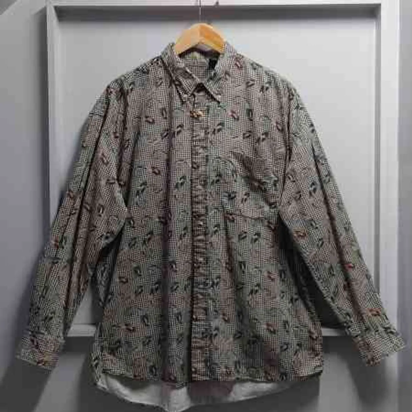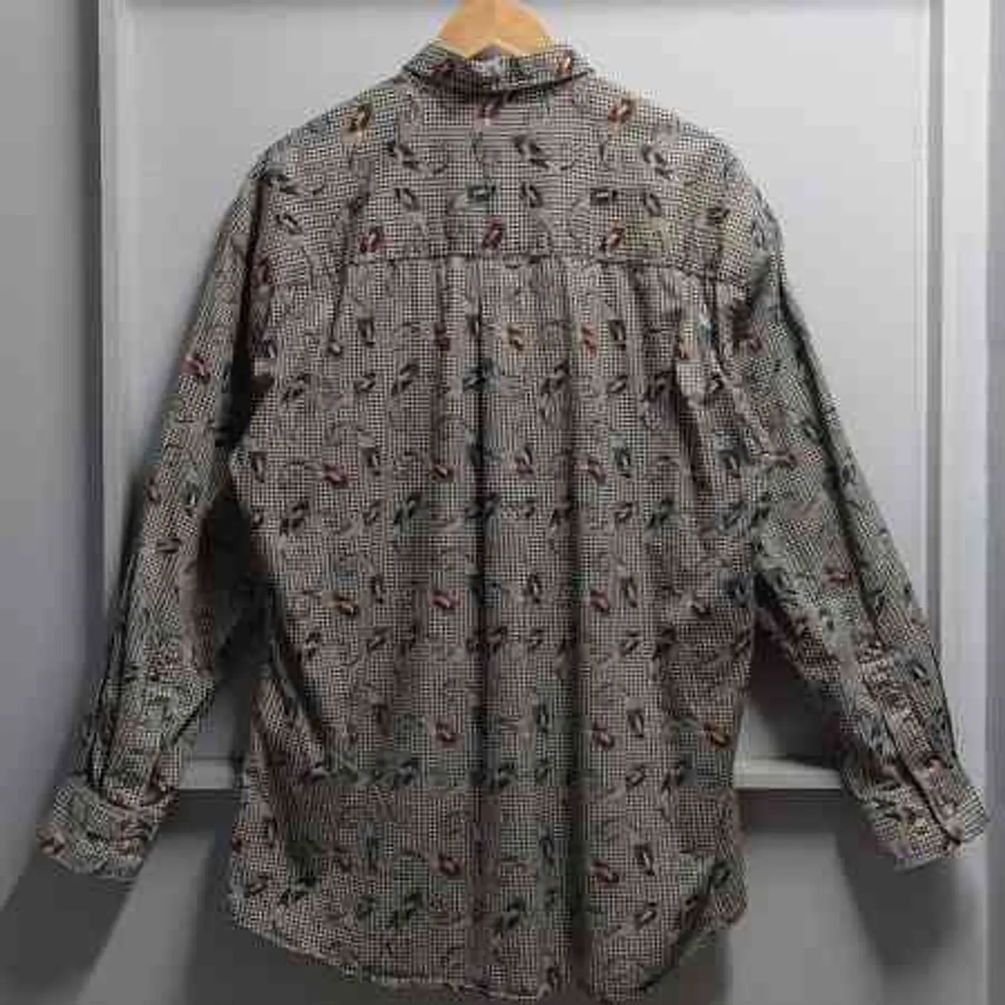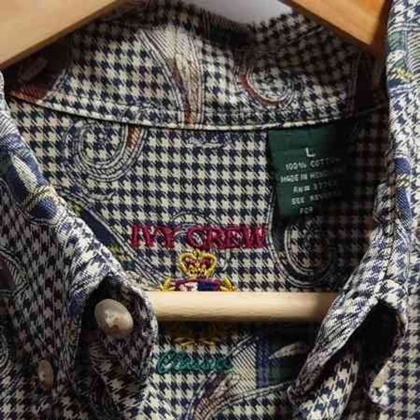千鳥格子×ペイズリーの総柄コットンツイルシャツ。 柄のバランスや色使いがとてもかわいいです。 サイズ・・・メンズ L (身幅65cm着丈79cm肩幅57cm袖丈57cm) 状態:使用感はありますが、まだまだ着ていただけます。 クリーニング済み カラー・・・マルチ 素材・・・COTTON 100% MADE IN HONDURAS 90’s Vintage 90年代ヴィンテージ IVY CREW ハウンドトゥース ペイズリー ボタンダウン シャツ L 長袖 ※平置きでの採寸の為、多少の誤差が生じる場合がございます。 ※商品写真の色合いは実際の商品と若干異なる場合がございます。 ※ユーズドもしくは、ビンテージ品のため使用感や細かいキズ、汚れがある場合もございますのでご了承ください。