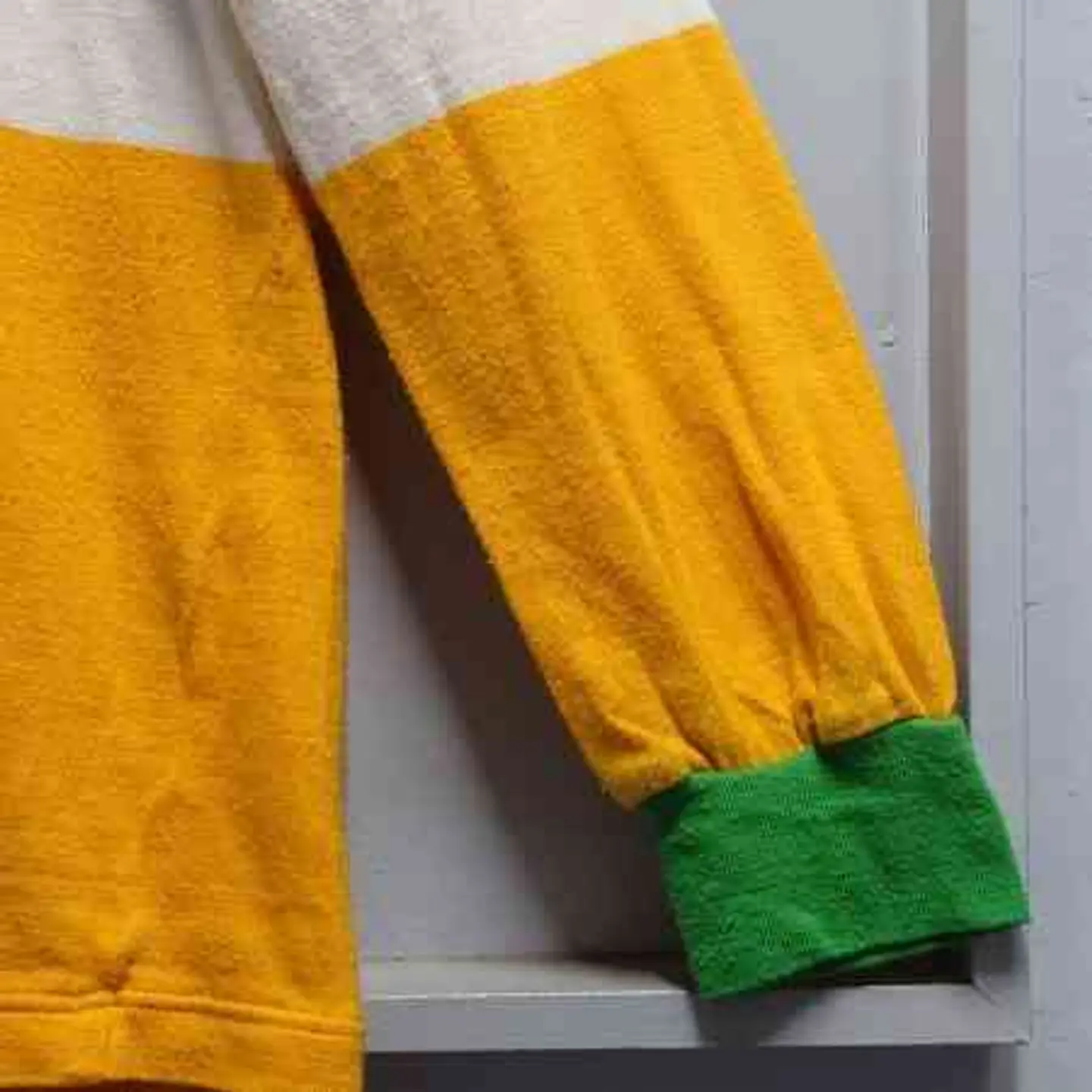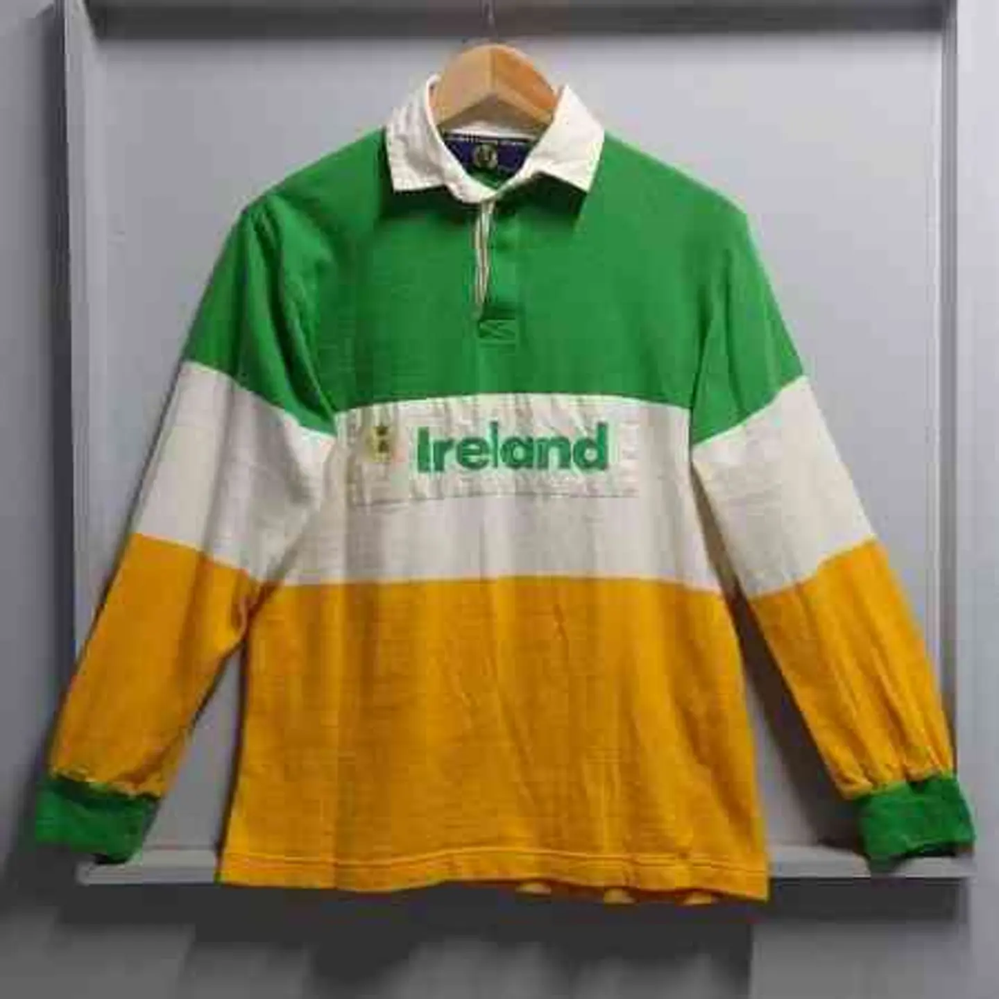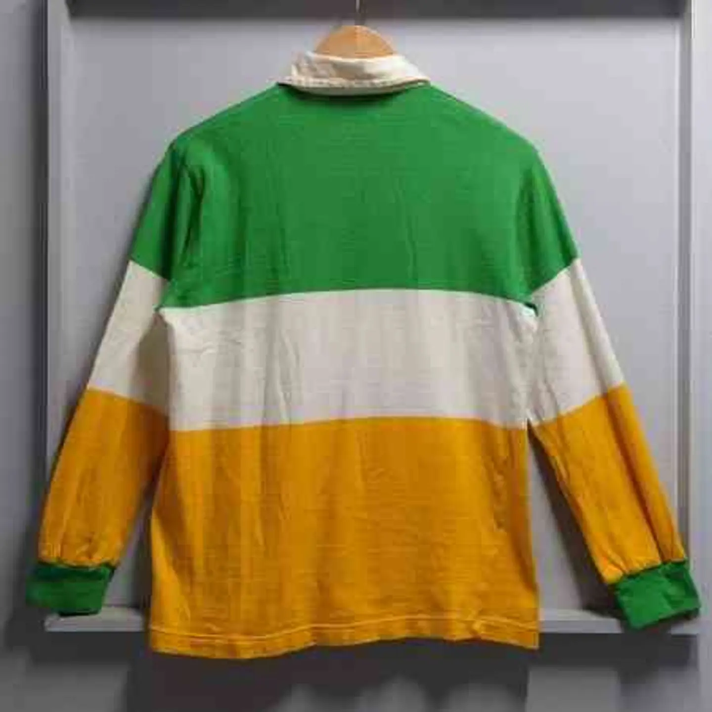 年代を感じる風合いのよいロングスリーブニットポロ。 レトロで好きな配色。 雰囲気良いです。 サイズ・・・メンズ M (身幅50cm着丈64cm肩幅44cm袖丈56cm) 状態:ボタン横に少しホツレ、襟に黄ばみがあります。 クリーニング済み カラー・・・グリーン×ホワイト×イエロー 素材・・・不明(恐らくコットン) MADE IN IRELAND 80’s Vintage 80年代ヴィンテージ BLARNEY CASTLE DESIGNS アイルランド製 ロングスリーブ ニット ポロシャツ M 長袖 ※平置きでの採寸の為、多少の誤差が生じる場合がございます。 ※商品写真の色合いは実際の商品と若干異なる場合がございます。 ※ユーズドもしくは、ビンテージ品のため使用感や細かいキズ、汚れがある場合もございますのでご了承ください。