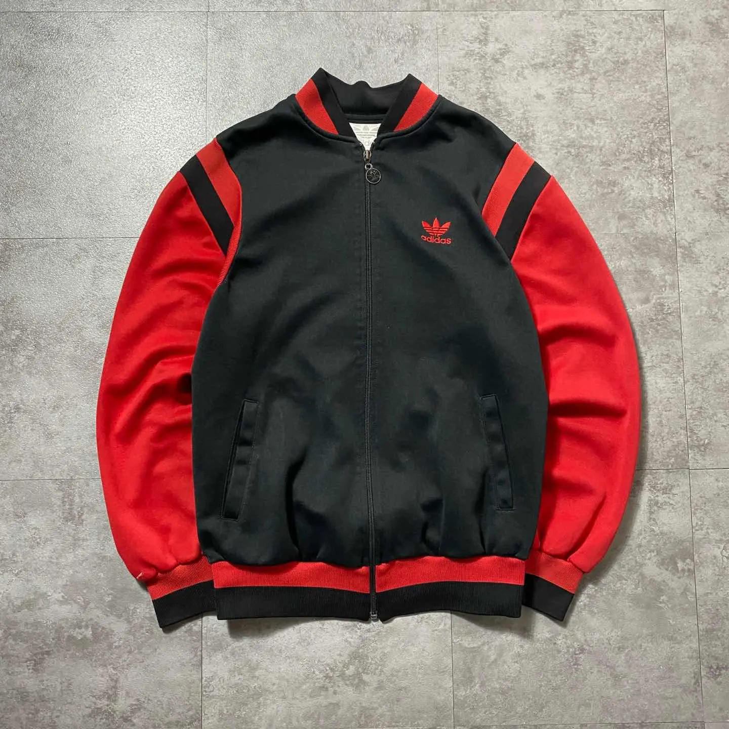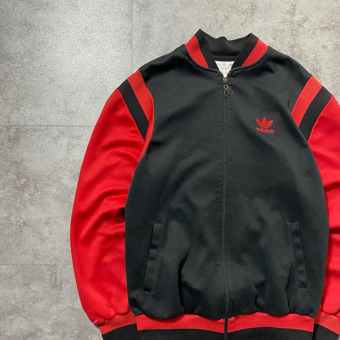 ○Size○ 表記→不明(着用感Mサイズ相当) ・着丈65 ・身幅52 ・肩幅50 ・袖丈60 (cm) ○Color○ ・ブラック、レッド ○Material○ ・ポリエステル ○Condition○ ・右袖先に薄汚れあり ・左袖に一部ほつれ箇所あり ○Caution○ 当店で取り扱っている商材は全て『古着』となっております。 そのため、多少の状態難(ほつれ、傷、汚れ、リブの伸び、使用感、擦れ、色あせ、etc)がある場合がございます。 新品同様の完璧なお品物をお求めの方は当店でのお買い物を控えて頂きますよう宜しくお願いします。 また、購入された商品に関しましては、購入日時から起算して『72時間以内に』発送手続きの方を取らせて頂きます。 お急ぎの場合は購入前に当店オンラインストアの方にお問い合わせ頂きますよう宜しくお願いします。 25/1148