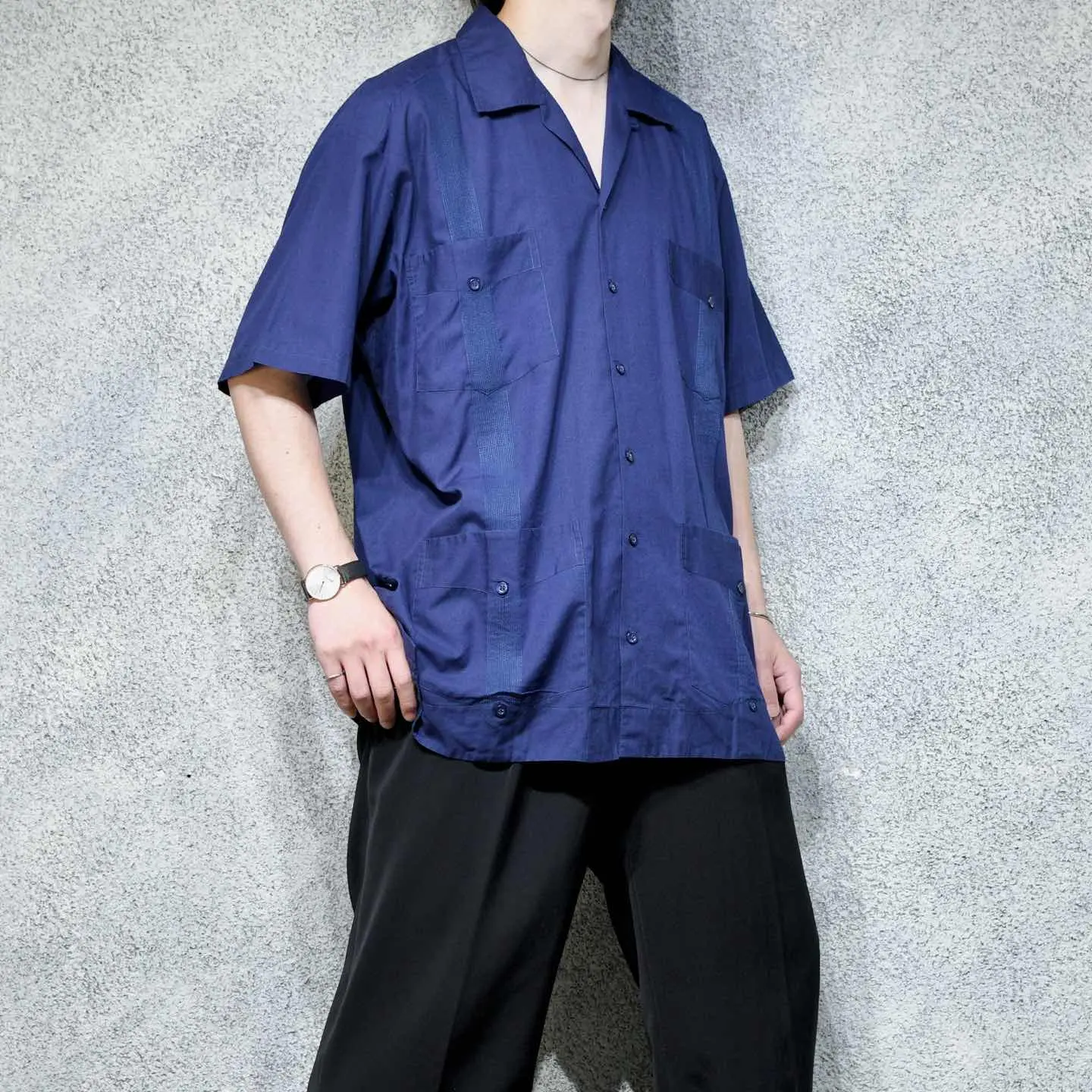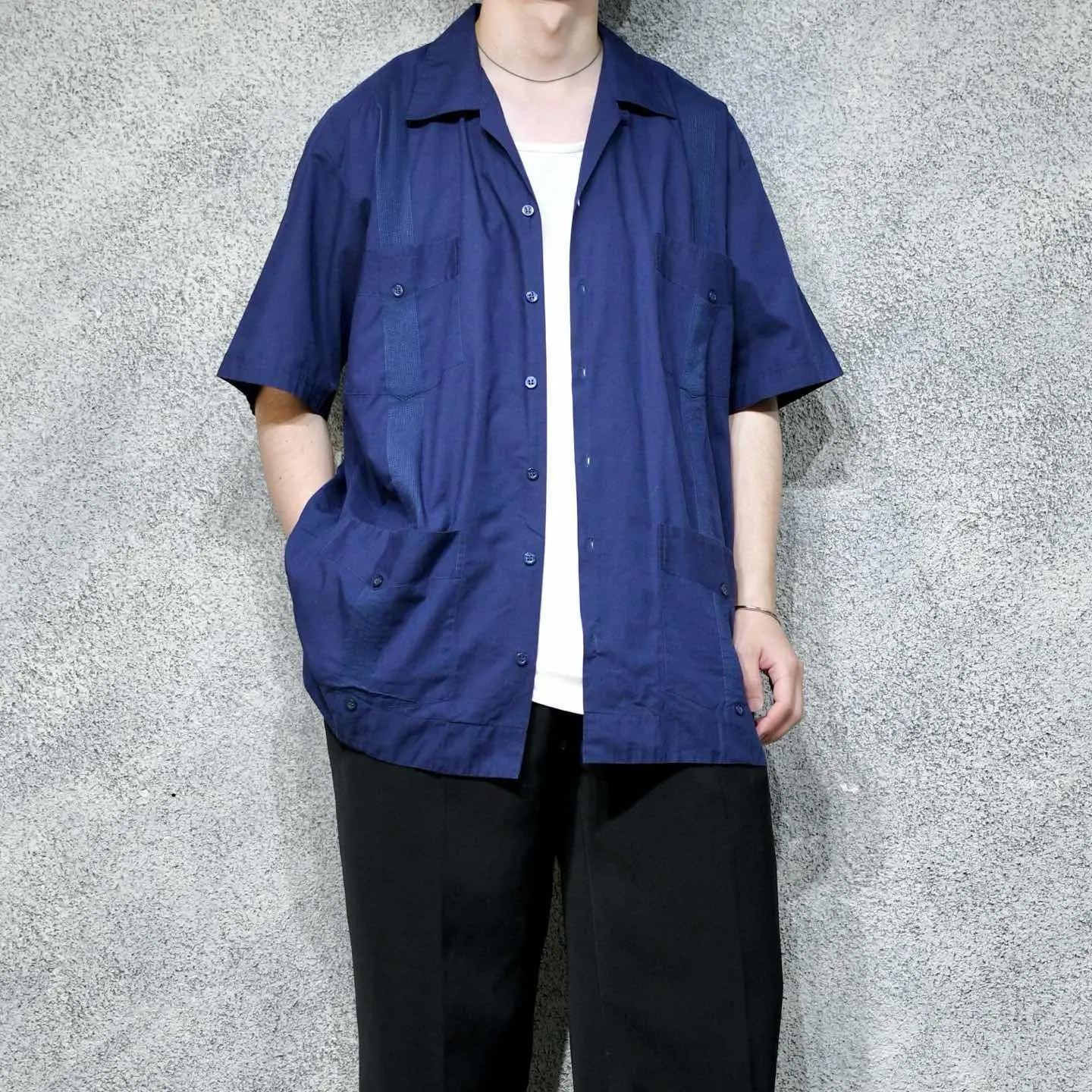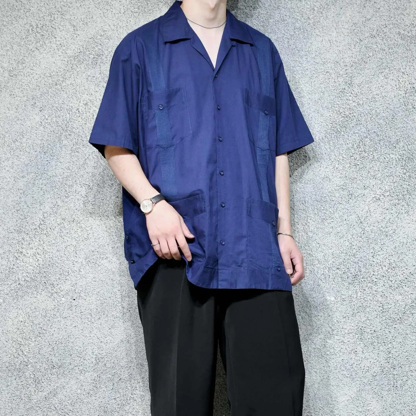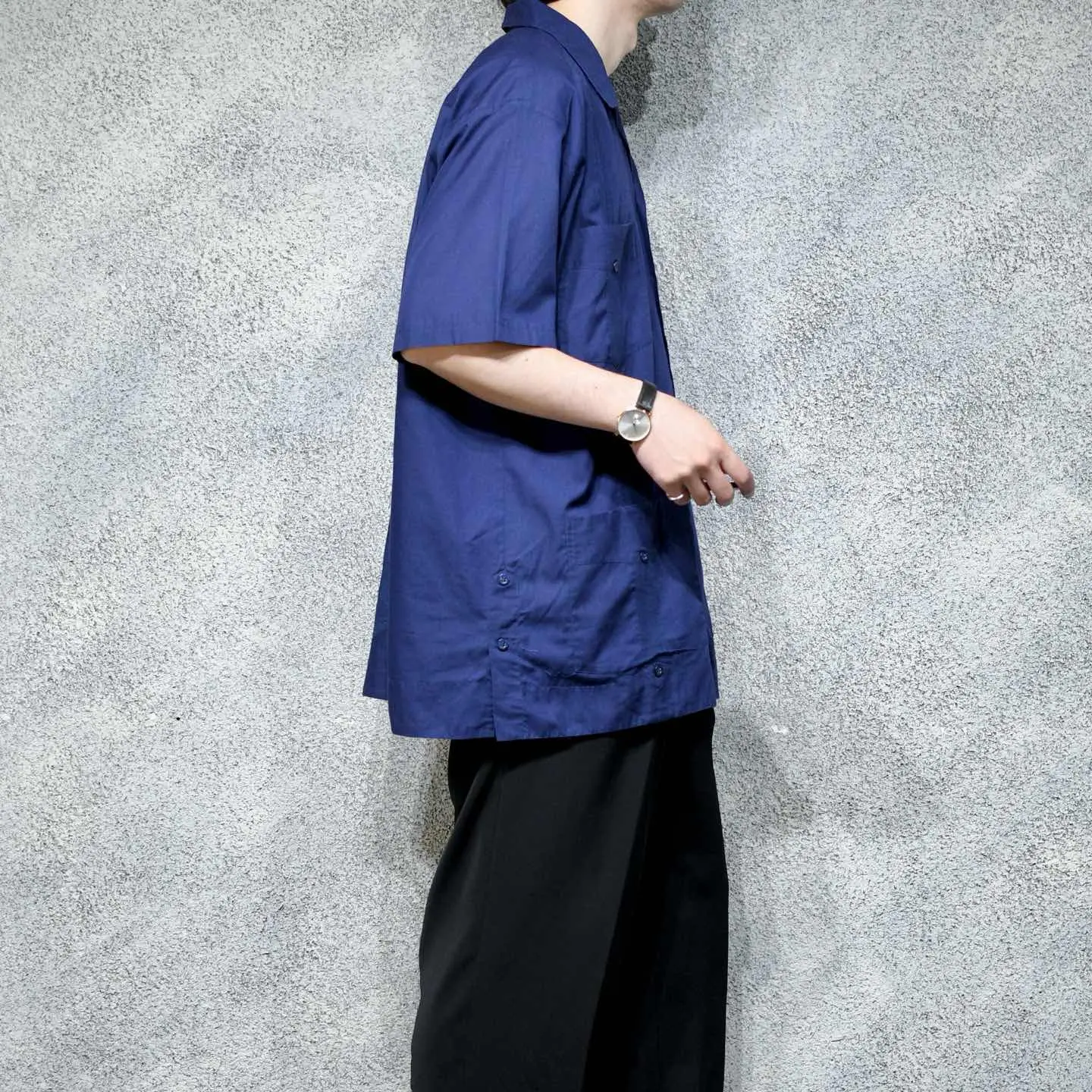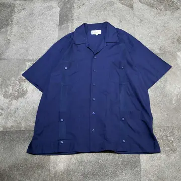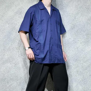 着丈77cm 肩幅57cm 身幅69cm 袖丈26cm fabric/質感よりcotton・poly 着用画像 177cm/64kg 半袖シャツの中でも、”程よい一癖”を 持ち合わせたキューバシャツ。 刺繍やプリーツなど、多くの装飾が施された 個体が多いですが、こちらはプリーツのみという 比較的シンプルでデイリーユースに着れる1着。 キューバシャツと認識できるディテールは残した、 引き算の上手い逸品ではないでしょうか。 その中でも、同色ながら鮮やかなボタンに 惹かれました。 タンクトップの上から羽織として、 半袖シャツとして、どちらでも上手く 纏まるはずです。 ※撮影状況により、実物と多少色が異なる場合が ございます。 ※古着を取り扱っているため、気づかない汚れや ほつれ等がある場合がございます。 予めご了承ください。 ※サイズは着用感で選んでおり、表記サイズではございません。 古着 オーバーサイズ old vintage ヴィンテージ used 80's 90's アメリカ古着 ユーロ古着 メンズ レディース POLO RALPH LAUREN Eddie Bauer OLD GAP Eddie Bauer LANDS' END ランズエンド LLBean エルエルビーン オールドギャップ エディーバウアー ラルフローレン ブルックスブラザーズ Brooks Brothers 紺色 開襟シャツ グアテマラシャツ などがお好きな方 #vintage #オーバーサイズ #old #used #90s #80s #古着 #ヴィンテージ #アメリカ古着 #ユーロ古着 #古着男子 #古着女子 #LLBean #エルエルビーン #EddieBauer #エディーバウアー #oldgap #オールドギャップ #LANDSEND #ランズエンド #NAUTICA #ノーティカ #ラルフローレン #POLORALPHLAUREN #ブルックスブラザーズ #BrooksBrothers #デザインシャツ #半袖シャツ #キューバシャツ #グアテマラシャツ #オープンカラーシャツ #開襟シャツ