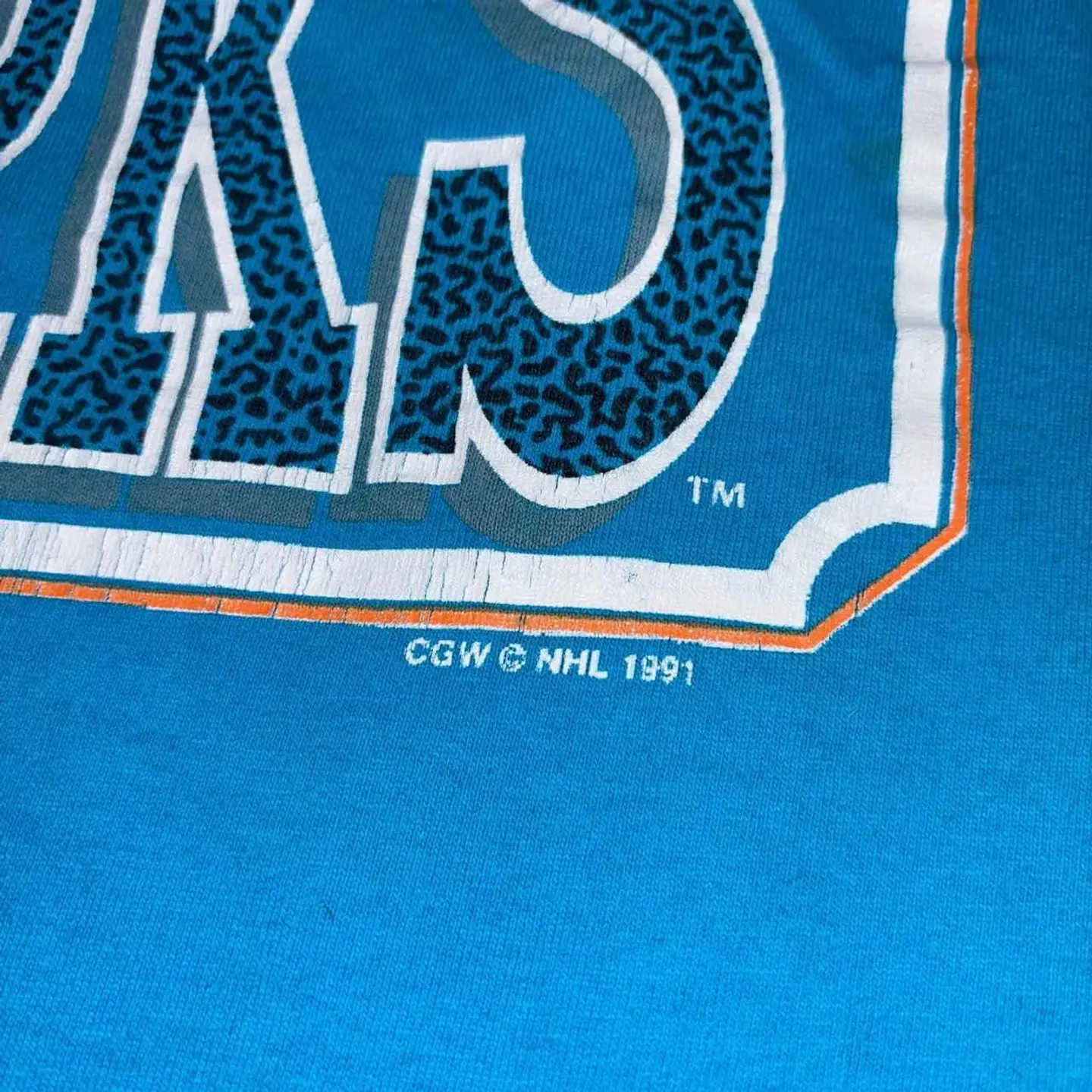アメリカのプロアイスホッケーチーム「San Jose Sharks(サンノゼ・シャークス)」のロゴを大胆にあしらった90年代Tシャツ。 シャーク(サメ)がホッケースティックを噛み砕く迫力のあるグラフィックは、チームの攻撃的なスタイルとスピード感を象徴しています。 エネルギッシュなターコイズブルーのボディに、ロゴのブラック×ホワイト×オレンジのコントラストがよく映え、古着らしい存在感のある1枚。スポーツファンはもちろん、ストリートスタイルのアクセントとしてもおすすめです。 サイズ(表記:M) 肩幅:51cm 袖丈:25.5cm 身幅:53cm 着丈:70cm ▶︎ 目安:170〜175cm前後の方におすすめ。 ゆったり着たい160cm台の方にも◎ 【素材・カラー・生産国】 素材:100% cotton カラー:ターコイズ(水色) 生産国:カナダ製 ブランド:WAVES コンディション【B】 【コンディションランク】 S:新品・デッドストック A:使用感少なめでキレイ B:使用感あり(軽微な汚れ・シミあり) C:ややダメージあり D:大きなダメージあり スタイリング提案 ・ブラックスキニーやデニムと合わせてスポーティに ・ナイロンパンツやキャップと合わせてストリートMIXコーデにも ご注意 ・古着商品のため、細かなキズや汚れがある場合があります ・一点物となりますので、気になる方はお早めにご購入ください ・ご利用のモニター環境により、色味が異なる場合があります#vintage #古着 #90s