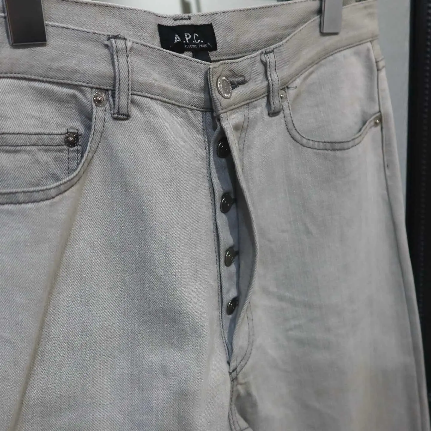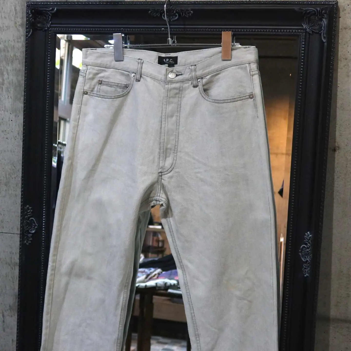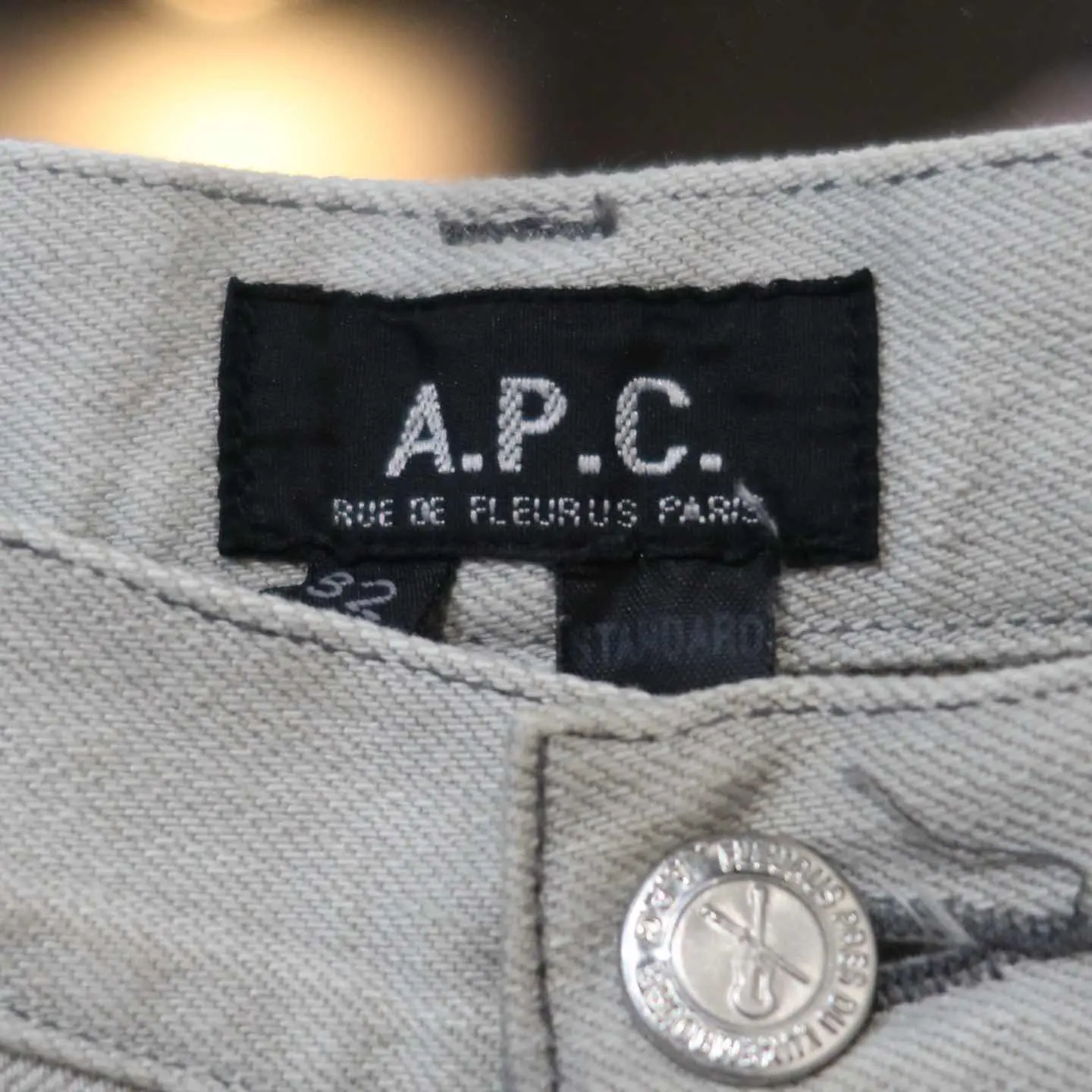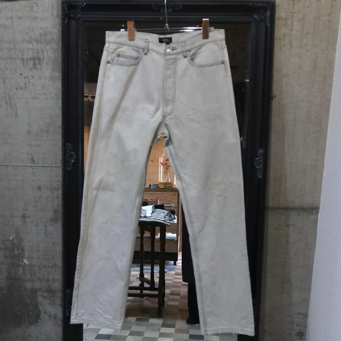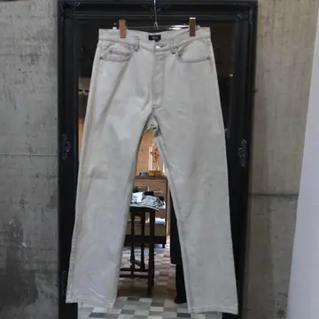 【商品名】 A.P.C STANDARD denim 【アイテムについて】 A.P.Cの色落ちしたグレーデニム もはや少し色が入り込んだホワイトデニムだと思った方がいいかもしれません。 シルエットはA.P.Cを感じる細身なストレートで スタイル良く映えさせてくれます。 背面のレザーパッチが無いことでアメカジにはない洗練された印象に。 ボタンに楽器が刻印されていることも、特徴です。 【サイズ】 股上 : 25cm 股下 : 78cm ウエスト幅 : 41cm わたり幅 : 30cm 裾幅 : 20cm 総丈 : 106cm 【素材】 コットン 【コンディション】 汚れ・ダメージはございません。