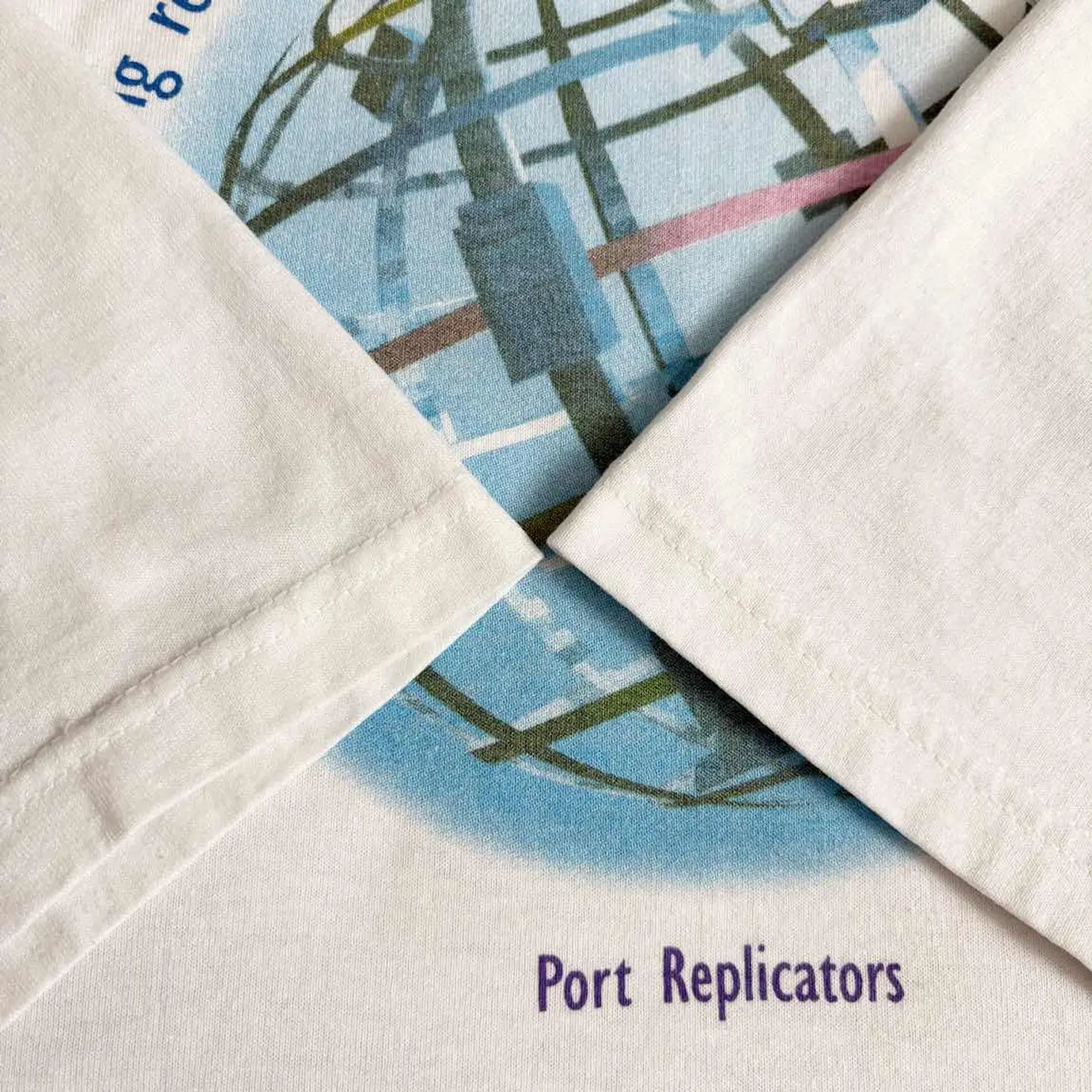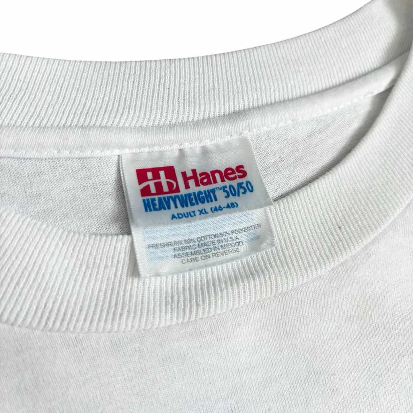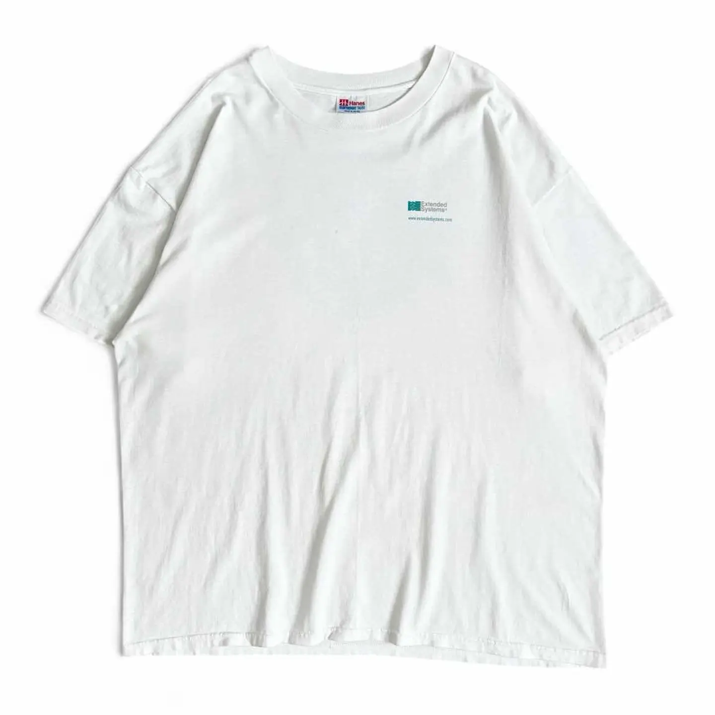 ○商品説明 USA製 Hanes Extended Systems 携帯電話のプロバイダー関連のIT企業になります。 バックには地球儀がデザインされており グローバルな接続性や情報共有の広がりを表しているのかと思います。 気になった方は是非。 ○サイズ 表記XL 平置き ・肩幅61cm ・身幅64cm ・袖丈22cm ・着丈71cm ○商品の状態B A:使用感がほとんどなく、汚れやシミもなし B:多少使用感はあるが、汚れやシミも少ない C:使用感があり、汚れやシミがある D:使用感があり、大きな汚れや破れあり ○色 ホワイト #USA製#Hanes#ヘインズ#Tシャツ
