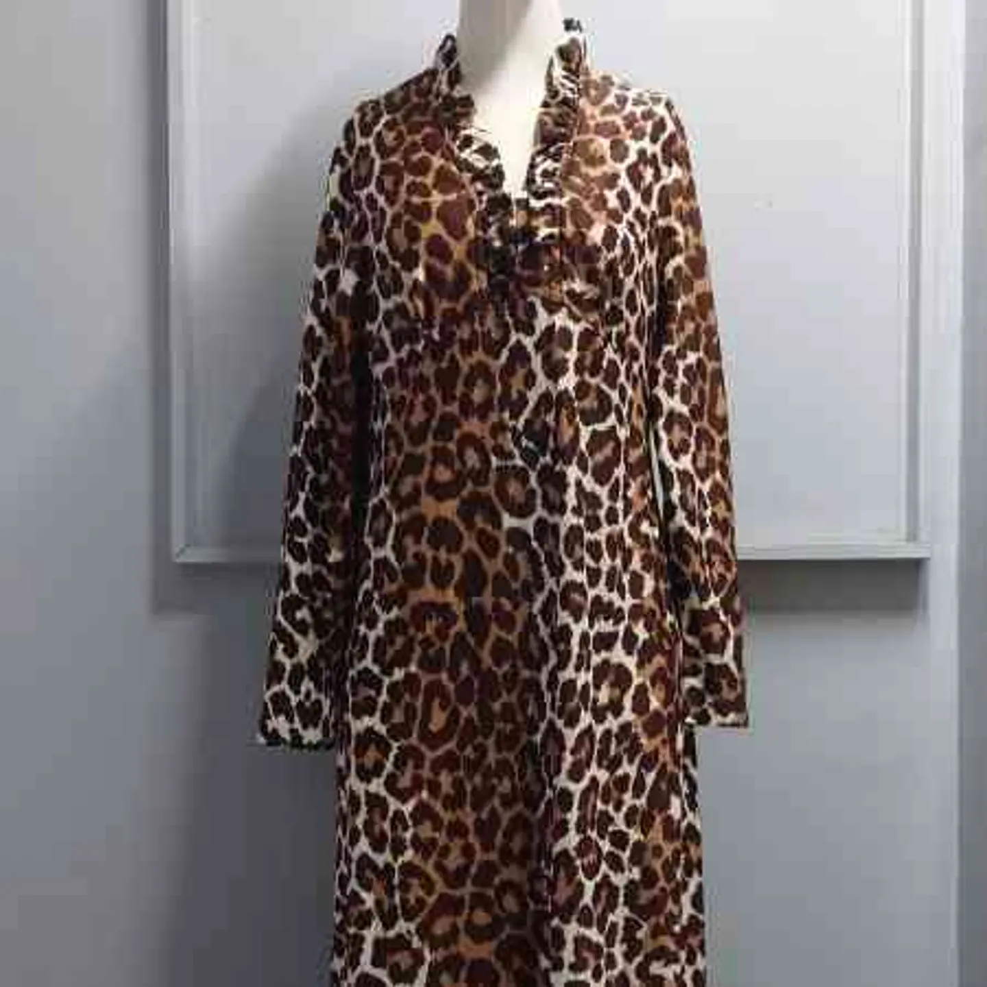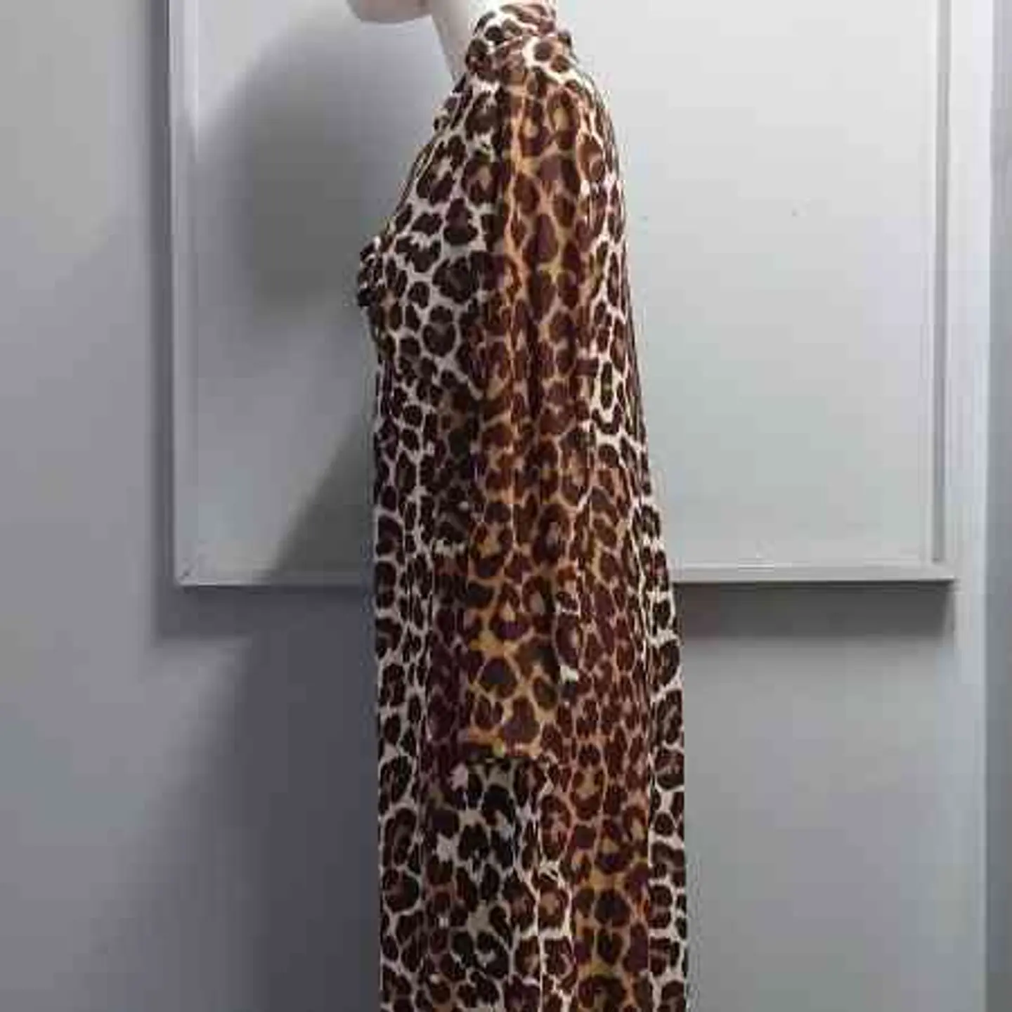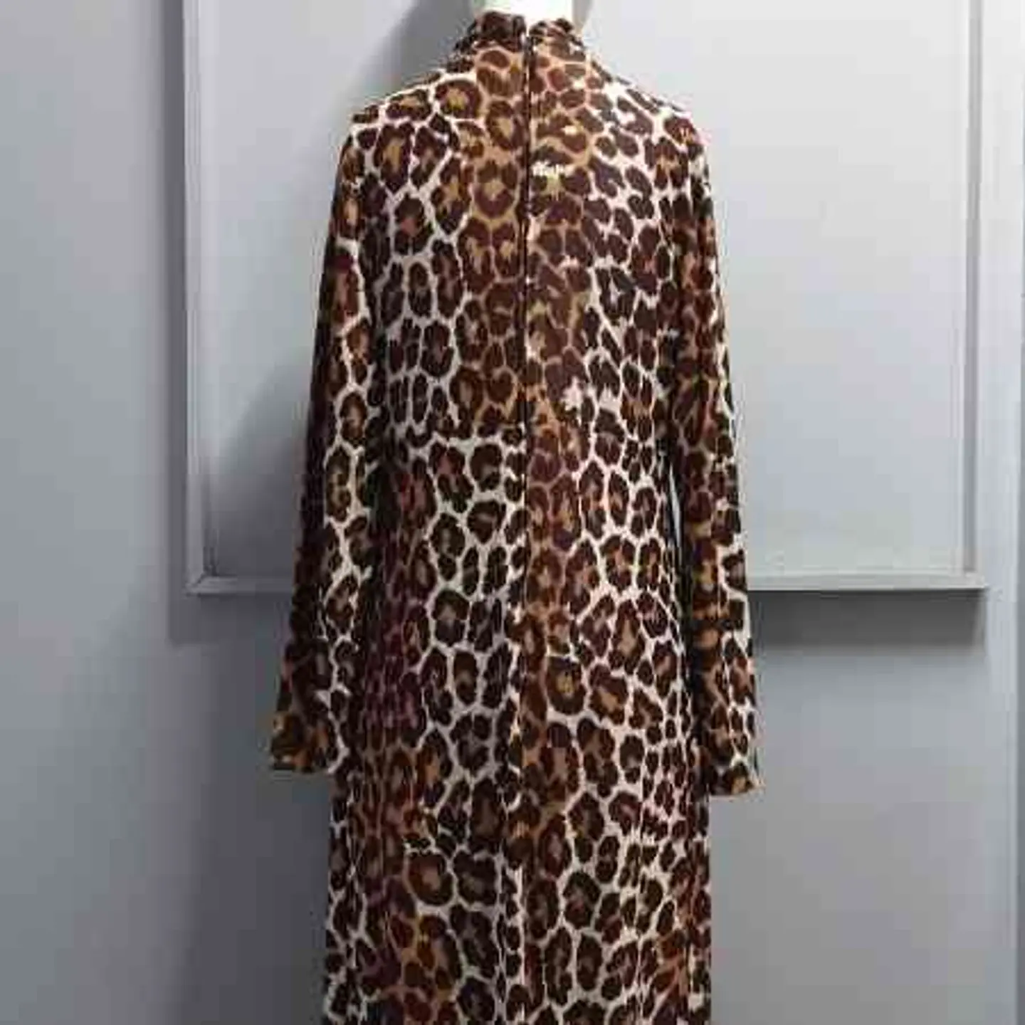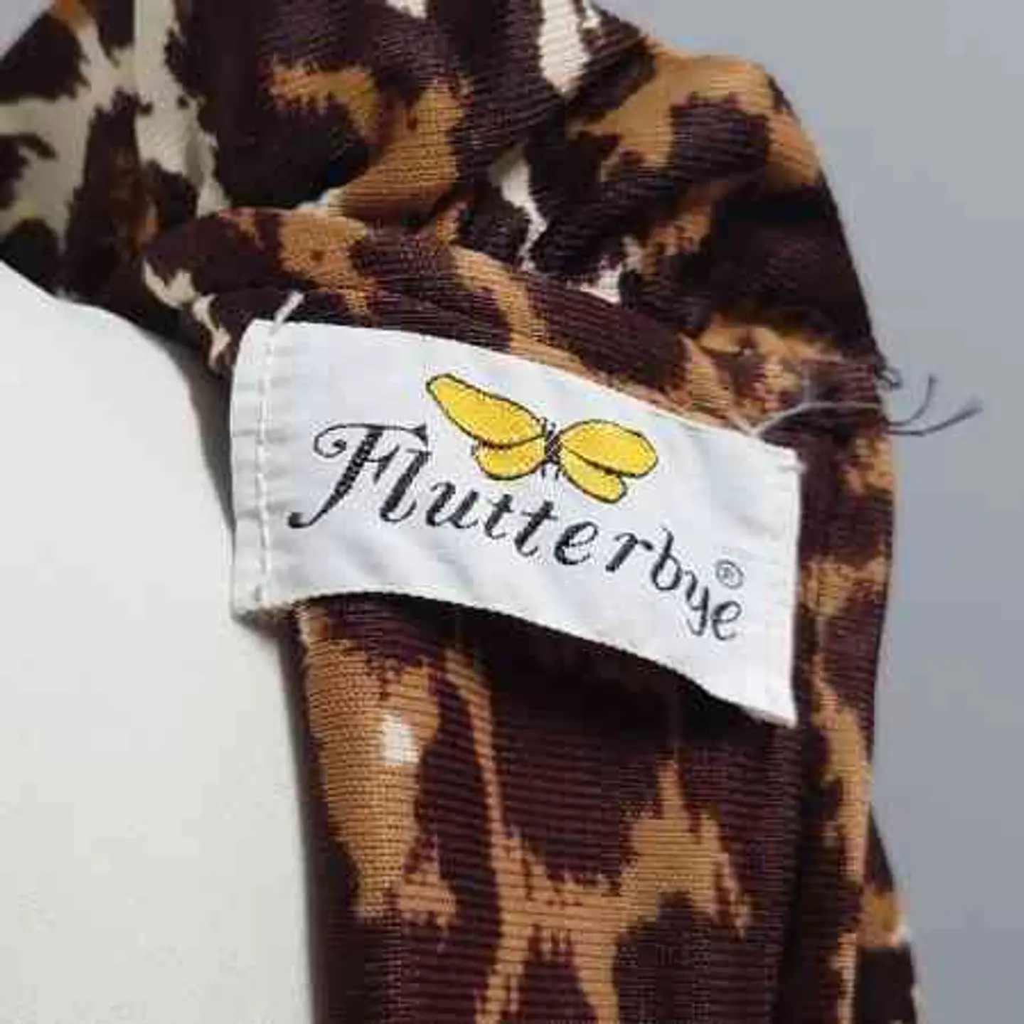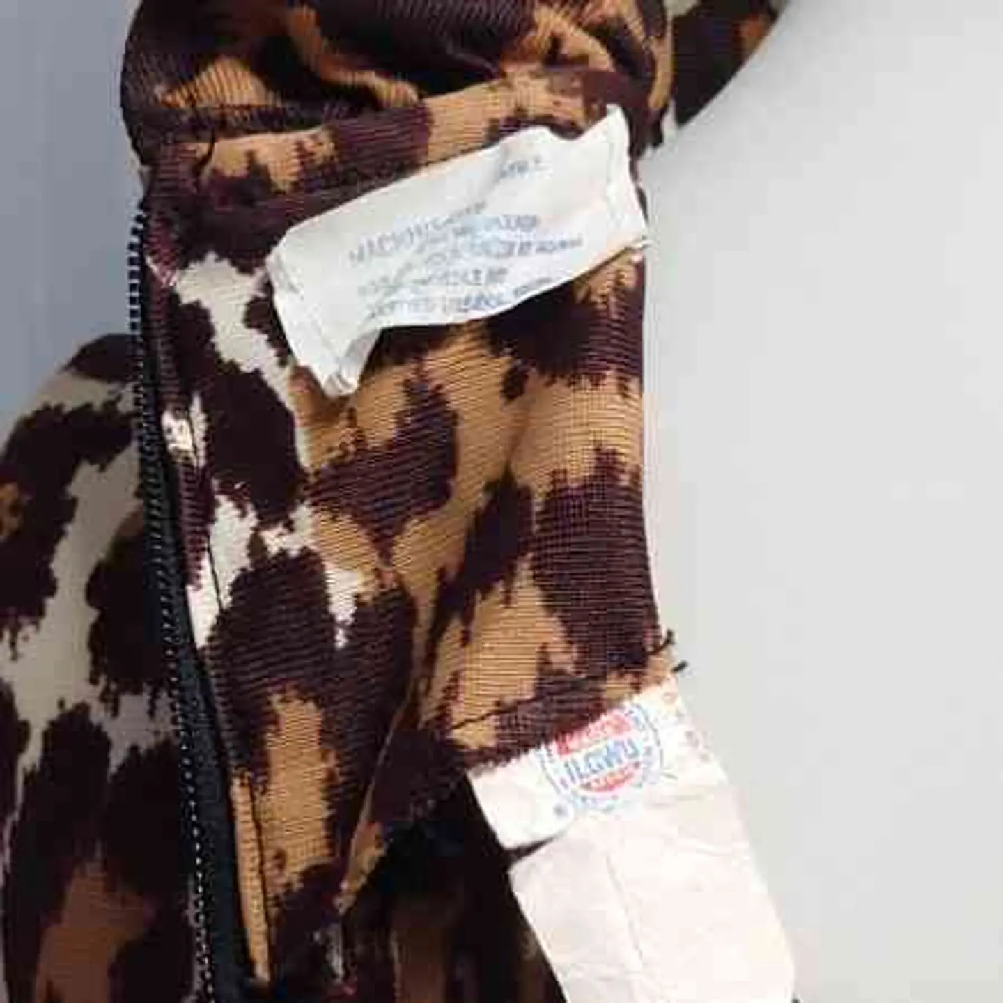 とってもエレガントなヴィンテージワンピースです。ユニオンチケット付きで70-90年代製になります。 微かに艶感のあるジャージのようなしなやかな生地。伸縮性も少しあります。 見た目の華やかさはもちろん、シルエットも美しいんです。これはもはやドレスとも呼べるんじゃないかな…そんな素敵な一着です。 サイズ・・・不明(レディースサイズ) (身幅44cm総丈139cm肩幅38cm袖丈56cm) ※トルソーサイズ9号 ※背中のジッパーを開けた写真に写っている黒いインナーは付属しません。 状態:使用感はありますが、まだまだ着ていただけます。 クリーニング済み カラー・・・ブラウン系 素材・・・POLYESTER 他 MADE IN USA Vintage Flutterbye USA製 レオパード柄 ロング ワンピース TALONジップ 総柄 長袖 ※平置きでの採寸の為、多少の誤差が生じる場合がございます。 ※商品写真の色合いは実際の商品と若干異なる場合がございます。 ※ユーズドもしくは、ビンテージ品のため使用感や細かいキズ、汚れがある場合もございますのでご了承ください。