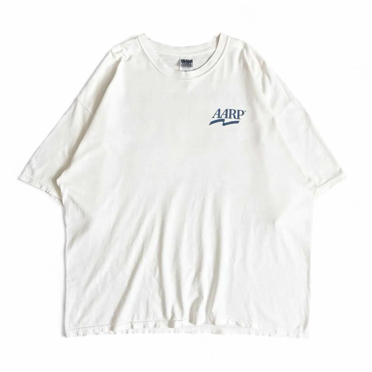 ○商品説明 GILDAN AARP アメリカの高齢者向け会員制非営利団体です。 1958年にエセル・パーシー・アンドラス博士とレオナルド・デイヴィスによって設立されました。 50歳以上の人が対象となり様々なサービスを受けることが できるらしいです。 ○サイズ 表記2XL 平置き ・肩幅63cm ・身幅66cm ・袖丈23cm ・着丈70.5cm ○商品の状態B A:使用感がほとんどなく、汚れやシミもなし B:多少使用感はあるが、汚れやシミも少ない C:使用感があり、汚れやシミがある D:使用感があり、大きな汚れや破れあり ○色 ホワイト #GILDAN#ギルダン#AARP#Tシャツ