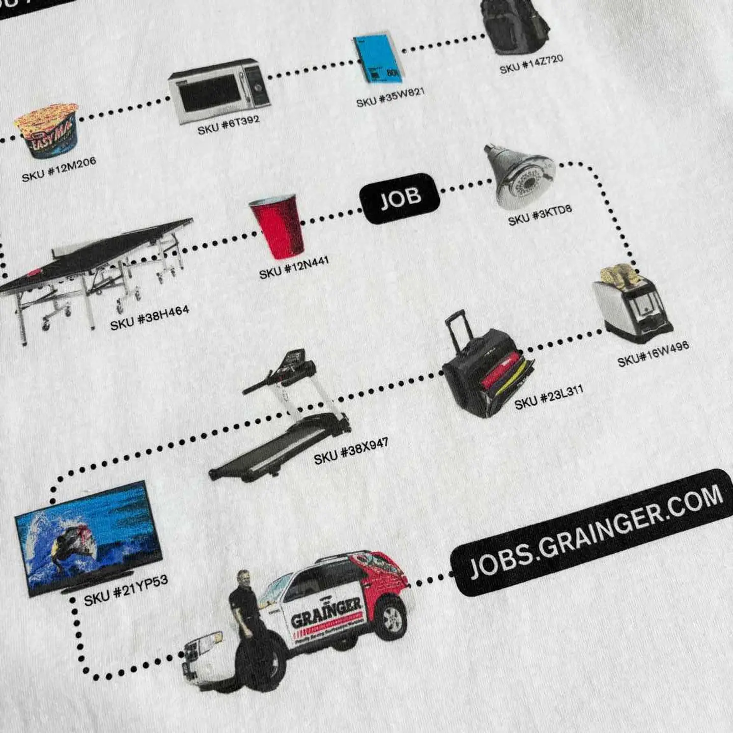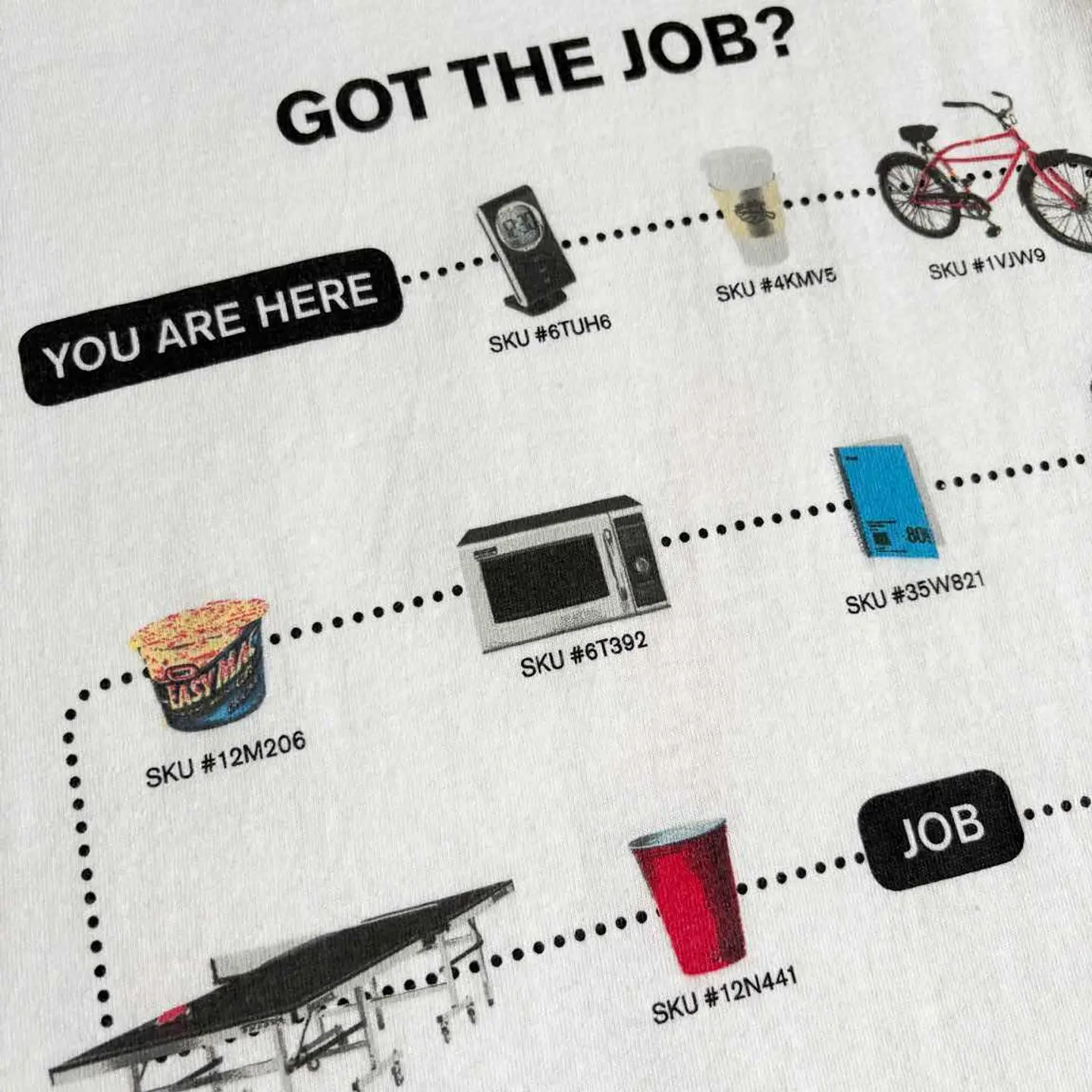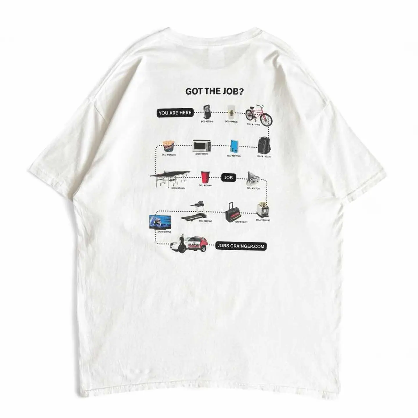 ○商品説明 GILDAN Grainger アメリカの工業用品販売大手によるリクルート プロモーションTシャツで、ビジュアルとジョークを 組み合わせたメッセージ性の強い一枚になります。 Nailed it! Get it. Got it. Good.」というフレーズは 「完璧にやり遂げた!」という意味と、ハンマーの釘を 打つ動作をかけたユーモラスな表現です。 バックには 点線でつながれた「人生の進行ルート」のような図で、 左上の「YOU ARE HERE (現在地)」から、右下の「JOBS.GRAINGER.COM」まで導かれる構成になっており ユーモア溢れるデザインになります。 是非。 ○サイズ 表記XL 平置き ・肩幅58.5cm ・身幅59cm ・袖丈19.5cm ・着丈74cm ○商品の状態B A:使用感がほとんどなく、汚れやシミもなし B:多少使用感はあるが、汚れやシミも少ない C:使用感があり、汚れやシミがある D:使用感があり、大きな汚れや破れあり ○色 ホワイト #GILDAN#ギルダン#GotTheJob#企業#Tシャツ