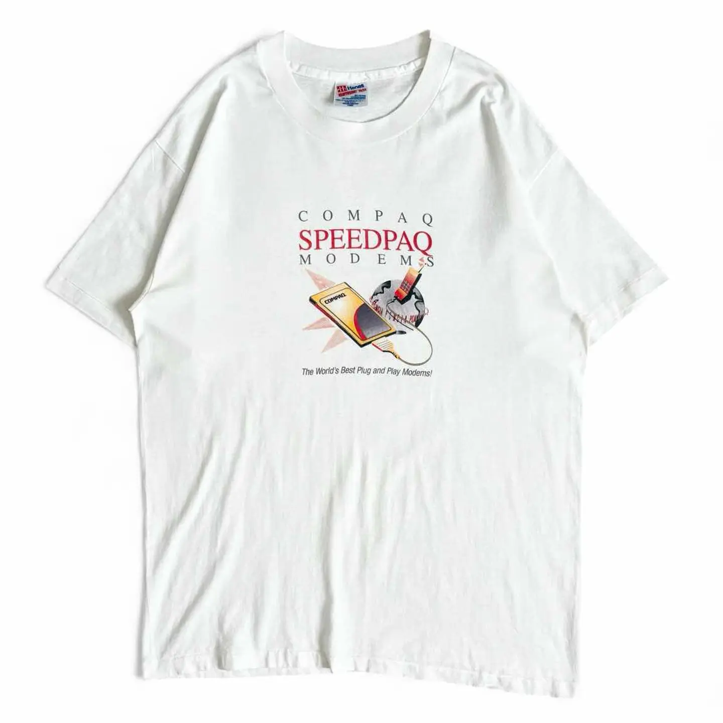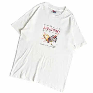 ○商品説明 90s USA製 Hanes 大手コンピューターメーカー Compaq の製品 「SPEEDPAQ MODEMS(スピードパック モデム)」を 宣伝しているTシャツになります。 IT技術の象徴をポップにデザインした一枚で、 テックノスタルジーを楽しむ方には最高かと。 企業らしさ全開です。 気になった方は是非。 ○サイズ 表記L 平置き ・肩幅52.5cm ・身幅54.5cm ・袖丈20cm ・着丈71.5cm ○商品の状態B A:使用感がほとんどなく、汚れやシミもなし B:多少使用感はあるが、汚れやシミも少ない C:使用感があり、汚れやシミがある D:使用感があり、大きな汚れや破れあり ○色 ホワイト #90s#USA製#Hanes#ヘインズ#COMPAQ#コンパック#Tシャツ