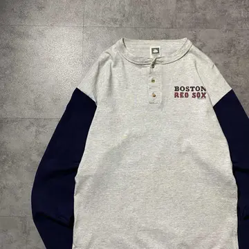 【USA製】90s RED SOX ヘンリーネック シングルステッチ ロンT