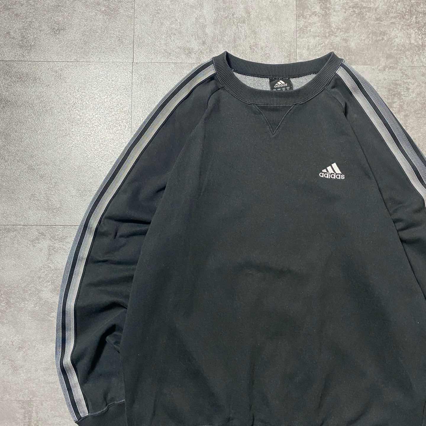 00's adidas アディダス 刺繍ワンポイント サイドストライプ ブラック スウェット