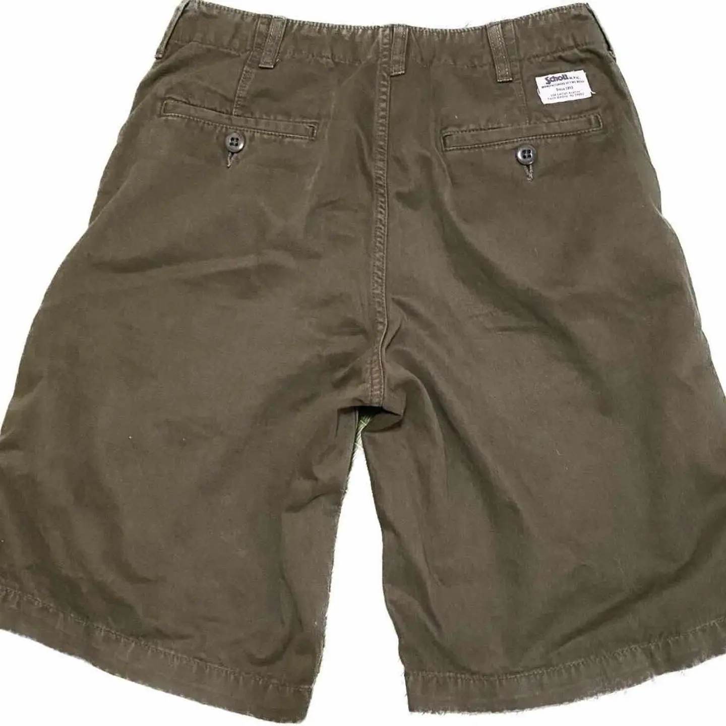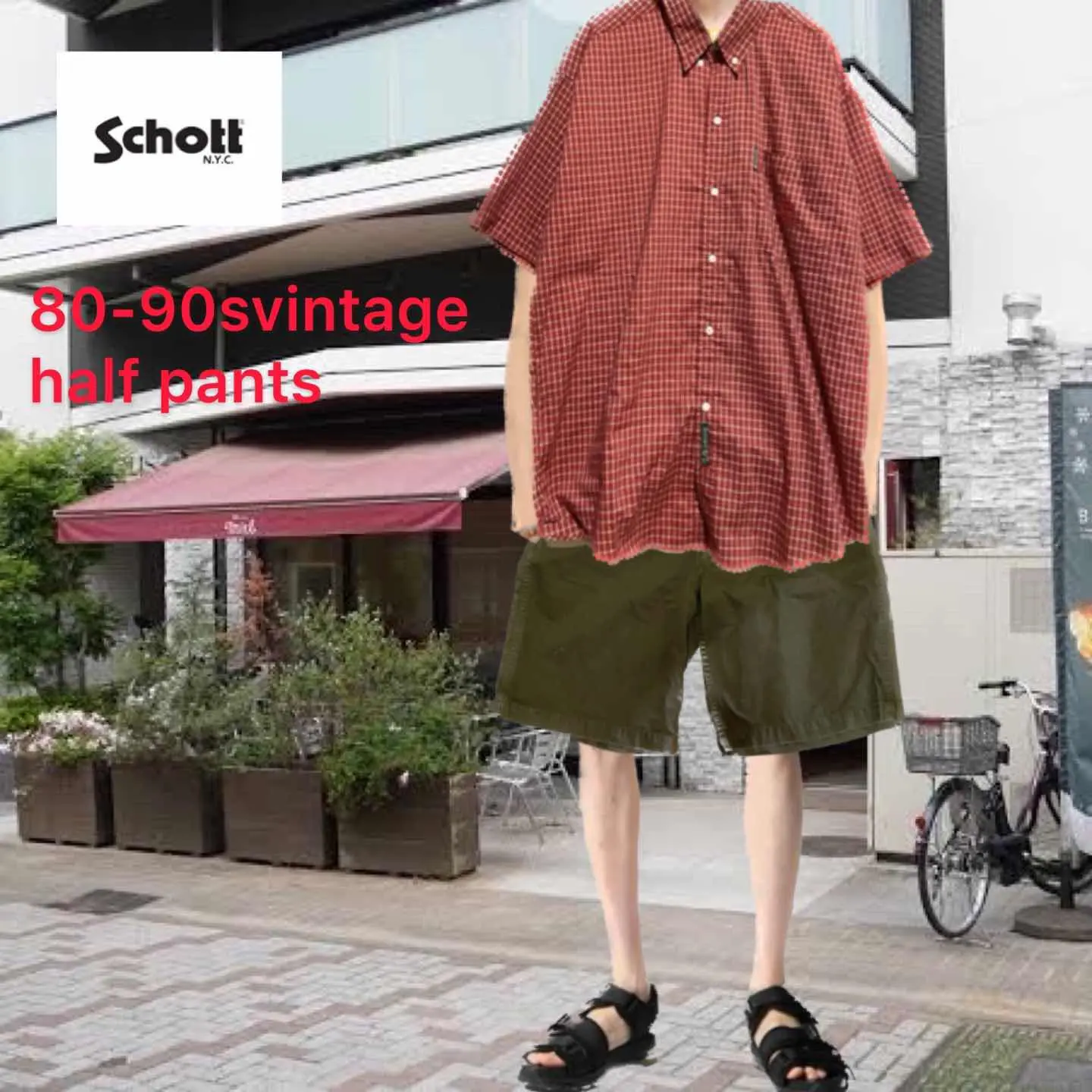 80-90初期 激レア schott 白タグ Gカム ハーフパンツ W80まで対応 80s-90s 革ジャン、ミリタリー、アメカジを長年牽引する、最高なブランド ショットの白タグセミオートGzipヴィンテージの魅力満載の1着が到着しました。 大人っぽいシルエットにコインポケット.サイドポケットバックポケットと機能性まであり、 シンプルながらとことん追求された。1本は確実にあなたのおしゃれを格上げします。 ショットのヴィンテージのいいところはシルエットと生地だけで、少しでも古着をかじっている古着好きの方からは、一目でそれ、ショットだよねとわかるレベルの上質さです、お手持ちのお気に入りのトップスと合わせて気分を上げていってください、それではよろしくお願いいたします 更に1番のポイントは、ショットは、育つ!!です、レザジャもですが、履き込んだら半端なくカッコ良くなるんです。是非あなただけの一本に 着込んで仕上げて下さい^_^ コーデは、取り扱い tinber land を合わせてみました^_^ ▷color◁ ダークネスカーキ、ミリタリーカラー ※お使いのブラウザにより色が変わってみえる場合あります ▷size◁ 平置き片面採寸【㎝表記】 表記sizeこの時代のは、表記かなりずれてます ので、実寸でおつたえします、M-Lです、 【※ウエストのみ、メジャーで一周採寸】 ウエスト80まで、対応、ベルトループあるんで それ以下の方は、ベルトすればOK 股上30 股下30 大人シルエット 腿渡り幅32 裾30 モデル170㎝/普通体型、ボトムでしたら、30インチジャスト位の私が普通に着用できます。参考に ▷material◁ cotton ショットのは、レベル高いです、 ▷condition◁ ダメージなく、長く愛用できます、 ※入念にチェックは、しておりますが、vintage/usedの特性ご理解下さい ⚪︎検品、洗濯、検品3重チェックしてます 安心してお買い求め下さい