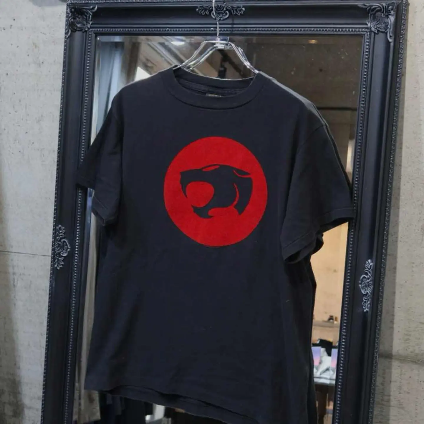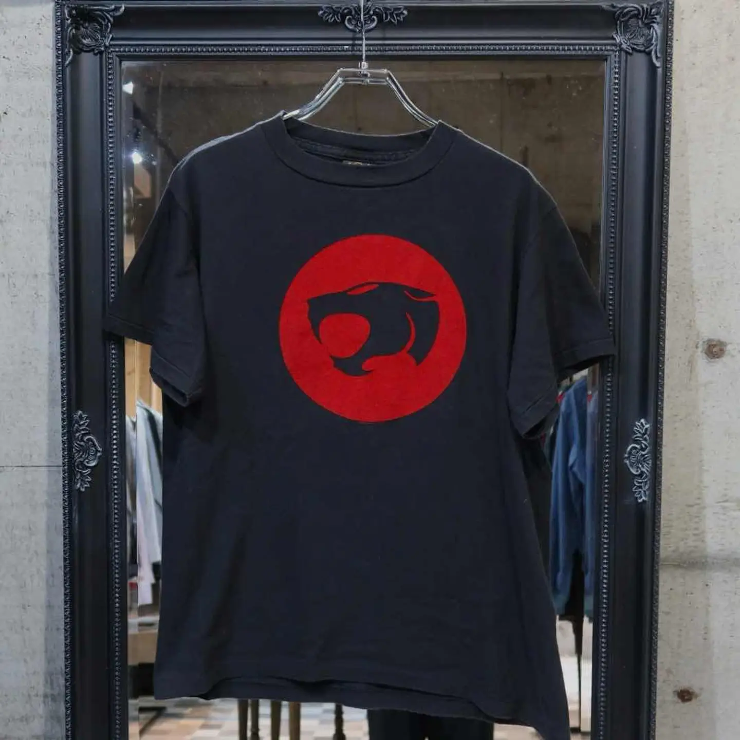 【商品名】 90's THUNDERCATS Logo T 【アイテムについて】 アメリカのアニメ サンダーキャッツのロゴが描かれています。 写真の通り、袖・裾共にシングルステッチになります。 ロゴはフェルト地のようになっています。 【サイズ】 肩幅 : 52 着丈 : 68.5 袖丈 : 20 身幅 : 54.5 【素材】 コットン 【コンディション】 使用感による色落ち #アメリカ製 #アニメT #シングルステッチ