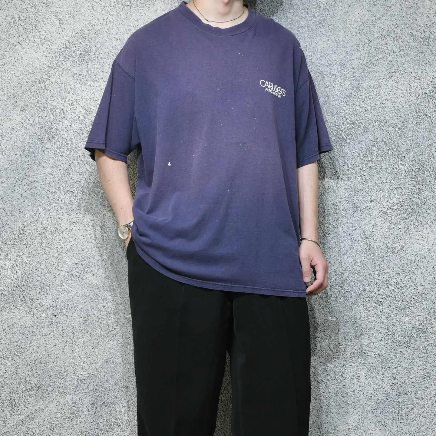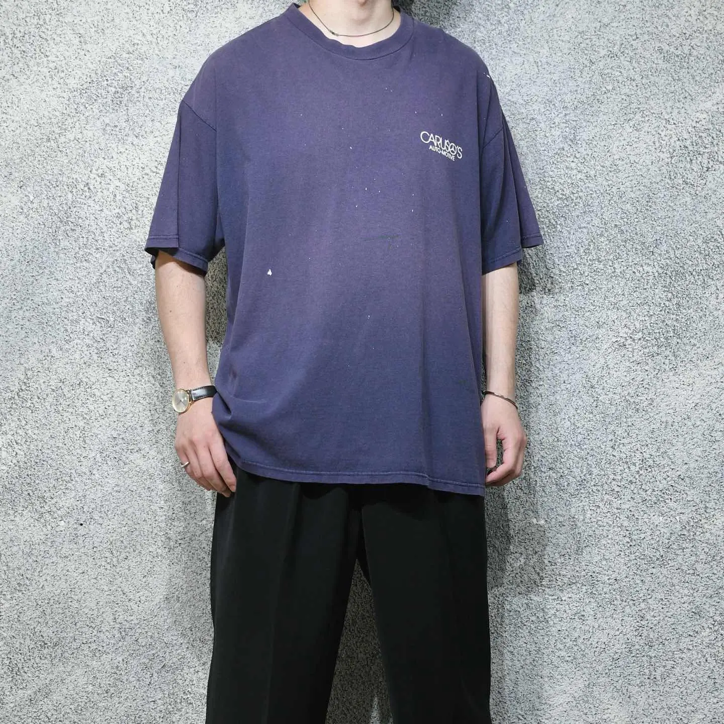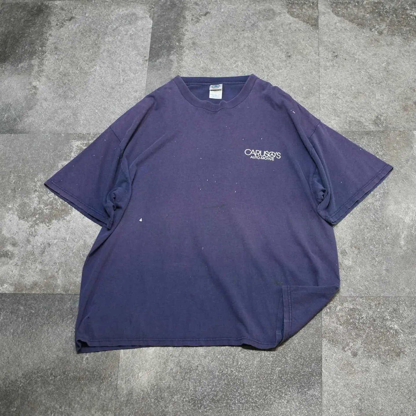 SIZE:2XL 着丈74cm 肩幅64cm 身幅68cm 袖丈25cm(ダブルステッチ) fabric/cotton 着用画像 177cm/64kg アメリカの自動車修理工場のTシャツ。 スタッフが実際に着て作業していたのか、 程よく飛んだペンキと、フェードした茄子紺色の ボディ。 そんな状態から、企業系Tシャツの中でも 群を抜いた雰囲気を持った逸品です。 プリントでTシャツを選ぶだけでなく、 ボディのフェードなどで選んでみるのも どうでしょう。 ※撮影状況により、実物と多少色が異なる場合が ございます。 ※古着を取り扱っているため、気づかない汚れや ほつれ等がある場合がございます。 予めご了承ください。 ※サイズは着用感で選んでおり、表記サイズではございません。 古着 オーバーサイズ old vintage ヴィンテージ used 80's 90's アメリカ古着 ユーロ古着 メンズ レディース POLO RALPH LAUREN Eddie Bauer OLD GAP Eddie Bauer LANDS' END ランズエンド LLBean エルエルビーン オールドギャップ エディーバウアー ラルフローレン ブルックスブラザーズ Brooks Brothers ボロ 半袖Tシャツ 両面プリント バックプリント プロモーション などがお好きな方 #vintage #オーバーサイズ #old #used #90s #80s #古着 #ヴィンテージ #アメリカ古着 #ユーロ古着 #古着男子 #古着女子 #LLBean #エルエルビーン #EddieBauer #エディーバウアー #oldgap #オールドギャップ #LANDSEND #ランズエンド #NAUTICA #ノーティカ #ラルフローレン #POLORALPHLAUREN #ブルックスブラザーズ #BrooksBrothers #企業Tシャツ #Tシャツ #プリントTシャツ #Tシャツ #半袖Tシャツ #フェード #両面プリント #バックプリント
