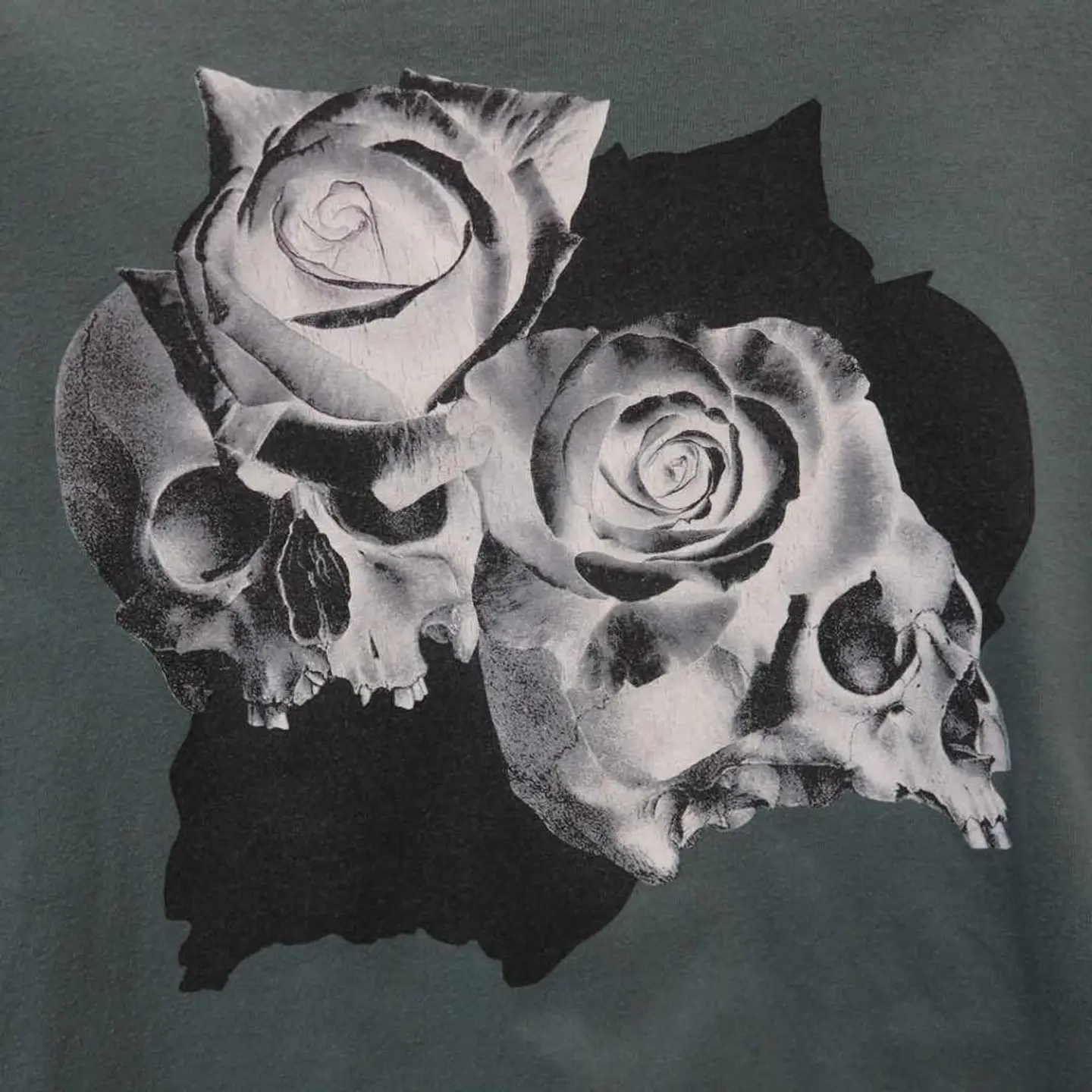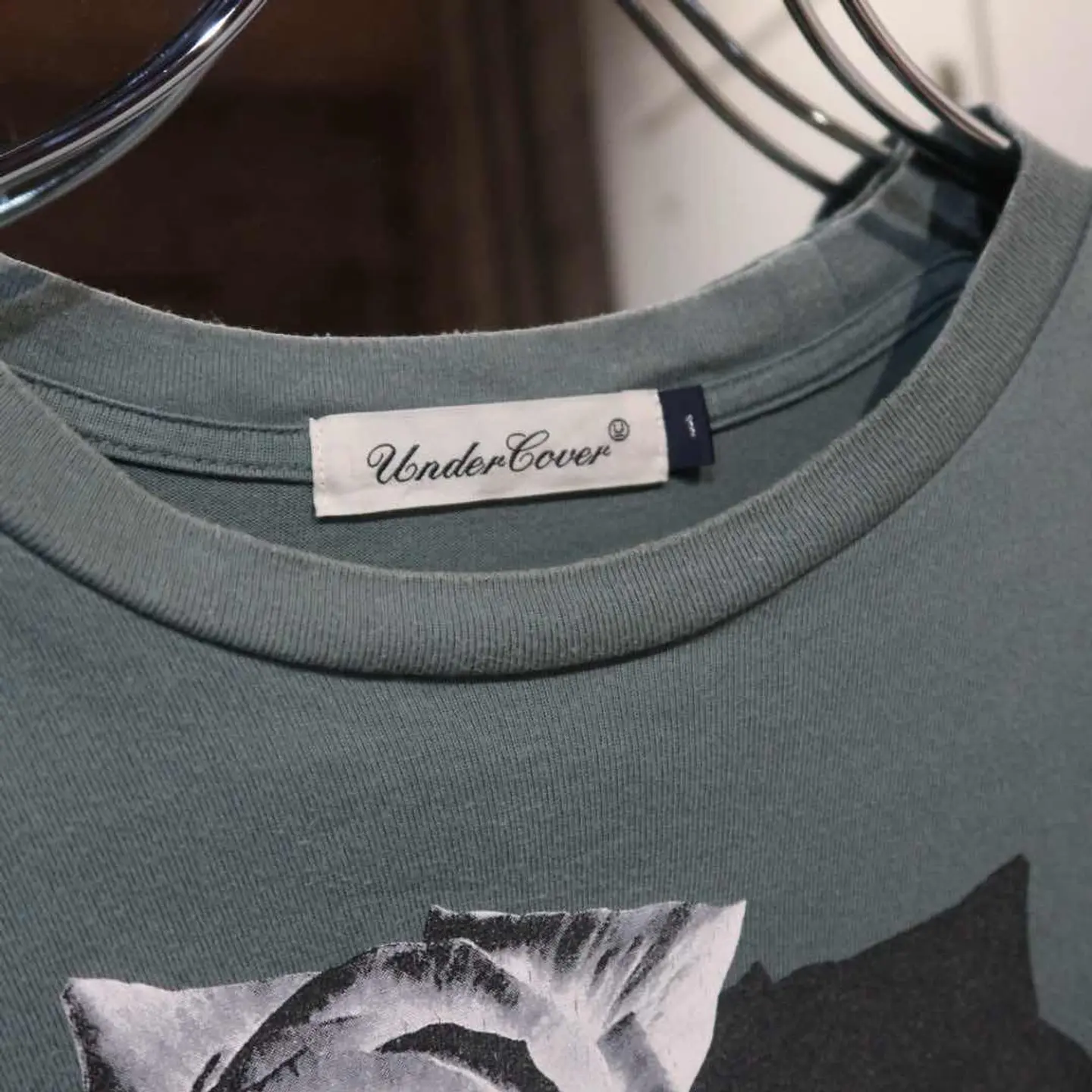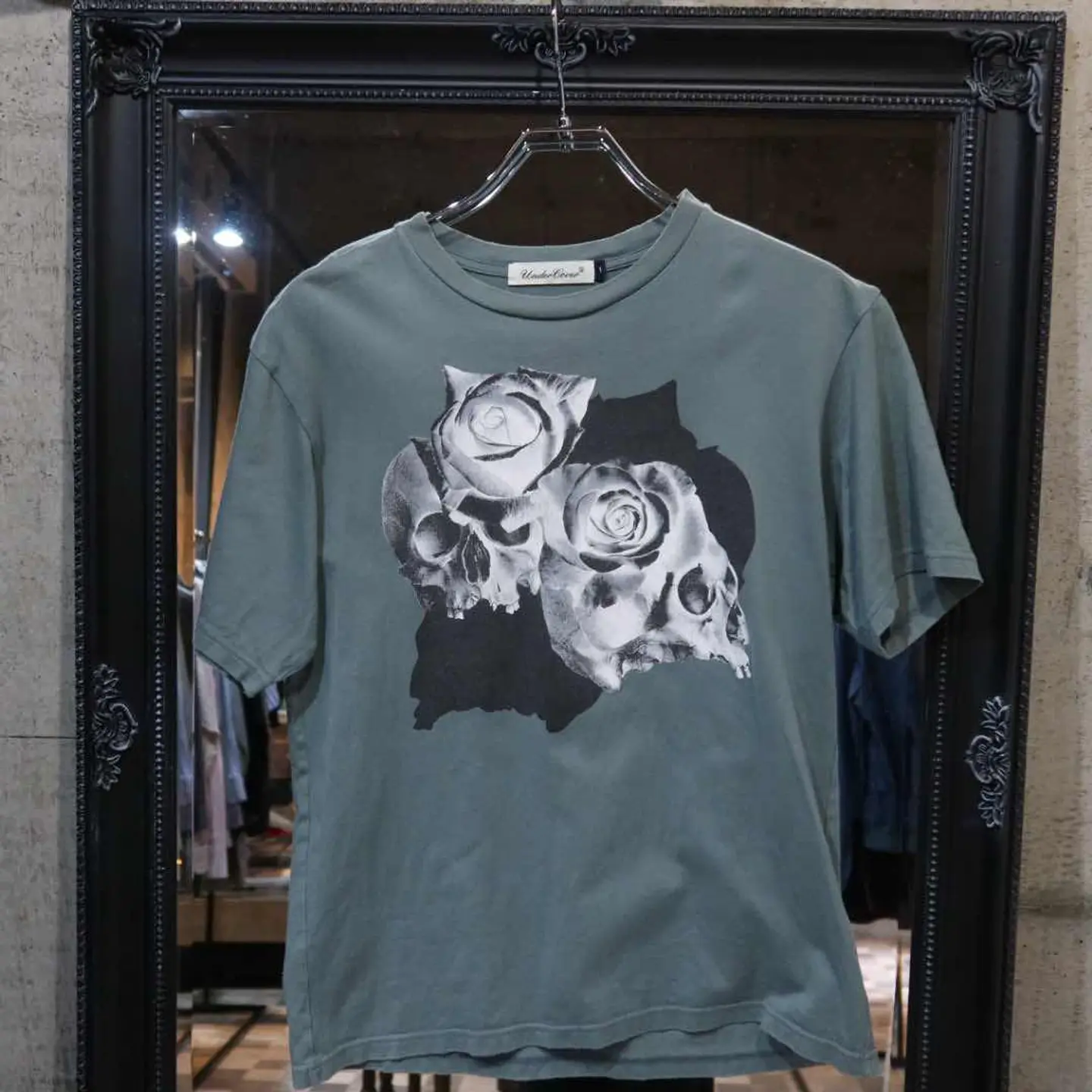 【商品名】 UNDERCOVER skull rose-T 【アイテムについて】 アンダーカバーのスカルローズが描かれた 雰囲気あるグラフィックTです。 着丈が短く、スタイル良く見えるシルエット 青緑のボディで、黒・青・ベージュ・グレーあたりが合いそうです。 【サイズ】 肩幅 : 49cm 着丈 : 60cm 袖丈 : 20cm 身幅 : 48cm 【素材】 コットン 【コンディション】 汚れや傷はございません。