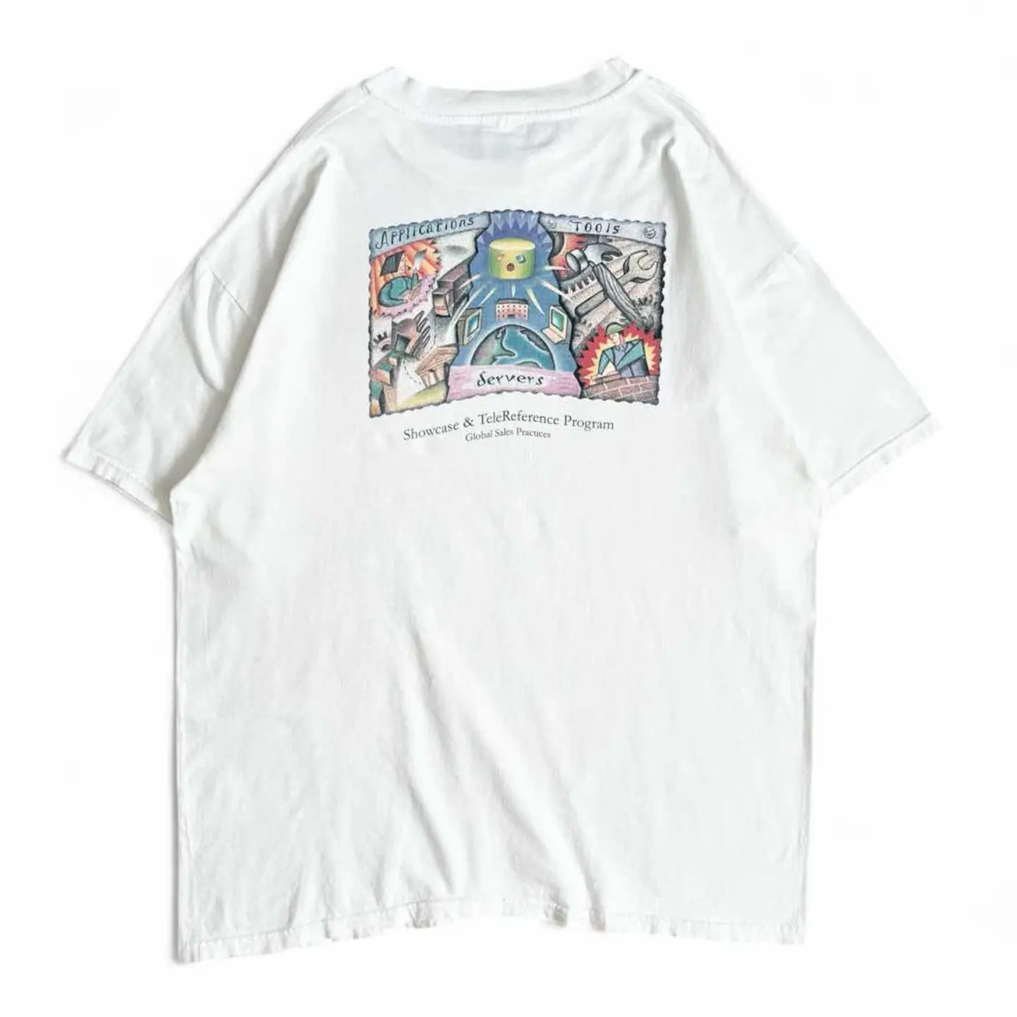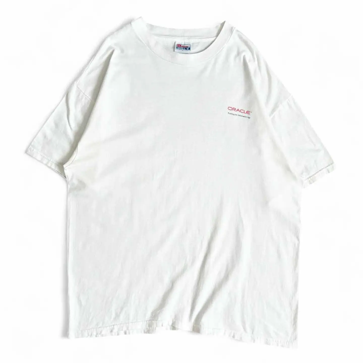 ○商品説明 USA製 Hanes ORACLE アメリカのIT企業になります。 アプリケーション、サーバー、ツールの3つの要素が 連携している様子をデザインしています。 デザインもレトロ感があり◎ 是非。 ○サイズ 表記XL 平置き ・肩幅59cm ・身幅60cm ・袖丈21.5cm ・着丈73cm ○商品の状態B A:使用感がほとんどなく、汚れやシミもなし B:多少使用感はあるが、汚れやシミも少ない C:使用感があり、汚れやシミがある D:使用感があり、大きな汚れや破れあり ○色 ホワイト #USA製#Hanes#ヘインズ#企業#Tシャツ