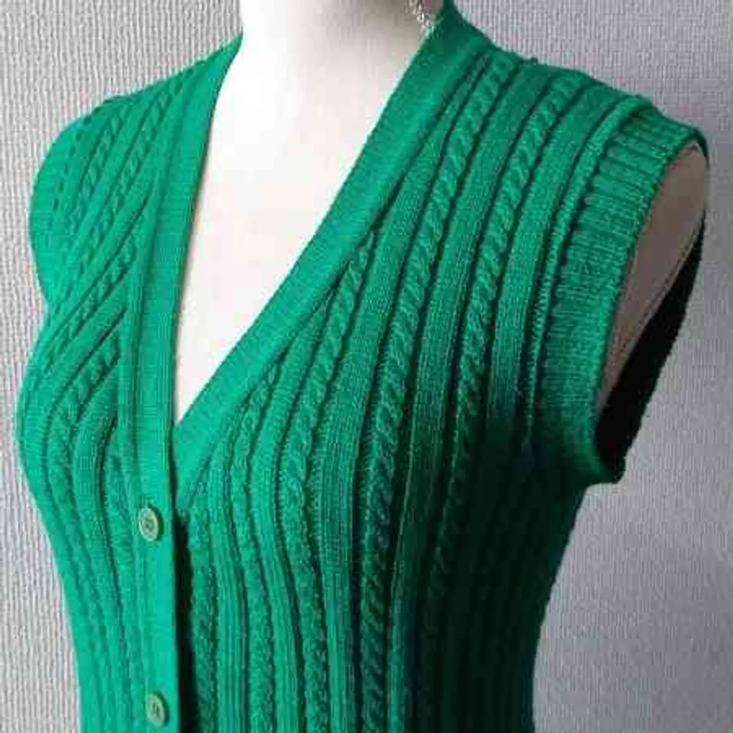 とっても綺麗なグリーンです。 丁寧に編まれた年代物のケーブルニットベスト。 キュッとしたサイズ感がかわいいです。横方向への伸縮性に優れているので身幅の融通がききます。 サイズ・・・レディース 34 (身幅34cm着丈61cm肩幅36cm) ※トルソーサイズ9号 状態:身頃に所々薄汚れがあります(着用時にそこまで目立たないと思います) クリーニング済み カラー・・・グリーン 素材・・・PURE VIRGIN WOOL MADE IN USA 70’s Vintage 70年代ヴィンテージ PENDLETON USA製 ケーブル ニット ベスト グリーン サイズ34 アメリカ製 ※平置きでの採寸の為、多少の誤差が生じる場合がございます。 ※商品写真の色合いは実際の商品と若干異なる場合がございます。 ※ユーズドもしくは、ビンテージ品のため使用感や細かいキズ、汚れがある場合もございますのでご了承ください。