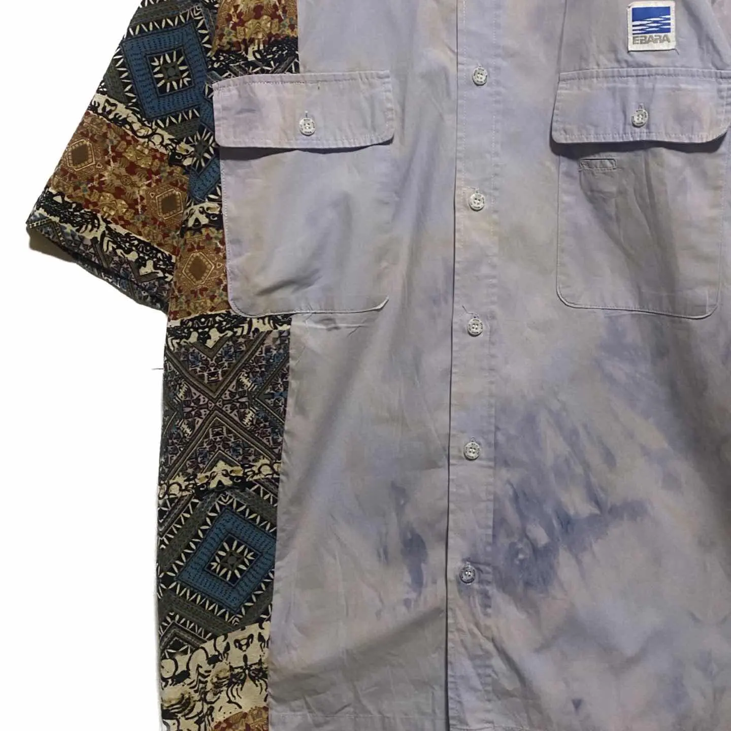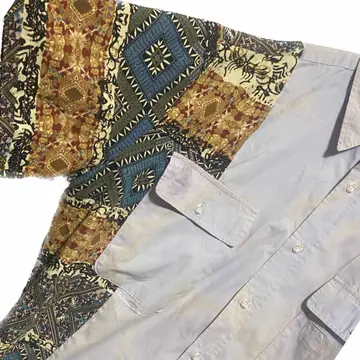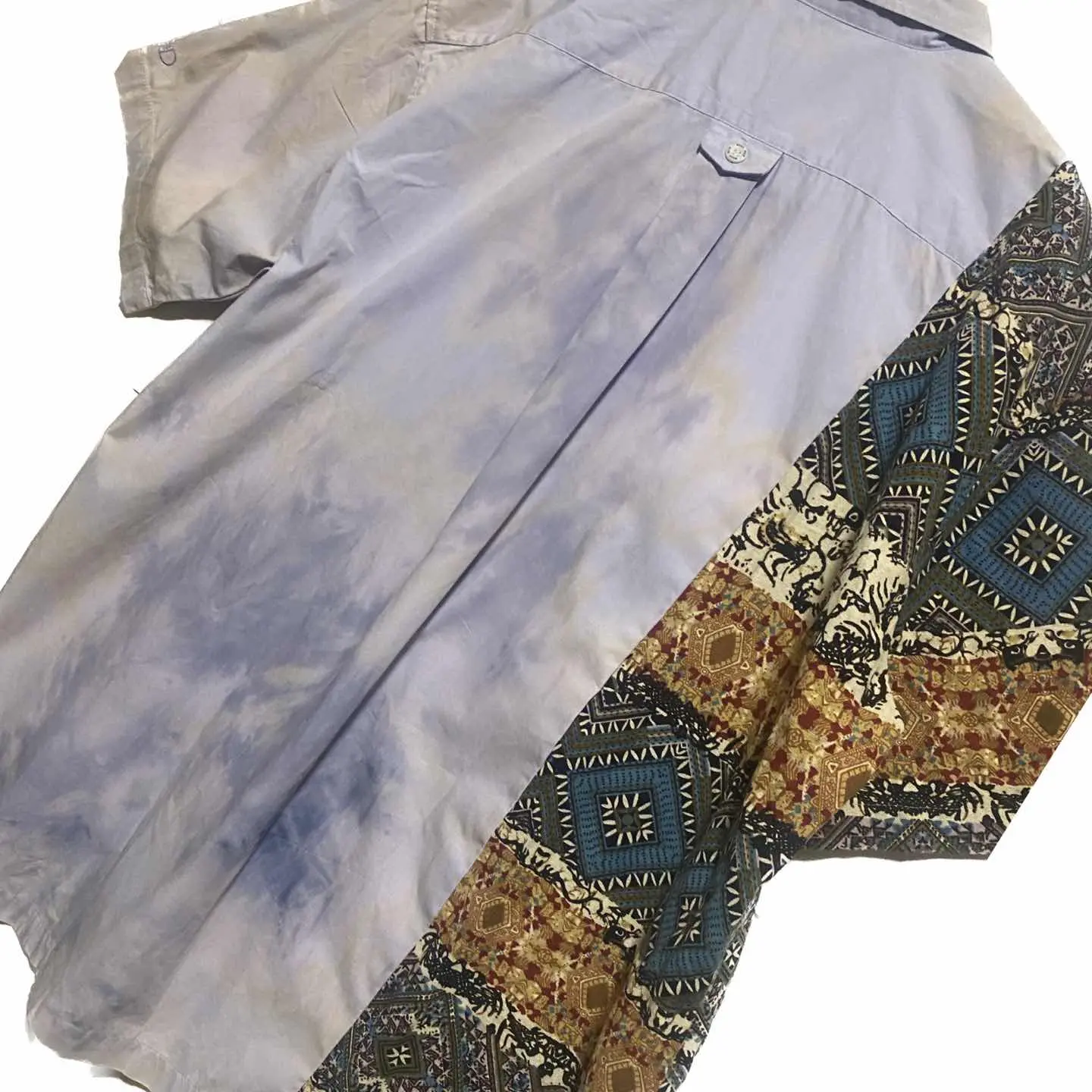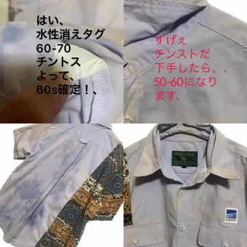 60s 限定モデル チントス 80s suvinドッキングワークシャツリメイク alternative リメイク 型にはまらない、自由に表現するライン、 ちょっぴり背伸びして、良い物、個性あるのに、 着回しが抜群の、何なら年中活躍する 工夫をした、ライン^_^ alternative 少し手間ひまかけたリメイクになります、 YUKIKO HANAI.の、60s limited【ワークシャツ】 企業ものを、まず、染めて、ムラ出しして、 鮮やかなカラーにして、同系色の コットンの王様と言われている、SUVINCOTTON 超高級世界、トップレベルのコットンのエキゾチックシャツを、ドッキングさせました、 シンプル,柄大好き、個性派、アメカジ、ほぼ全てに対応する。マルチプレイヤーの1着となります。vintageをドッキングさせることに織りなされる個性は、圧倒的にあなたの、おしゃれをサポートいたします。保証します。 ぜひこの機会によろしくお願いいたします 【カラー】 朝顔ムラ染めに、超高級フェアアイル柄 【サイズ】XLまで。サイズ上げてます、 着丈80 身幅65 肩幅60 袖丈DSなんで、ハンガーかけ、40 普段Mジャスト170センチの私が、きて、 オーバーサイズ 【素材】 コットンに、何かmixです、肌触りレベルが違います、柄部分はSUVIN cottonの王様 アイロン簡単!!やけない、 【状態】 頑張って作った最高の作りです、 良い!! #リメイク #ノースフェイス #ドッキングシャツ #リメイクシャツ #ネイティブ