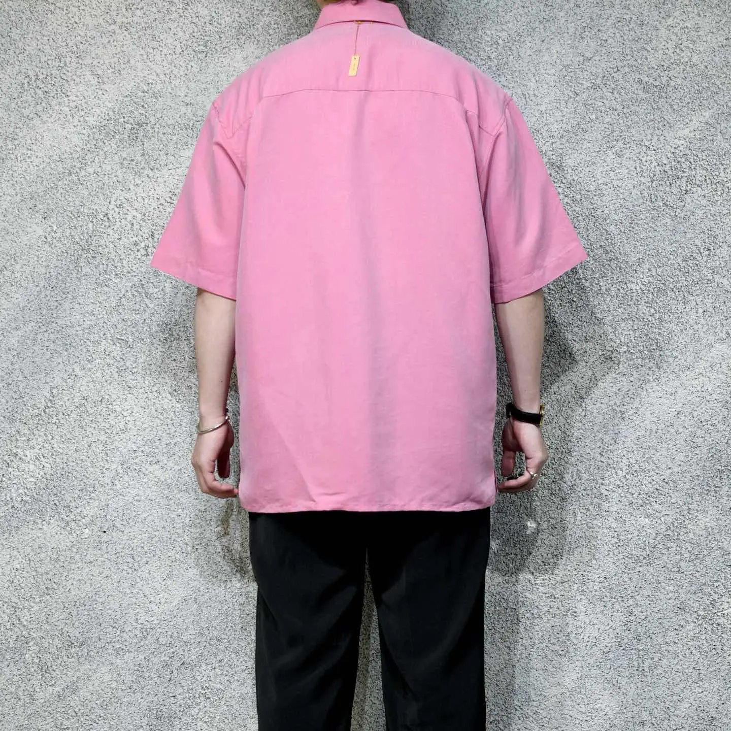 着丈80cm 肩幅56cm 身幅62cm 袖丈28cm fabric/rayon・poly 着用画像 177cm/64kg これをメンズにも提案したいなと感じて 連れて帰った1着。 街行く方を見ても、この色合いをスタイリングへ 落とし込んでいる同性の方は見掛けないなと、、 自分も昔、落とし込みにくい印象を持っていた カラーでしたが、先入観を捨てて 袖を通してみると、意外にもすっと馴染んだのを 覚えています。 しっとりとしたレーヨン特有の肌触りの良さと、 比翼留めタイプのボタンダウン。 カラーだけでなく、質の良い生地感と品のある ディテール。 まずは程よくこのシャツの色を映えさせてくれる、 黒スラックスと合わせてみてはどうでしょう。 ※撮影状況により、実物と多少色が異なる場合が ございます。 ※古着を取り扱っているため、気づかない汚れや ほつれ等がある場合がございます。 予めご了承ください。 ※サイズは着用感で選んでおり、表記サイズではございません。 古着 オーバーサイズ old vintage ヴィンテージ used 80's 90's アメリカ古着 ユーロ古着 メンズ レディース POLO RALPH LAUREN Eddie Bauer OLD GAP Eddie Bauer LANDS' END ランズエンド LLBean エルエルビーン オールドギャップ エディーバウアー ラルフローレン ブルックスブラザーズ Brooks Brothers デザインシャツ #BDシャツ などがお好きな方 #vintage #オーバーサイズ #old #used #90s #80s #古着 #ヴィンテージ #アメリカ古着 #ユーロ古着 #古着男子 #古着女子 #LLBean #エルエルビーン #EddieBauer #エディーバウアー #oldgap #オールドギャップ #LANDSEND #ランズエンド #NAUTICA #ノーティカ #ラルフローレン #POLORALPHLAUREN #ブルックスブラザーズ #BrooksBrothers #半袖シャツ #デザインシャツ #ボタンダウンシャツ #BDシャツ #レーヨンシャツ