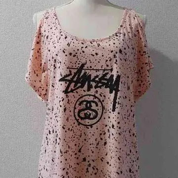 STUSSY 総柄 ロゴプリント オフショルダー Tシャツ ピンク M