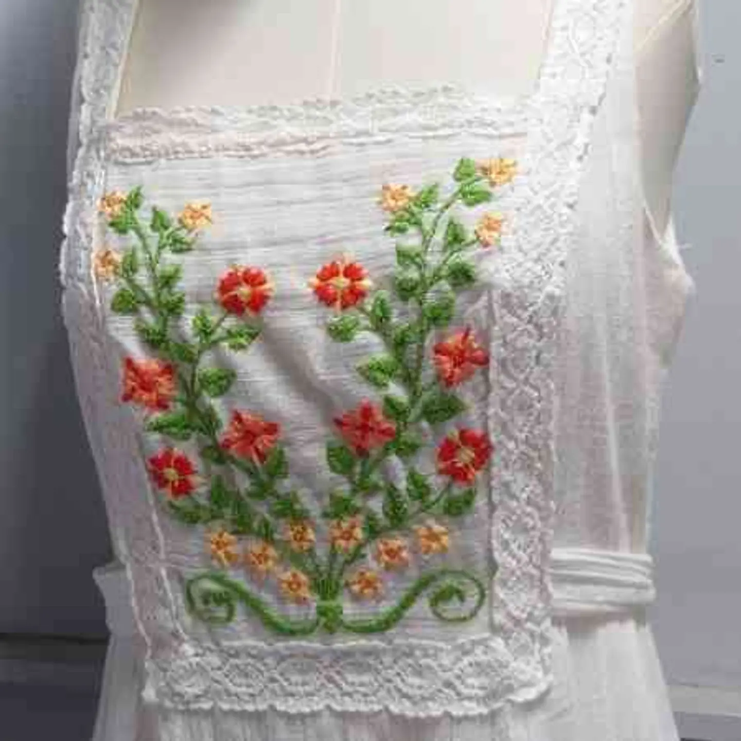 すっごいかわいいヴィンテージワンピースです。 もう生地感からスゴくよくて、少し透け感のあるガーゼみたいな感じです。風通しよくて真夏もきっと快適。 花柄の刺繍にレース使い、ウエスト周りのデザインも最高です。とてもオススメ。 サイズ・・・レディース 11 (身幅41cm総丈119cm肩幅33cm) ※トルソーサイズ9号 状態:多少の使用感はありますが、目立った汚れなどなく良好です。 クリーニング済み カラー・・・ホワイト 素材・・・POLYESTER 57% COTTON 43% 70’s Vintage 70年代ヴィンテージ Rags by Kressandra San Francisco 花柄刺繍 ワンピース サイズ11 WISPジップ ※平置きでの採寸の為、多少の誤差が生じる場合がございます。 ※商品写真の色合いは実際の商品と若干異なる場合がございます。 ※ユーズドもしくは、ビンテージ品のため使用感や細かいキズ、汚れがある場合もございますのでご了承ください。