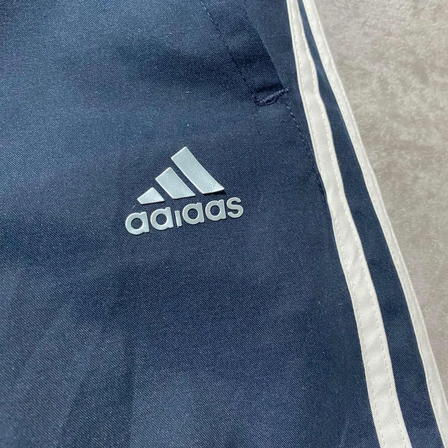 00s アディダス 刺繍パフォーマンスロゴ グレー ナイロン トラックパンツ