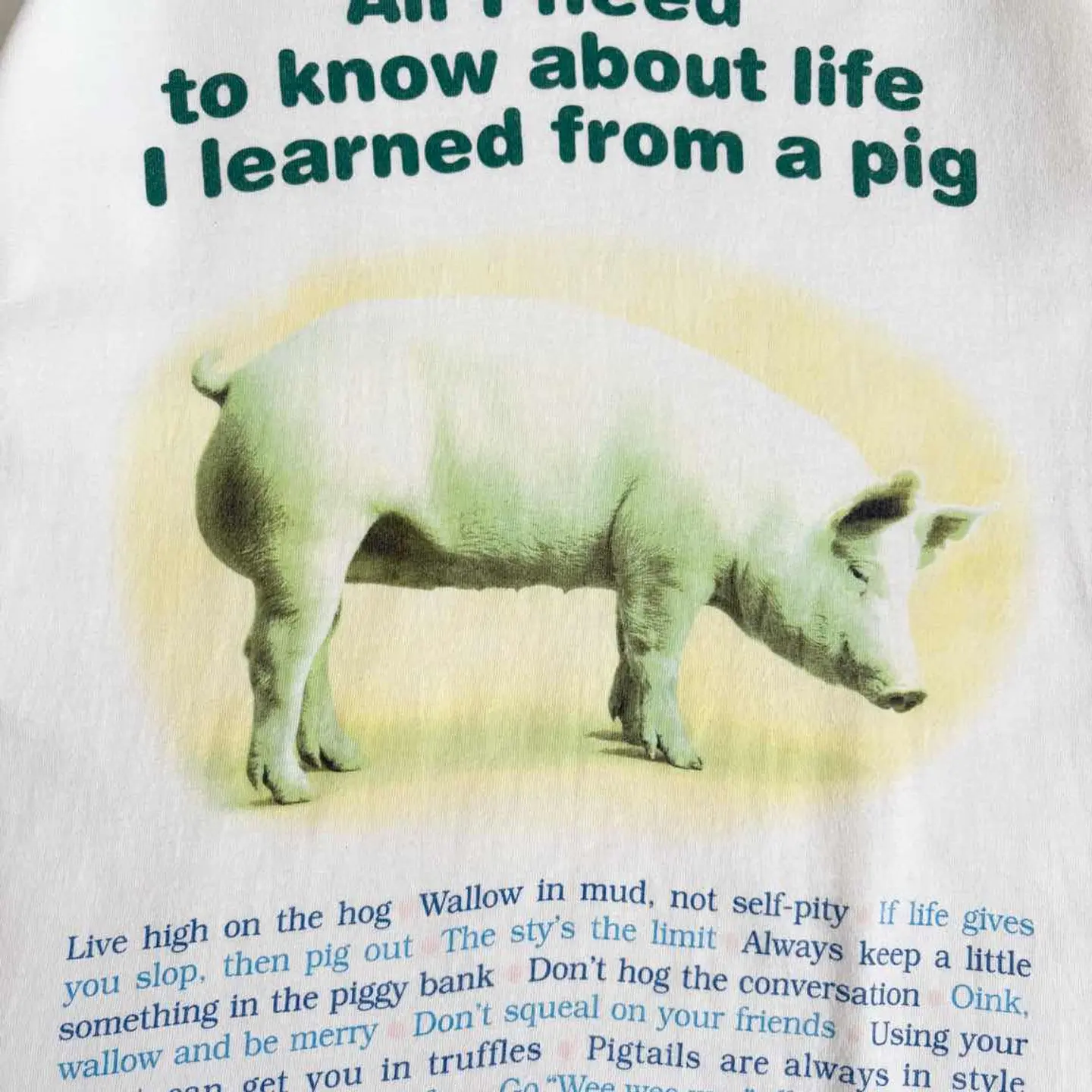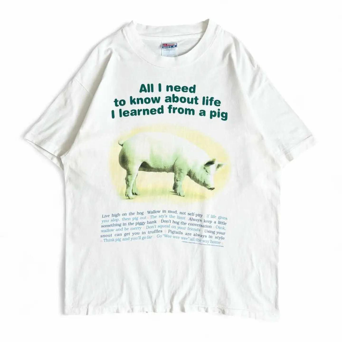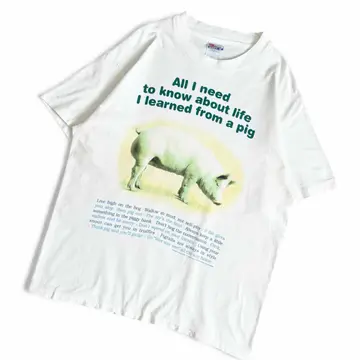 ○商品説明 90s USA製 Hanes ブタと人生の教訓がテーマのTシャツになります。 All I need to know about life I learned from a pig 人生について知るべきことはすべて、ブタから学んだ ブタがブーブーゆうてます笑 ユーモラスなイラストと、動物の生態になぞらえた人生のヒントを組み合わせた洒落たデザインです。 是非。 ○サイズ 表記L 平置き ・肩幅51.5cm ・身幅55cm ・袖丈19cm ・着丈67.5cm ○商品の状態B A:使用感がほとんどなく、汚れやシミもなし B:多少使用感はあるが、汚れやシミも少ない C:使用感があり、汚れやシミがある D:使用感があり、大きな汚れや破れあり ○色 ホワイト #90s#USA製#Hanes#ヘインズ#pig#ブタ#Tシャツ