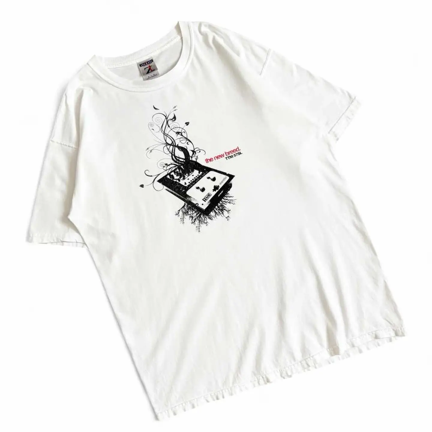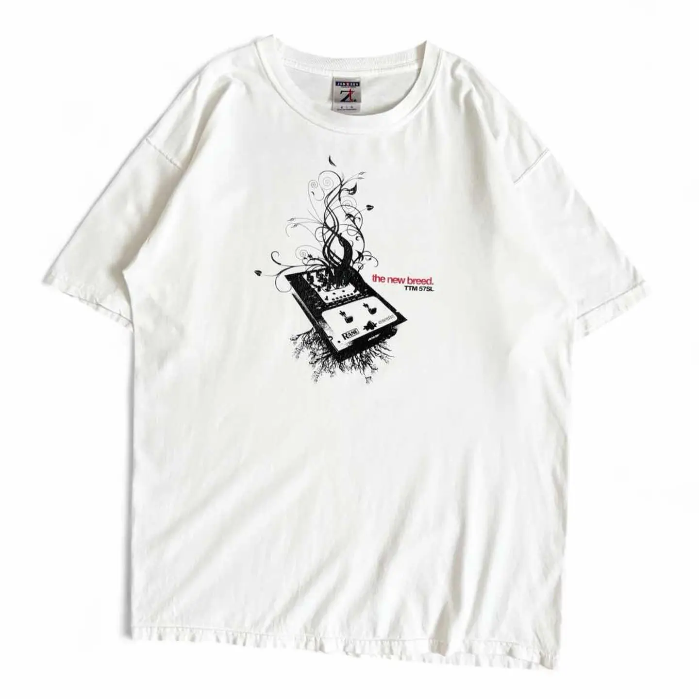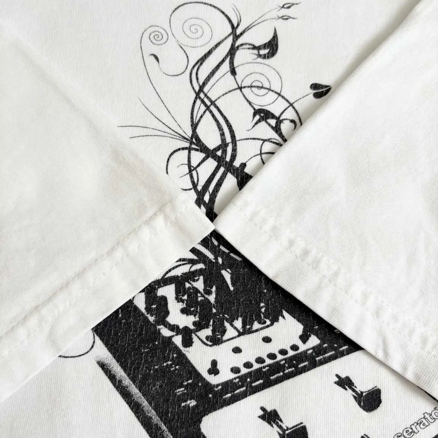 ○商品説明 JERZEES デザインが面白い一枚です。 DJ機材から植物のような根やツルが伸びる グラフィックが広がり、音楽が自然に根付いていく様子を象徴的に表現しています。 気になった方は是非。 ○サイズ 表記L 平置き ・肩幅55cm ・身幅56cm ・袖丈21cm ・着丈71cm ○商品の状態B A:使用感がほとんどなく、汚れやシミもなし B:多少使用感はあるが、汚れやシミも少ない C:使用感があり、汚れやシミがある D:使用感があり、大きな汚れや破れあり ○色 ホワイト #JERZEES#ジャージーズ#DJ#Tシャツ