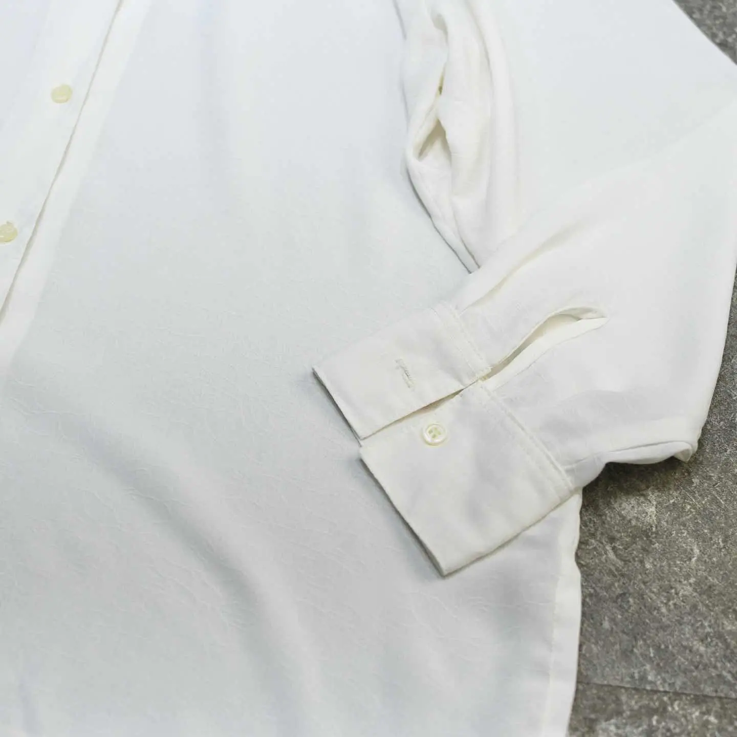 着丈77cm 肩幅44cm 身幅62cm 袖丈60cm fabric/poly made in Australia 着用画像 177cm/64kg 涼しく、カジュアルにならず上品な雰囲気を 纏うことが出来るシアーシャツ。 また単色でありながら、"織り"で柄が 表現されており、程よく個性も持ち合わせた 逸品です。 Tシャツのプリントを透けさせても着ても、 一枚でさらっと着ても◎ ※撮影状況により、実物と多少色が異なる場合が ございます。 ※古着を取り扱っているため、気づかない汚れや ほつれ等がある場合がございます。 予めご了承ください。 ※サイズは着用感で選んでおり、表記サイズではございません。 古着 オーバーサイズ old vintage ヴィンテージ used 80's 90's アメリカ古着 ユーロ古着 メンズ レディース POLO RALPH LAUREN Eddie Bauer OLD GAP Eddie Bauer LANDS' END ランズエンド LLBean エルエルビーン オールドギャップ エディーバウアー ラルフローレン ブルックスブラザーズ Brooks Brothers ホワイト 白 ドレスシャツ 長袖シャツ 柄シャツ 総柄シャツ などがお好きな方 #vintage #オーバーサイズ #old #used #90s #80s #古着 #ヴィンテージ #アメリカ古着 #ユーロ古着 #古着男子 #古着女子 #LLBean #エルエルビーン #EddieBauer #エディーバウアー #oldgap #オールドギャップ #LANDSEND #ランズエンド #NAUTICA #ノーティカ #ラルフローレン #POLORALPHLAUREN #ブルックスブラザーズ #BrooksBrothers #ドレスシャツ #シャツ #長袖シャツ #シアーシャツ #デザインシャツ #柄シャツ #総柄シャツ
