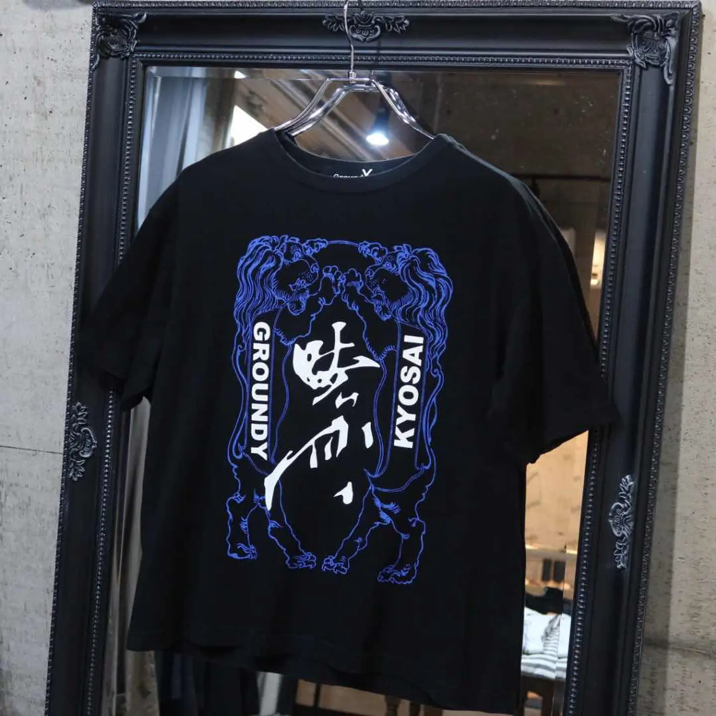【商品名】 Ground Y 『KYOSAI』T-shirts 【アイテムについて】 19世紀、茨城県古河市出身の浮世絵師『河鍋暁斎』とのコラボプリントがされたグラウンド ワイのTシャツ。 同郷の人間として、ルーツにもつながる1着です。 シルエットはかなり単丈となりますので足長効果ありかと。モノトーンコーデに、青の差し色としてかっこいいと思います。 【サイズ】 肩幅 : 53 着丈 : 58 袖丈 : 20 身幅 : 53 【素材】 【コンディション】 傷や汚れはございません。 #古着 #ブランド古着 #プリントtシャツ #tシャツ