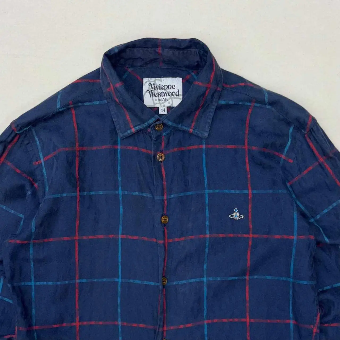 【サイズ表記】 44 【サイズ(cm)】 肩幅 46 袖丈 61.5 裄丈 86 袖口(平置) 10 腕周(平置) 18.5 着丈 70 身幅(脇下) 49 【商品詳細】 生産国 : japan ブランド: vivienne westwood カラー : ネイビー 素材 : 100%cotton 【コンディション】 B-C(背面にヤケ有) 【S】新品、展示品、デットストックなど 【A】使用感少なく、状態の良いUSED 【B】使用感あるが、目立つダメージや大きな汚れは無い。 【C】使用感と部分的にダメージや汚れ有り。 【D】使用感があり、大きなダメージや汚れ有り。 ※古着故、多少の着用感や細かい汚れがございます。古着に理解のない方のご購入はお控えいただけると幸いです。 また、撮影状況により色味に若干の差異が生じる事がございます。 【その他】 こちらの商品は古着商品となります。 全て1点のみの在庫となります、ご注意ください。