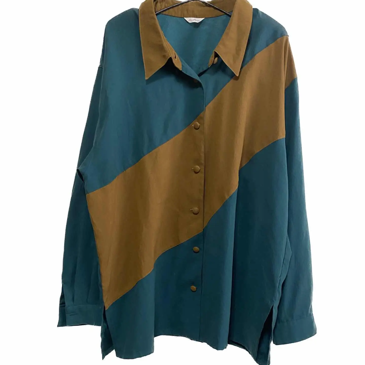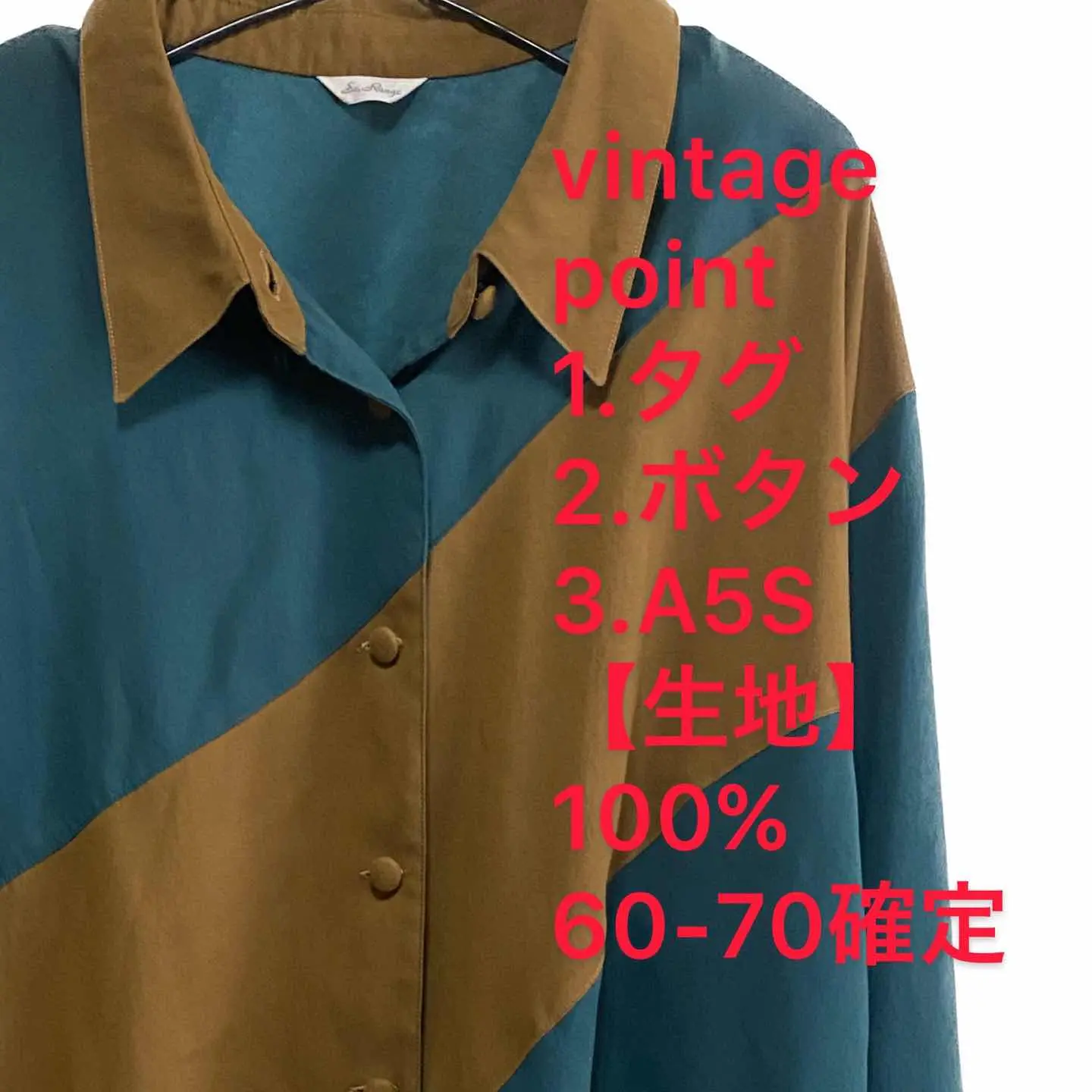 70s vintage like new A5S diagonal Switch L/S shirt ぜいたくな商品が到着いたしました A5S超高級素材を惜しみなく、diagonal Switch といわれる、斜めに、Switch切り替えする、半端ない、高級感を、見せる一着 ヴィンテージポインタ全て画像に明記してますが 70年代ヴィンテージで、ここまで美品なのは、確実に、市場にはなかなかでもあり 独特のオーバーサイズが年中活躍しますし、着心地もさらっとしていてかなり気持ちいいです。 フロントだけでとことん見せつけるデザインなので、前閉めてもかっこいいのですが、 前開けの場合は、少し工夫して、トレンドのスポーツミックス等と混ぜ合わせても、かなりこなれた感じに、決まりますので 参考になりましたら、ぜひゲット下さい、 質がよい、シャツは、一着あると、 気分も上がりますし、大人っぽく決まるのは、 保証いたします^_^ ▷color◁ A5Sの、独特の光沢あるダークビリジアンに、 ブラウン系、写真とことん実物に近いので、参考に ▷size◁ 平置き片面採寸【㎝表記】 表記size フリー位 着丈/77 身幅/65 肩幅/60 袖丈 /65 袖ボタンあるんで、手の長さ関係なし DSは袖はハンガー採寸 ※多少の誤差は理解下さい モデル170センチ 普通体型 【参考例TシャツMがジャストくらい】 私が、着用してゆるだぼビックサイズ 【素材】 A5S最高級素材、SILKのシワなる、アイロンできない、って悩みある方いますよね?それ、A3とか、下のレベルだから、なんです、A5Sは、シワならない、アイロンいらない、洗濯機丸投げOKです、 【状態】 綺麗です、 検品、洗濯、検品で、3回チェックして発送しますので、ご安心して、お買い求め下さい!!