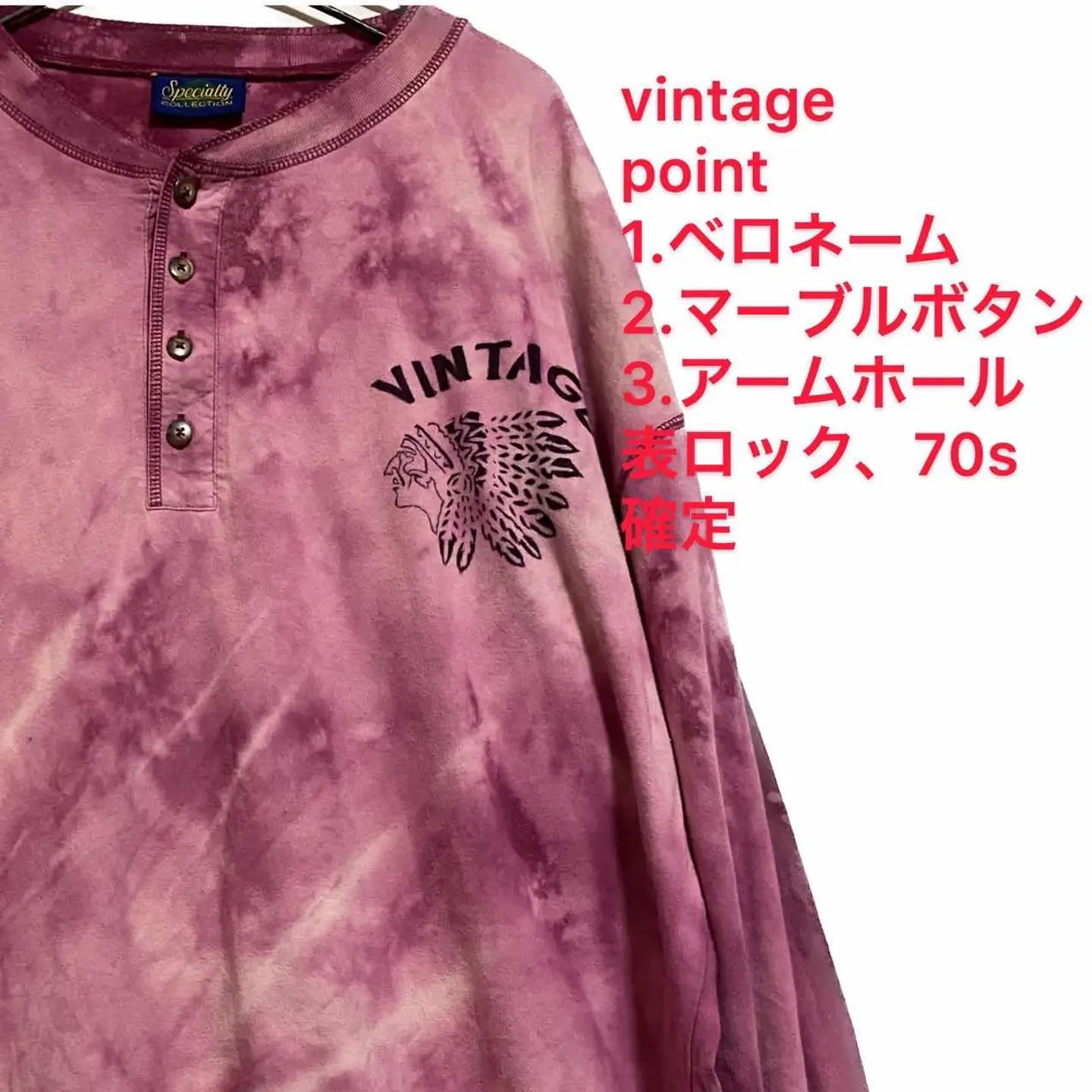 70s usamade remake Henry neck 65/35T F インディアン 70年代のリメイク商品、アメリカ製使用、インディアンアート・フレアバースト 染め上げて フレアバースト、左下から、右上に向けて、 【太陽フレア】のように、爆破するような技法!! 施し、胸に、アメカジらしい オリジナルインディアンを、アートした、世界に一つの ヘンリーネック、完成、 70年代のヴィンテージアイテムは、独特の雰囲気を持っており、その個性的なシルエットに、素材は、他の追撃を許さないレベル、しかもUSA製だから、圧倒的キングサイズは、あなたのお洒落を 格上げします。着回しを考慮するなら、確実にビックサイズ一択なのは、お伝えしときます。 だから、オーバーサイズは、お洒落から、衰退しないんです。 ✔️特筆Point 使ったボディが半端ない 1.specialty collction 使用、量産一切ない.oneoff collectionは、ショーなどを示す 2.巻き刺繍、60-70USA 確定、控えめに 70と言ってます。 3.表ロック打ち ダメージくらいやすい、アムホールを補強 4.H 65/35. 使用、ハイパー高級混合綿 ラストコーデ着回し抜群、寧ろ合わないアイテムはない、です、 【カラー】 エンジ系にフレアバースト壁掛けが、実物 着画は、光都合ありますが、座り画が、近い、 参考に、 ▷size◁ 平置き片面採寸【㎝表記】 表記size F. 着丈84 身幅72 肩幅74DS 袖丈70DSハンガーから、採寸です、 リブあるんで、関係ないです、着画 立ち画リブで、袖5分風に片方とめてます。年中活躍65/35なんで、 ※多少の誤差はご容赦下さい 【着用画像データ】 身長170㎝ Mジャストの私が着用でかなり ゆるだぼ ▷material 65/35 混合綿だが、H65/35という、半端ない 奴、1mm厚、で、タフなら、文句なし!! 年中活躍 ▷condition◁ 状態良い、 ※入念にチェックは、しておりますが、vintage/usedの商品の為ご理解下さい、 #リメイク #タイダイ #インディアン #アメリカ古着 #アメリカ製 #ビンテージ