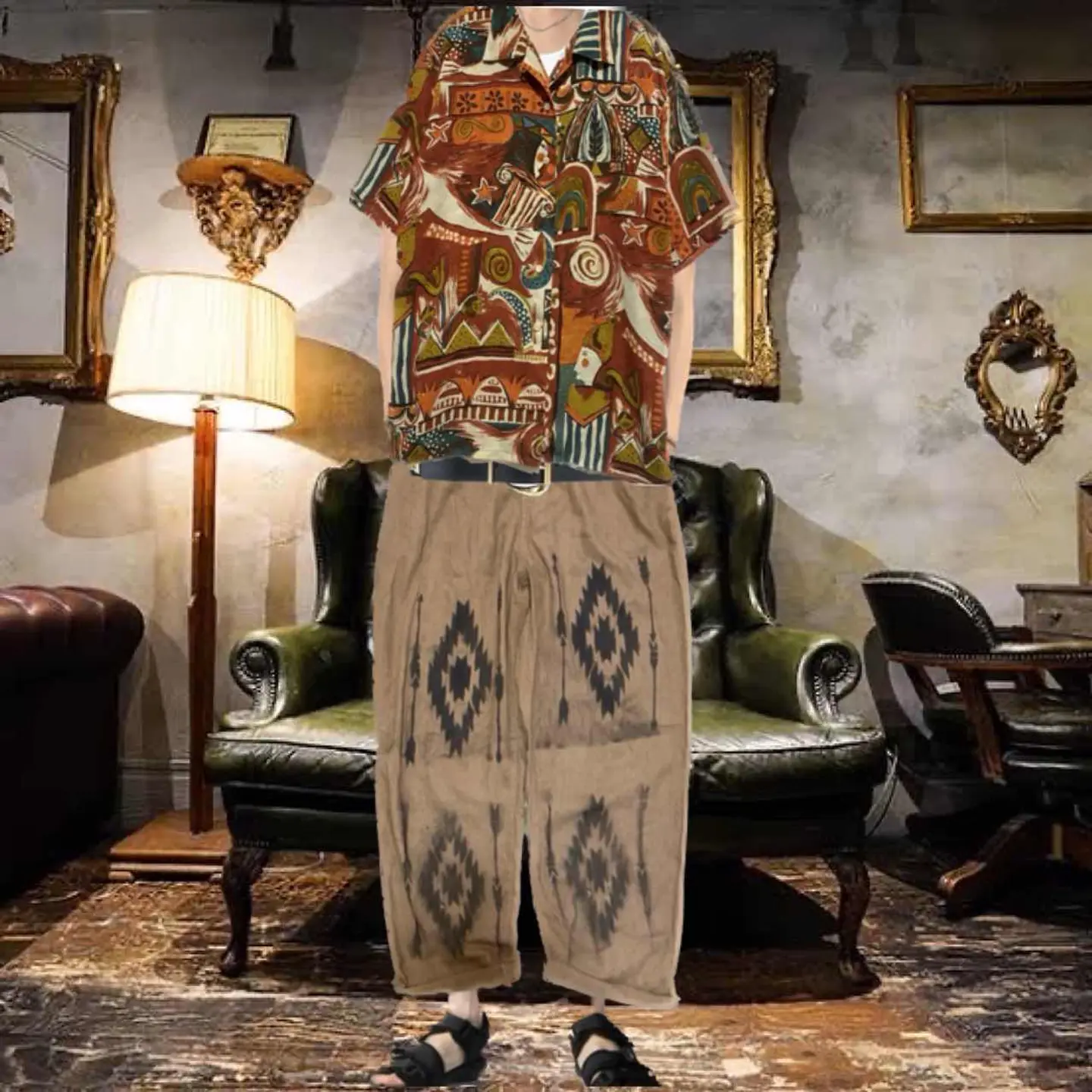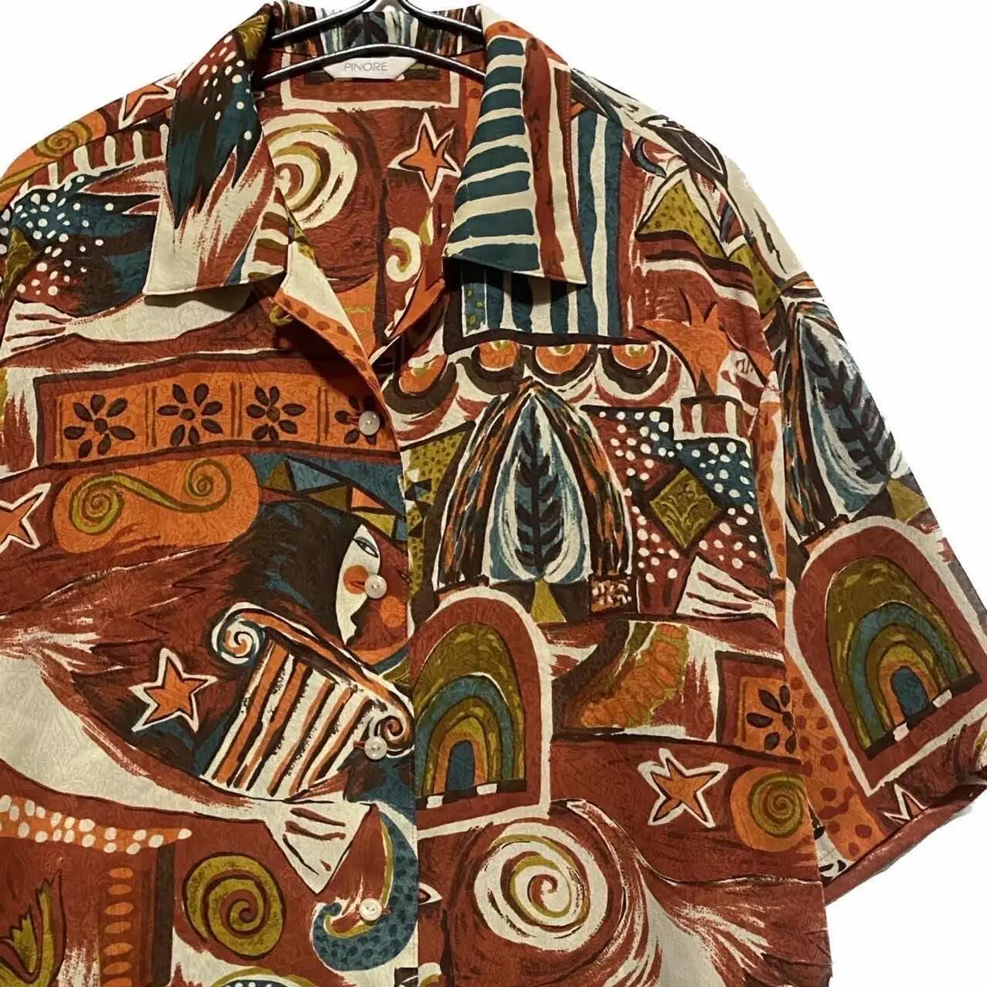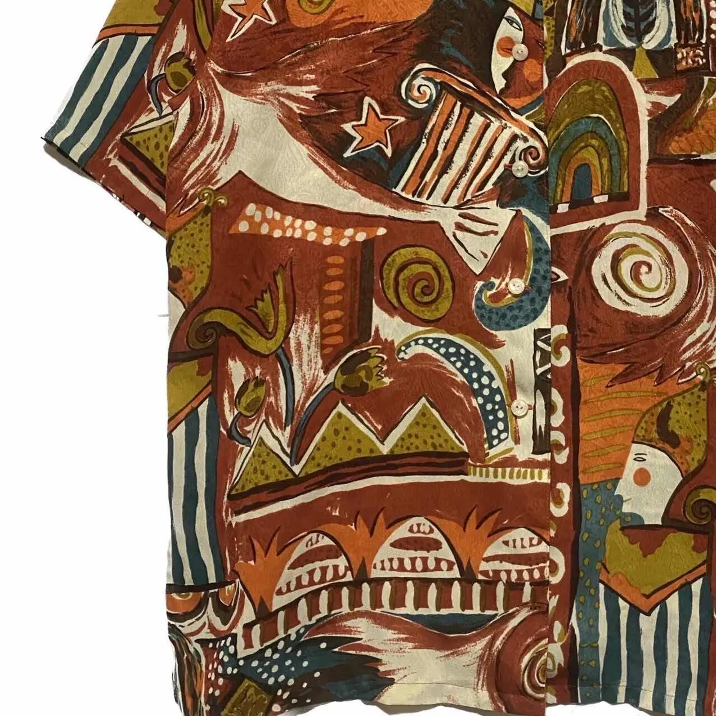 60-70s 生地メーカー限定モデル キュビズム ピカソアート 総柄シャツ 【正式名称】 60-70vintgematerial companylimited シャツXL キュビズム【ピカソアート】ともいいます。タッチが、ピカソのタッチの正式名称は、キュビズム 個性的で大人気の柄!! material company生地会社 limited限定5着しかつくらなかった、メテオレアな、一着入荷!!Vタグ美品!当店以外入手不可です。 柄シャツは、1着あるだけで、圧倒的な個性とファッションセンスを見せつけるマストアイテムです きっとあなたのセンスは、この1着で、爆上がりする事でしょう しかも、60-70で、美品なら、お宝発見間違い無し ▷color◁ 総柄写真参照テラコッタに属します、 ※お使いのブラウザにより、色が異なって見える場合がございます、 ▷size◁ 平置き片面採寸【㎝表記】 表記sizeXL 位 人によります。 着丈70 身幅60 肩幅54 袖丈30DSのため肩落ちから採寸 ※多少の誤差はご容赦下さい 【着用画像データ】 身長170㎝ Mジャストの私がゆったり着れます参考に!! ▷material◁ materialメーカーが作ったアンティークポリ 現代塗料ないので、作れないのと、このプリンのりは、現代の生地では、絶対できません、アンティークポリ自体が廃盤なんで ▷condition◁ 美品、これ、限定5着ない、 premierです、美品では絶対手にはいりません、当店限定です。 割引は、自己紹介にらあります、コメント無視する方には、絶対譲りません、