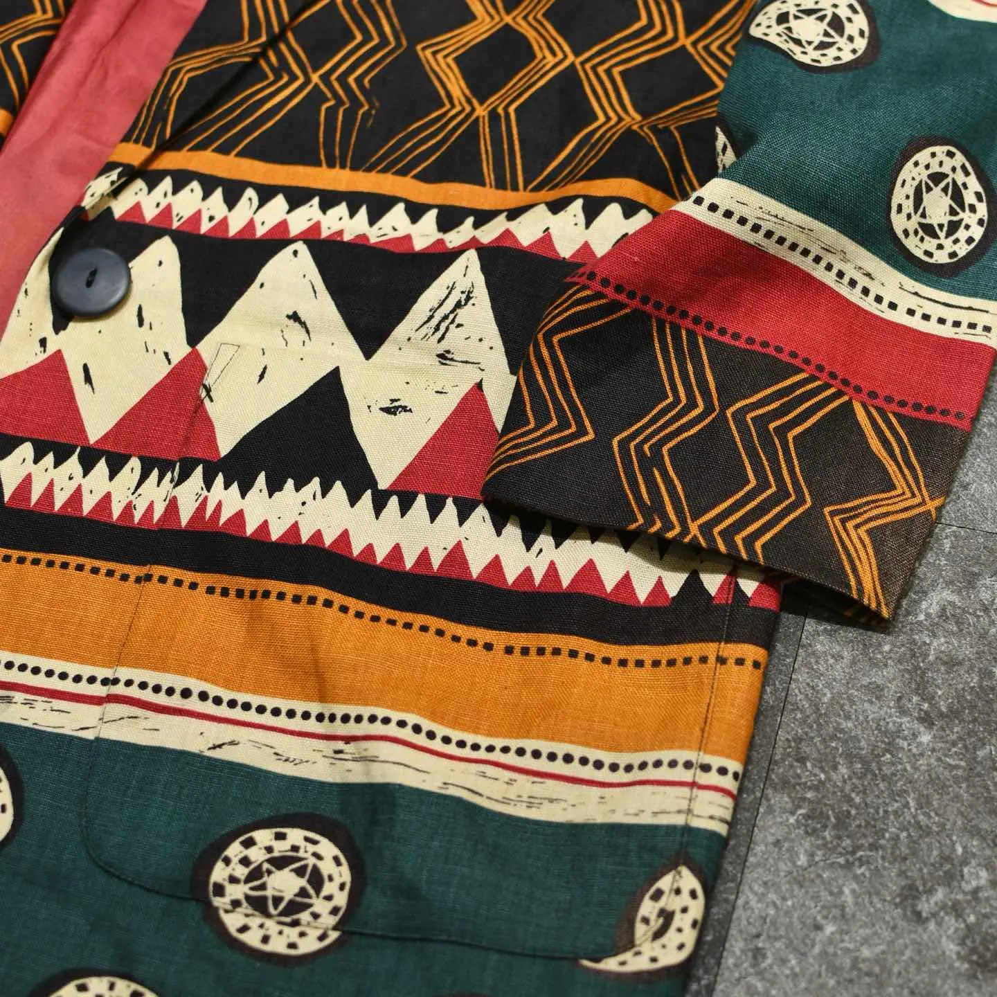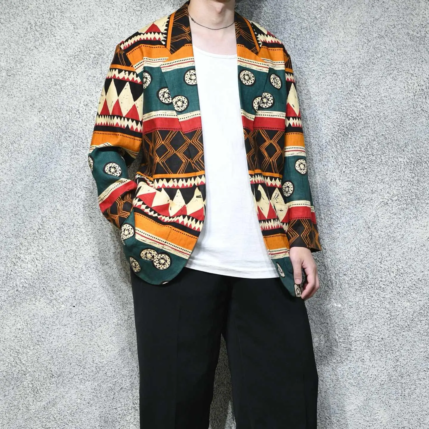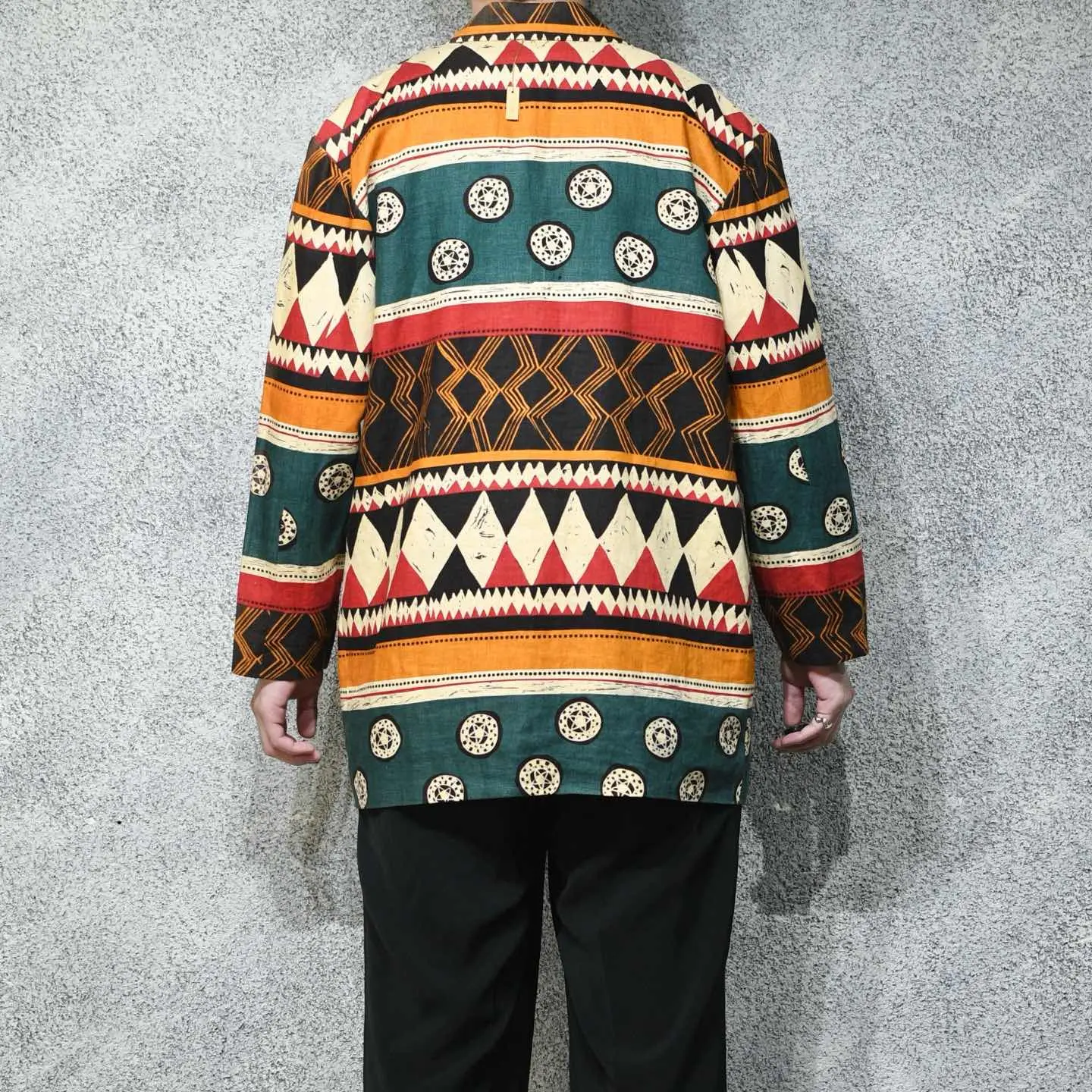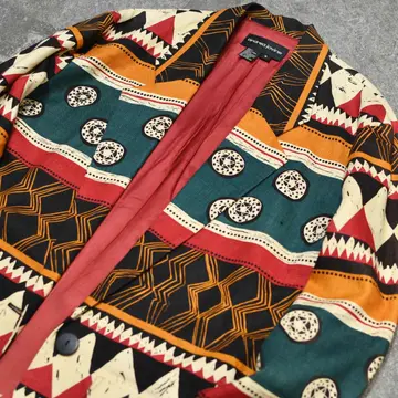 SIZE:8 着丈82cm 肩幅50cm 身幅58cm 袖丈56cm fabric/linen 着用画像 177cm/64kg ”Andrea Jovine” アメリカNY発のブランドで、リネンやシルク等の 天然素材に大胆な柄や色使い、 というこのブランドらしい1着。 どこか民族調な柄でありながら、 光沢の無いリネンだからこそ袖を通すと、 スッと馴染むのではないでしょうか。 インナーはシャツでかっちりとしても、 ラフにTシャツやタンクトップでも 上手く抜けが出て◎ ※裏地にダメージあり。 ※撮影状況により、実物と多少色が異なる場合が ございます。 ※古着を取り扱っているため、気づかない汚れや ほつれ等がある場合がございます。 予めご了承ください。 ※サイズは着用感で選んでおり、 表記サイズではございません。 表記サイズは説明欄の最初に記載しております。 古着 オーバーサイズ old vintage ヴィンテージ used 80's 90's アメリカ古着 ユーロ古着 メンズ レディース POLO RALPH LAUREN Eddie Bauer OLD GAP Eddie Bauer LANDS' END ランズエンド LLBean エルエルビーン オールドギャップ エディーバウアー ラルフローレン ブルックスブラザーズ Brooks Brothers 赤 ブラック レッド 赤 緑 グリーン 生成り 白 ホワイト リネンジャケット 民族 羽織り などがお好きな方 #vintage #オーバーサイズ #old #used #90s #80s #古着 #ヴィンテージ #アメリカ古着 #ユーロ古着 #古着男子 #古着女子 #LLBean #エルエルビーン #EddieBauer #エディーバウアー #oldgap #オールドギャップ #LANDSEND #ランズエンド #NAUTICA #ノーティカ #ラルフローレン #POLORALPHLAUREN #ブルックスブラザーズ #BrooksBrothers #リネンジャケット #テーラードジャケット #民族 #エスニック #ジャケット #総柄 #柄 #羽織り