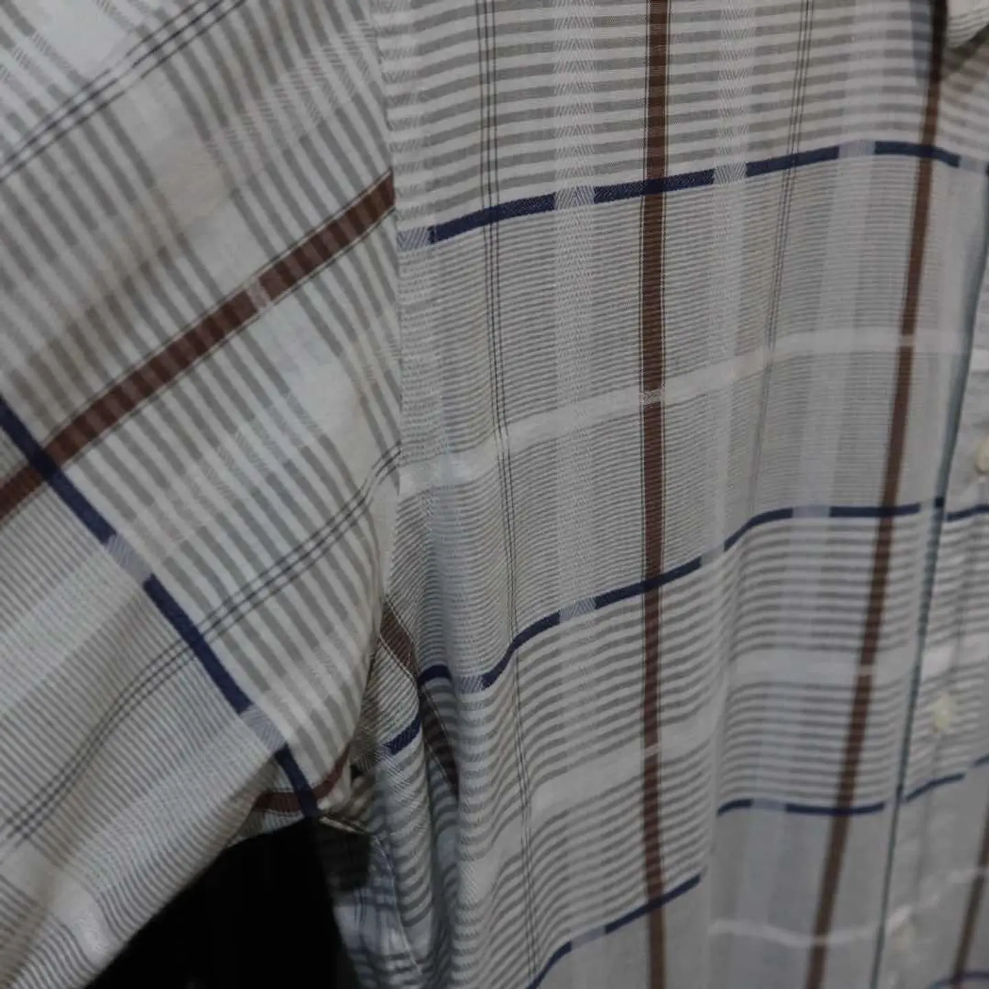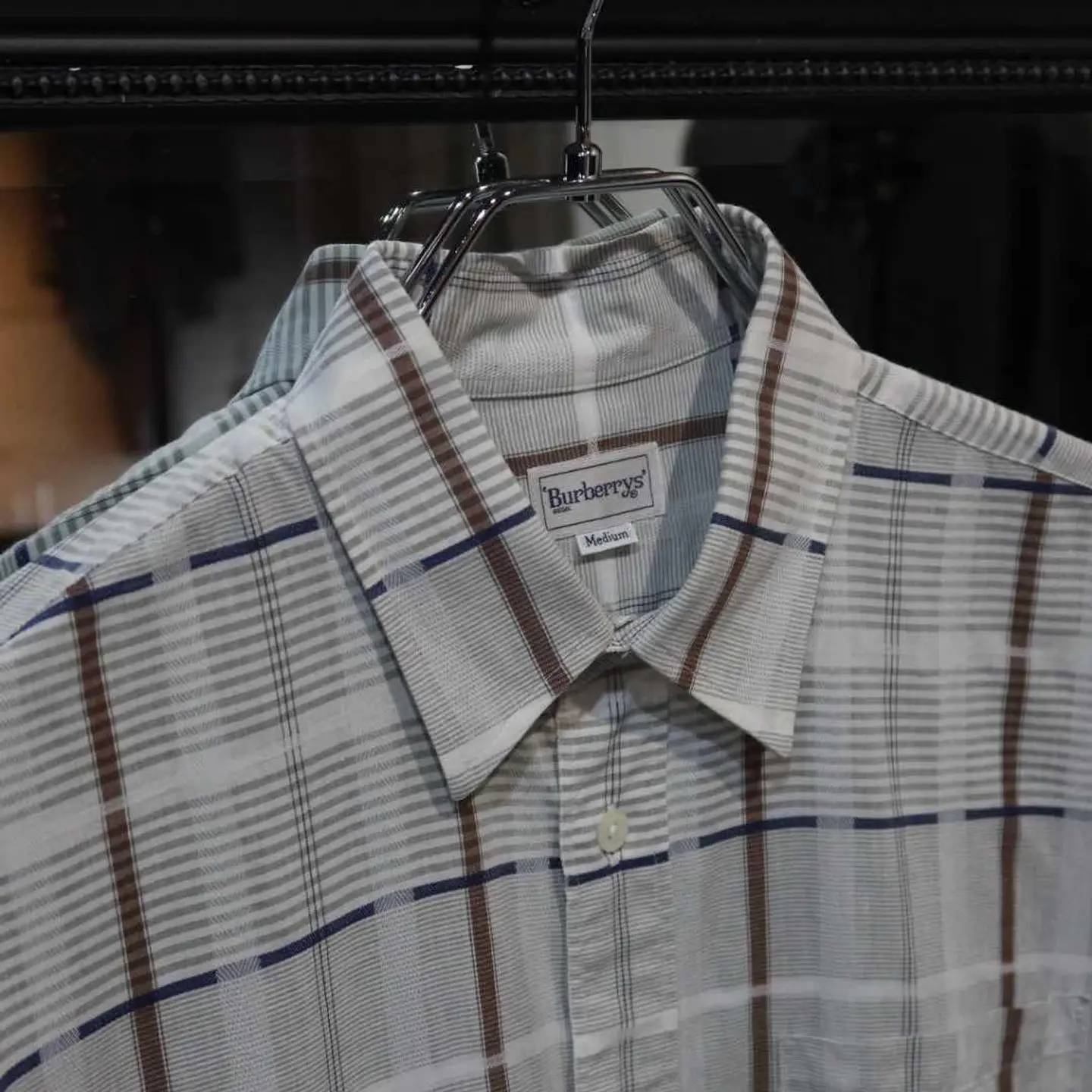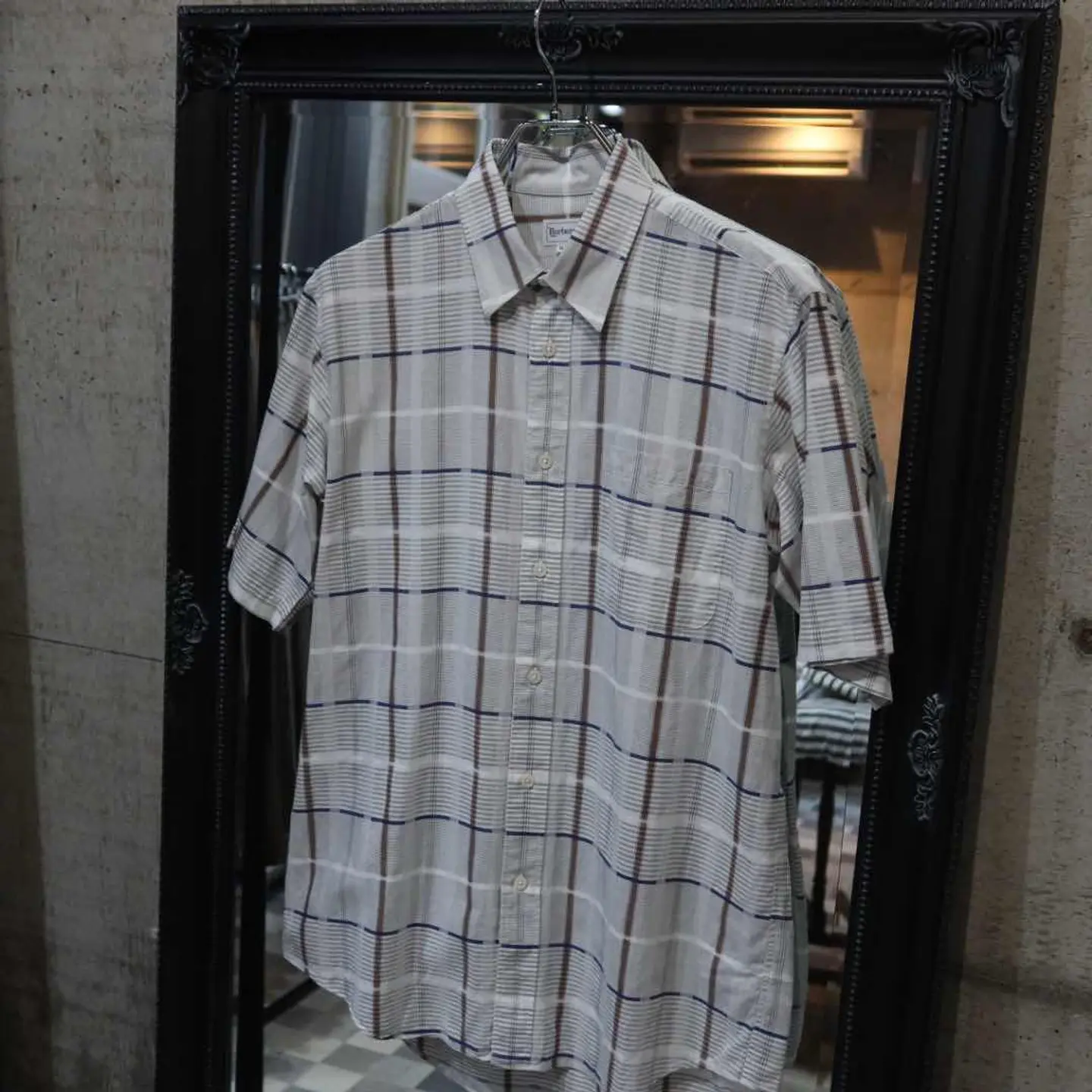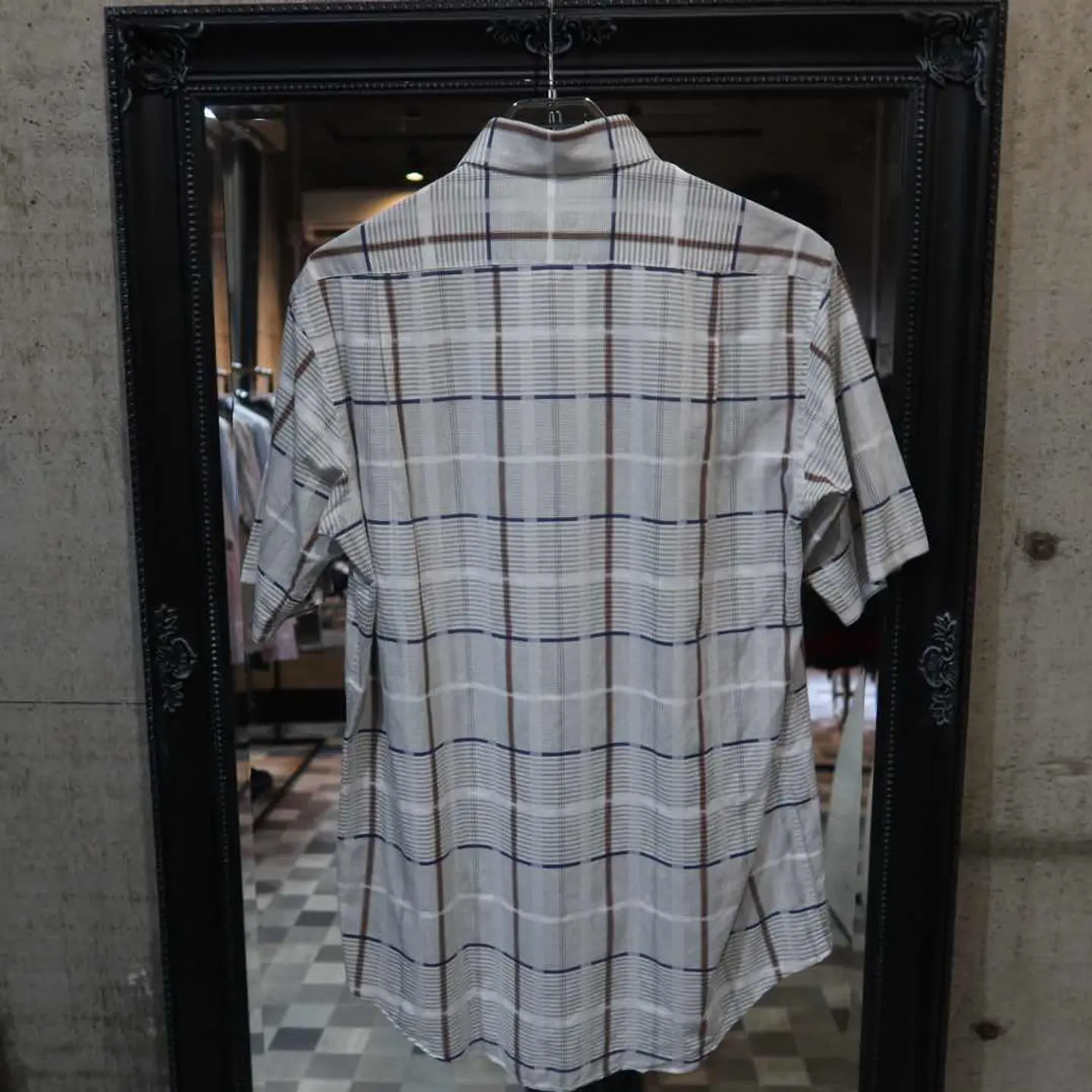 【商品名】 〜90's Burberry Gray Shirts 【アイテムについて】 90年代頃のバーバリー 緑が掛かったグレーのチェックシャツです。 チェックには茶色・ネイビーを含んでいます。 落ち着いた印象を与えますが、デザイン感のある特殊なチェックが良いアクセントです。 【サイズ】 肩幅 : 43 着丈 : 78 袖丈 : 27 身幅 : 54 【素材】 【コンディション】 傷や汚れはございません。 #古着 #半袖シャツ #シャツ #チェックシャツ