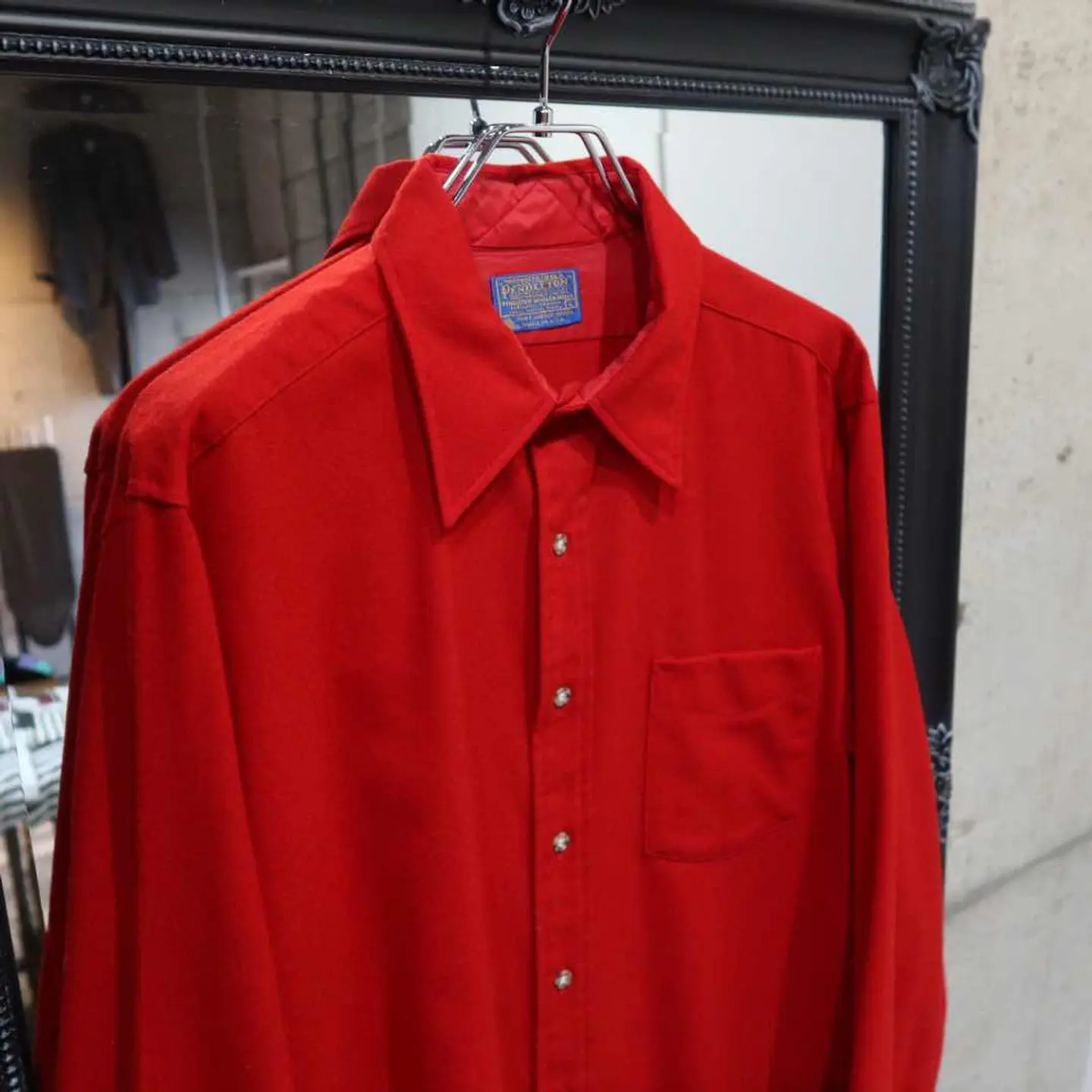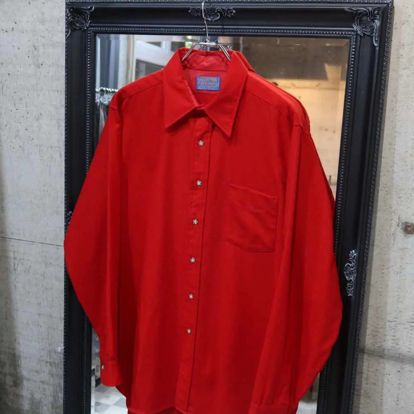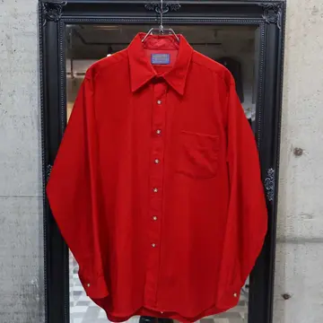 【商品名】 70's PENDLETON Wool shirt 【アイテムについて】 ウールの有力ブランド、ペンドルトンのウールシャツです。 ウールシャツということで、独特のフワッとしたした質感が秋冬に向いています。 肌触りは素肌ではおすすめできない程度にチクっとします。 シンプルに黒のスラックスと合わせてかっこいい。 デニムに合わせてかっこいい、赤のシャツです。 【サイズ】 肩幅 : 48 着丈 : 83 袖丈 : 63 身幅 : 60 【素材】 ウール 【コンディション】 胸ポケット付近に汚れがございます。 #古着 #冬服 #ウール #70s