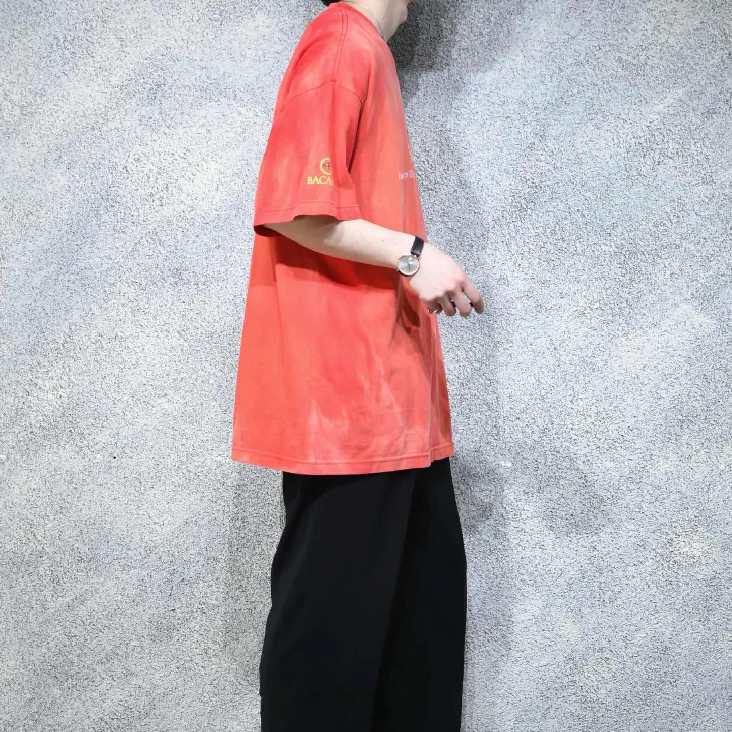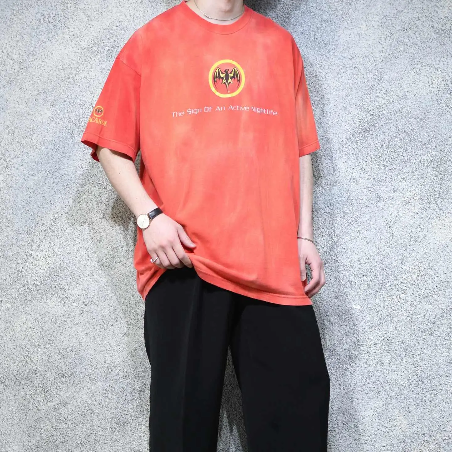 着丈79cm 肩幅63cm 身幅66cm 袖丈24cm(ダブルステッチ) fabric/質感よりcotton 着用画像 177cm/64kg 1862年に誕生した世界最大のラム酒ブランド"BACARDI" プロモーション用のTシャツかと思いますが、そんなTシャツを贅沢にブリーチ。 コーデにも落とし込みやすいように、はっきりとしたブリーチではなく、メリハリ無くやんわりとブリーチを施しました。 シンプルにデニムと合わせるだけで、程よい存在感で差別化できる逸品です。 ※撮影状況により、実物と多少色が異なる場合が ございます。 ※古着を取り扱っているため、気づかない汚れや ほつれ等がある場合がございます。 予めご了承ください。 ※サイズは着用感で選んでおり、 表記サイズではございません。 表記サイズは説明欄の最初に記載しております。 古着 オーバーサイズ old vintage ヴィンテージ used 80's 90's アメリカ古着 ユーロ古着 メンズ レディース POLO RALPH LAUREN Eddie Bauer OLD GAP Eddie Bauer LANDS' END ランズエンド LLBean エルエルビーン オールドギャップ エディーバウアー ラルフローレン ブルックスブラザーズ Brooks Brothers 赤 レッド 半袖Tシャツ Tシャツ カラーTシャツ プリントTシャツ 企業Tシャツ などがお好きな方 #vintage #オーバーサイズ #old #used #90s #80s #古着 #ヴィンテージ #アメリカ古着 #ユーロ古着 #古着男子 #古着女子 #LLBean #エルエルビーン #EddieBauer #エディーバウアー #oldgap #オールドギャップ #LANDSEND #ランズエンド #NAUTICA #ノーティカ #ラルフローレン #POLORALPHLAUREN #ブルックスブラザーズ #BrooksBrothers #半袖Tシャツ #企業Tシャツ #プリントTシャツ #Tシャツ #カラーTシャツ #BACARDI