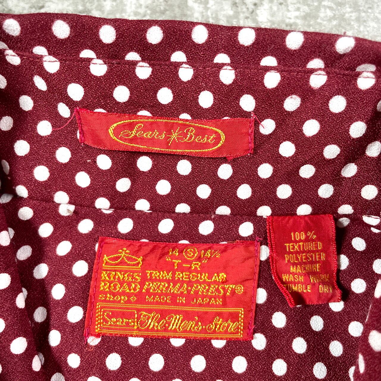 ■70年代 SEARS KINGS ROAD シアーズ ドット柄 ポリエステルシャツ ポリシャツ メンズM相当 古着 70s VINTAGE ヴィンテージ ドレスシャツ ボルドー ワインレッド ホワイト【長袖シャツ】/マルチカラー 【ブランド】 SEARS KINGS ROAD シアーズ 【サイズ】表記 S 14-14 1/2 ※計測値をご確認ください。 着丈…78 身幅…52 肩幅…44 袖丈…60 【生産国】JAPAN製 【素材】TEXTURED POLYESTER 100% 【状態】 多少の使用感は御座いますが、目立ったダメージや汚れは御座いません。 画像にてご確認ください。 【c250830008】 ※古着は洗濯、検品などのケアを行っております。(新品・デッドストックは洗濯していません。) ※モニターの発色により実物と異なる場合がございます。予めご了承ください。 ※ 海外直輸入USED品になります。