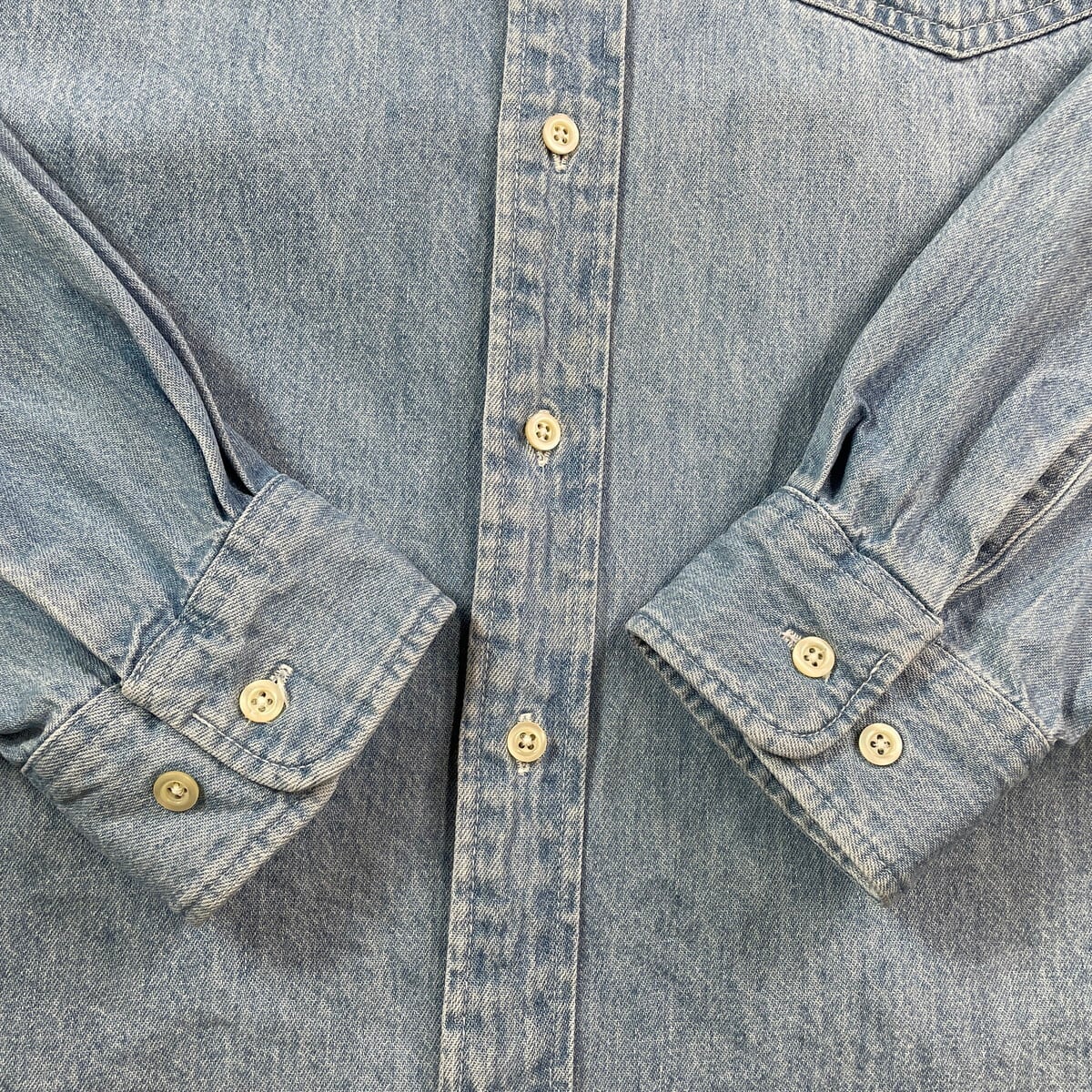 ■90年代 OLD GAP オールドギャップ デニムシャツ メンズL相当 古着 90s VINTAGE ヴィンテージ B.D ボタンダウンシャツ アメカジ 胸ポケット付き 青色【長袖シャツ】/ブルー 【ブランド】OLD GAP オールドギャップ 【サイズ】表記 M(実寸メンズL相当) ※計測値をご確認ください。 着丈…82 身幅…62 肩幅…53 袖丈…60.5 【素材】コットン100% 【生産国】カナダ製 【状態】全体的に使用感による色褪せや擦れがございます。 フロント左わき腹付近に汚れがあります。 画像にてご確認ください。 【c250829106】 ※古着は洗濯、検品などのケアを行っております。(新品・デッドストックは洗濯していません。) ※モニターの発色により実物と異なる場合がございます。予めご了承ください。 ※ 海外直輸入USED品になります。